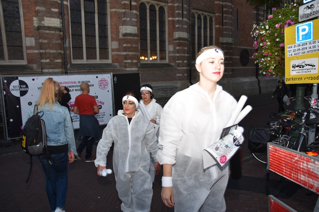 Als Nacht van Kunst&Kennis begon de Nacht van Ontdekkingen jaren geleden in één gebouw. Het is goed te zien dat het evenement niet over héél de binnenstad is uitgewaaierd, maar beloopbaar rond het Rapenburg is geconcentreerd. Er zijn op het Rapenburg zelfs fietsenstallingen gecreëerd (en er lopen heel veel opvallende beveiligers rond). Aan veel lijkt gedacht. De glazen zijn van plastic én van statiegeld voorzien.