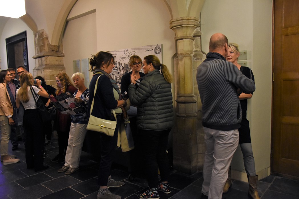 “Ik hoor jullie praten over de keldertocht. Die gaat niet door. De rondleider kon geen kelder vinden” Als we net staan te kijken naar welk onderdeel we nú weer zullen gaan, spreekt iemand van de organisatie ons aan over de mysterieuze tocht langs en door donkere kelders. Typisch zo’n programma-onderdeel dat we al links wilden laten liggen, hoe aantrekkelijk ook. Maar er zijn zó weinig plaatsen dat de we de kans op meedoen te laag inschatten. En nu blijkt-i ook nog afgelast. Twee lezingen overkwam hetzelfde: afgelast. Het vermindert ongewild wel de keuzestress.