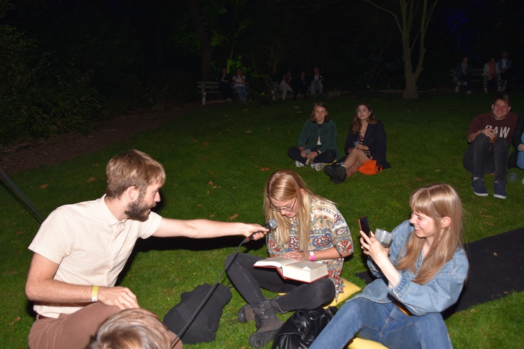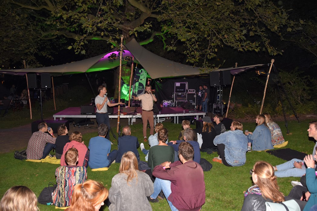 Qua muziek viel er sowieso veel moois te horen. In de Tempelzaal van het Rijksmuseum voor Oudheden viel ‘het geluid van Brahms’, live uitgevoerd, te beluisteren. Heel anders was de muziek van Nana Adjoa, in feite gitaar en keyboard. Het is muziek die het ontdekken waard is; net anders dan het geijkte. Het enige wat ons opviel, is dat het geluid van het keyboard wel erg overheersend werd, de paar keer dat het werd bespeeld. Wel op de mooiste plek, zeker met mooi weer: het podium Bolwerk in de Hortus. Vanaf de glooiende grashelling kijk je op een klein podium. De podiumkunsten waren toch al goed vertegenwoordigd, zoals met de finalisten van het Leids Cabaretfestival. En, als we podium ruim definiëren, ook Fields of Wonder op het water van het Rapenburg, en dans van Tribes in Oudheden.