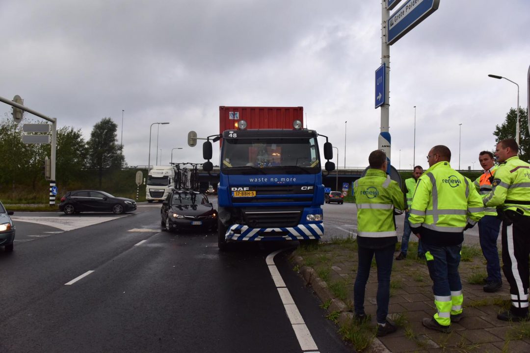 Rond het middaguur vond op de N11 bij Leiden een aanrijding plaats tussen een auto en een vrachtwagen van Renewi. Op de kruising met de op-/afrit van de A4 botsten beiden voertuigen op elkaar. Een met spoed opgeroepen ambulance hoefde, na controle van de bestuurders, uiteindelijk niemand te vervoeren. Beide voertuigen hebben door de aanrijding schade opgelopen.