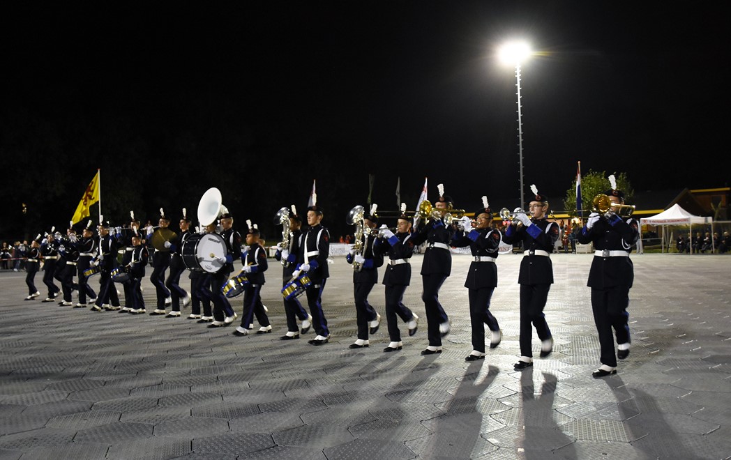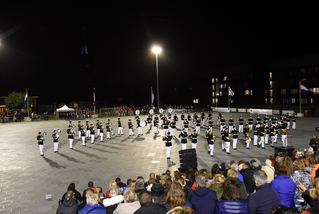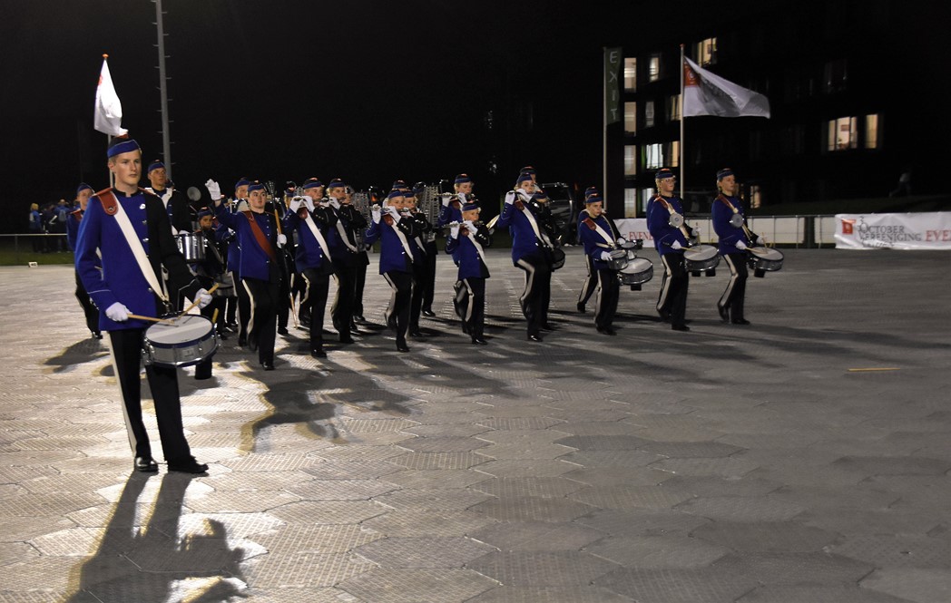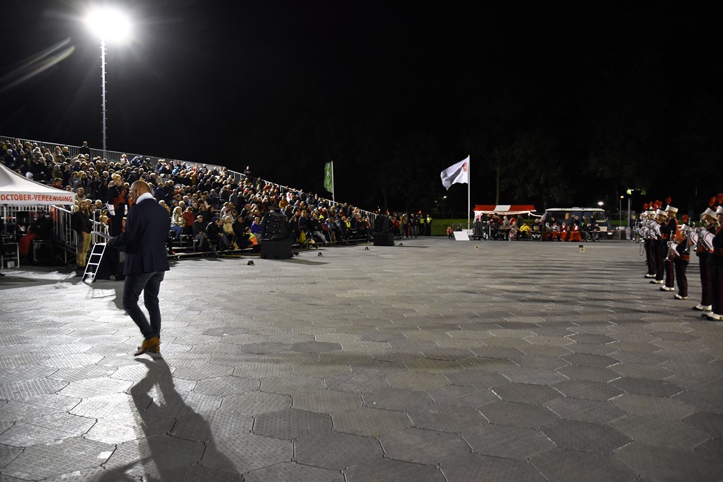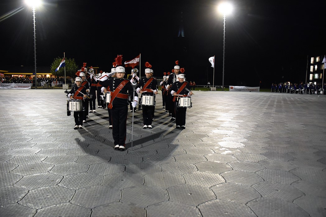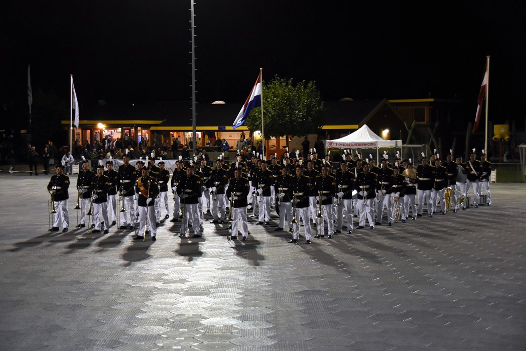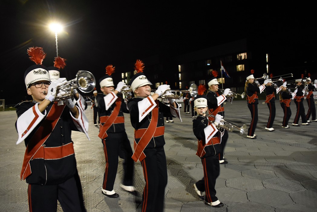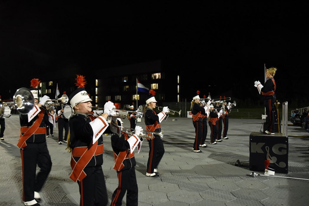 Er waren regenbuien voorspeld zaterdagavond, maar het bleef helemaal droog tijdens de Pleintaptoe. Ondanks de slechte weersvoorspellingen zaten de tribunes driekwart vol. Het thema van 3 October is dit jaar ‘Jong Geleerd….’ en dat klonk ook door in de Pleintaptoe. Er speelden voornamelijk jeugdkorpsen van gerenomeerde landelijke orkesten. Het publiek genoot van optredens van Jong K&G, Jeugdkorps Rijnmond uit Schiedam, de jeugd van het Pasveer korps uit Leeuwarden, M.E.T.R.O.uit Scheveningen, Wilhelmina uit Sleeuwijk, de jeugd van het Kamper Trompetterkorps en als afsluiting de senioren van K&G. Het voorprogramma werd verzorgd door K&G3. Het publiek genoot van de meer dan 3 uur durende show. Na afloop liepen de beide korpsen van K&G al spelend naar hun clubhuis gevolgd door een lange stoet fans.