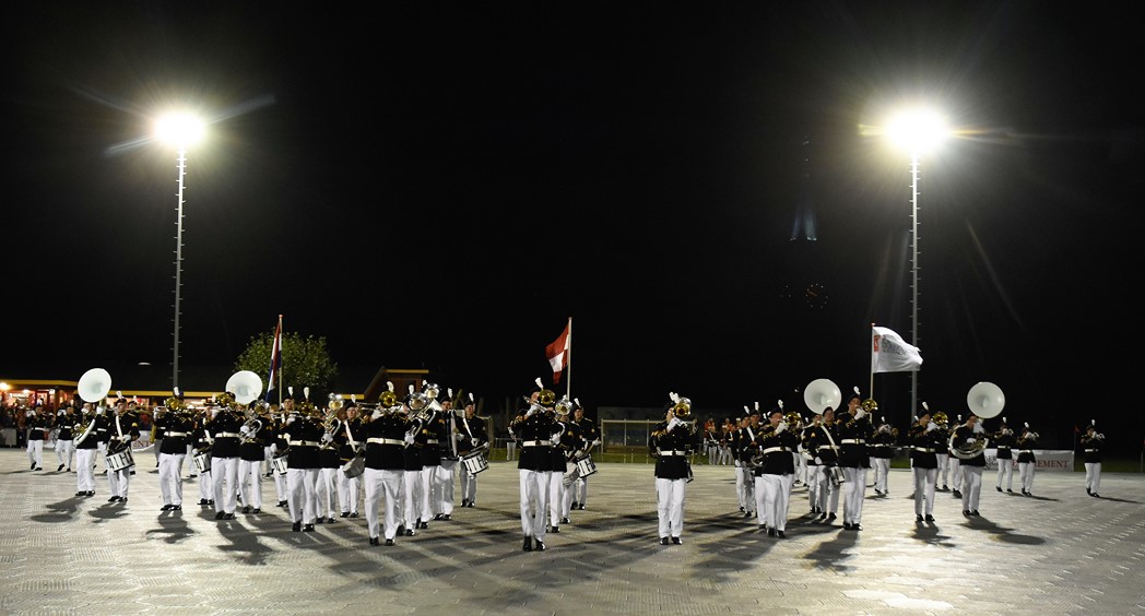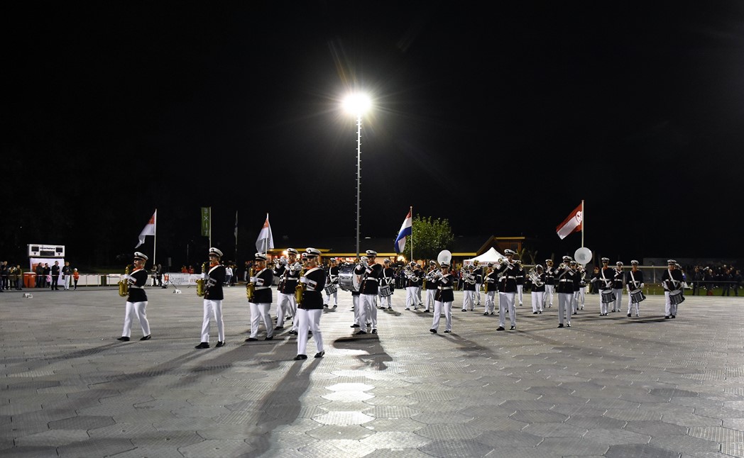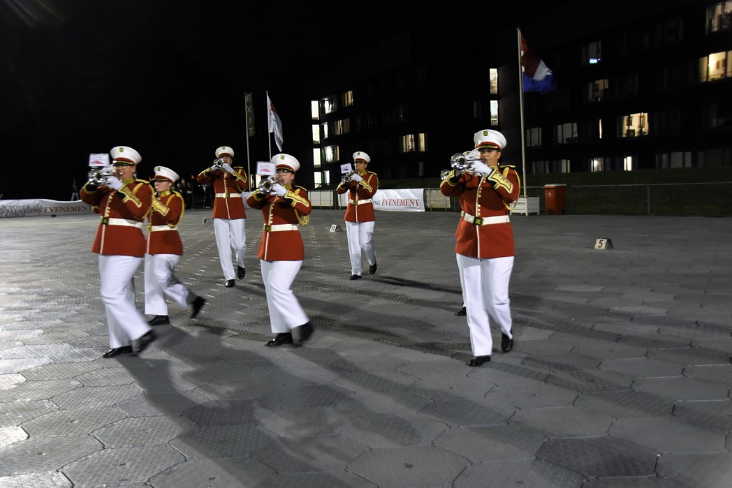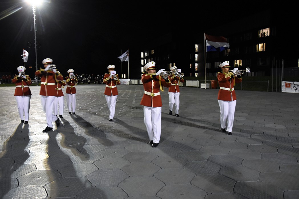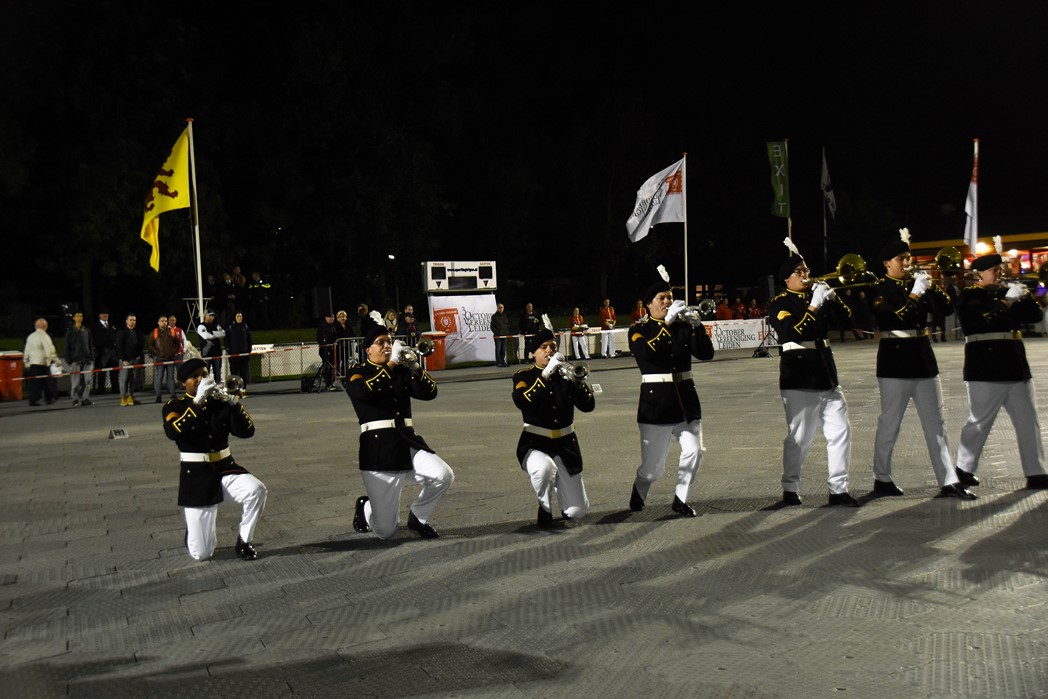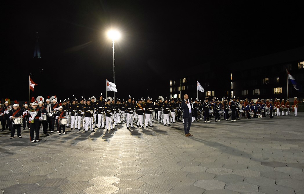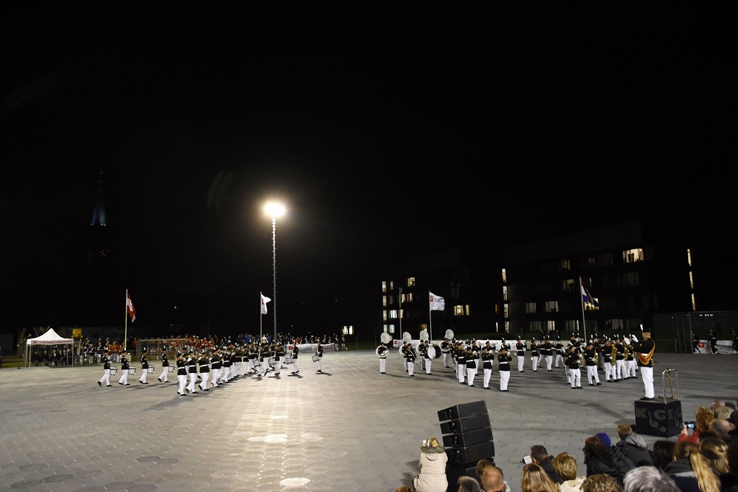 Er waren regenbuien voorspeld zaterdagavond, maar het bleef helemaal droog tijdens de Pleintaptoe. Ondanks de slechte weersvoorspellingen zaten de tribunes driekwart vol. Het thema van 3 October is dit jaar ‘Jong Geleerd….’ en dat klonk ook door in de Pleintaptoe. Er speelden voornamelijk jeugdkorpsen van gerenomeerde landelijke orkesten. Het publiek genoot van optredens van Jong K&G, Jeugdkorps Rijnmond uit Schiedam, de jeugd van het Pasveer korps uit Leeuwarden, M.E.T.R.O.uit Scheveningen, Wilhelmina uit Sleeuwijk, de jeugd van het Kamper Trompetterkorps en als afsluiting de senioren van K&G. Het voorprogramma werd verzorgd door K&G3. Het publiek genoot van de meer dan 3 uur durende show. Na afloop liepen de beide korpsen van K&G al spelend naar hun clubhuis gevolgd door een lange stoet fans.