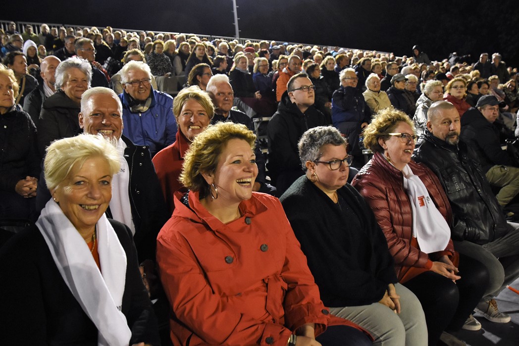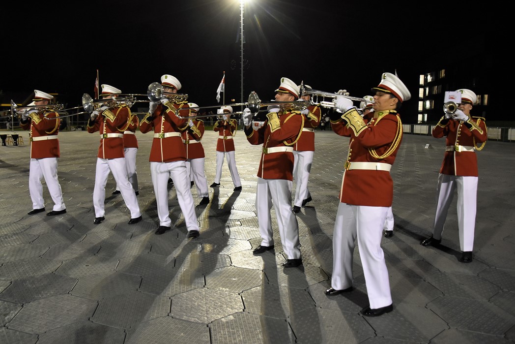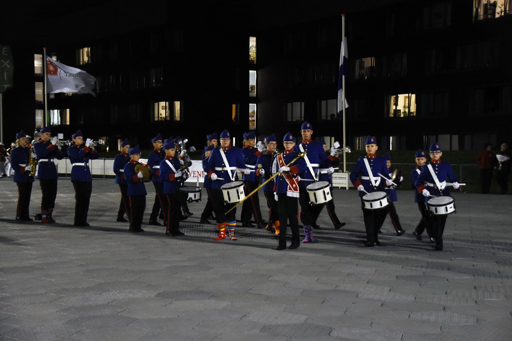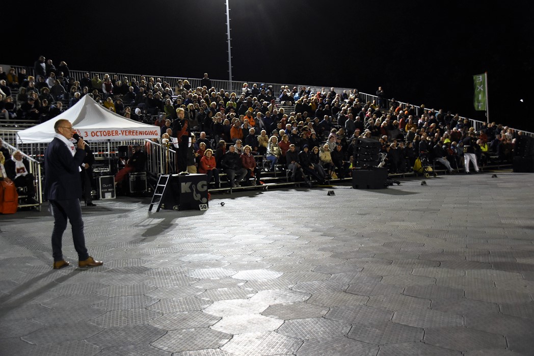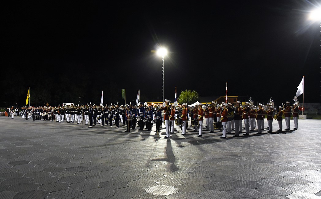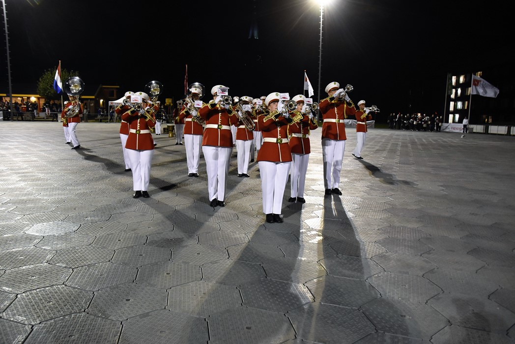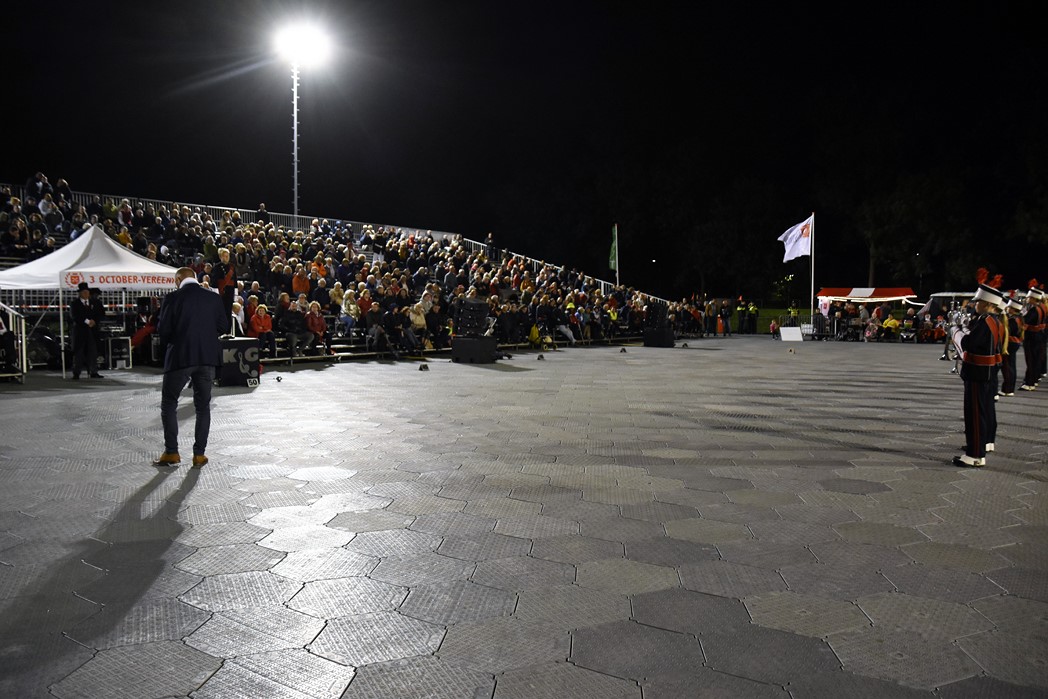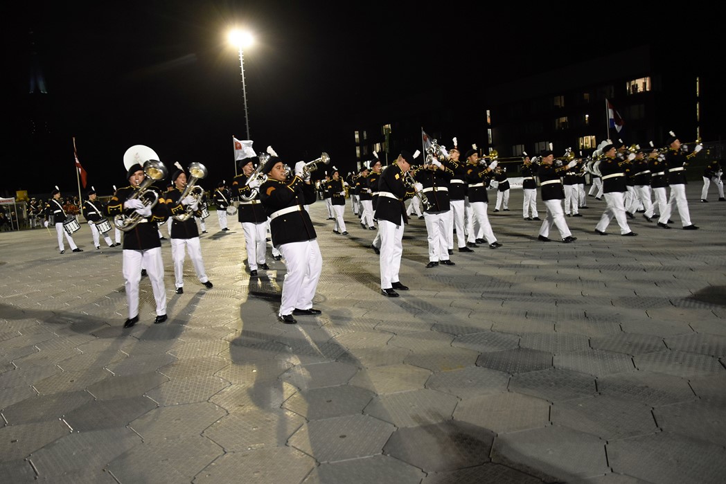 Er waren regenbuien voorspeld zaterdagavond, maar het bleef helemaal droog tijdens de Pleintaptoe. Ondanks de slechte weersvoorspellingen zaten de tribunes driekwart vol. Het thema van 3 October is dit jaar ‘Jong Geleerd….’ en dat klonk ook door in de Pleintaptoe. Er speelden voornamelijk jeugdkorpsen van gerenomeerde landelijke orkesten. Het publiek genoot van optredens van Jong K&G, Jeugdkorps Rijnmond uit Schiedam, de jeugd van het Pasveer korps uit Leeuwarden, M.E.T.R.O.uit Scheveningen, Wilhelmina uit Sleeuwijk, de jeugd van het Kamper Trompetterkorps en als afsluiting de senioren van K&G. Het voorprogramma werd verzorgd door K&G3. Het publiek genoot van de meer dan 3 uur durende show. Na afloop liepen de beide korpsen van K&G al spelend naar hun clubhuis gevolgd door een lange stoet fans.