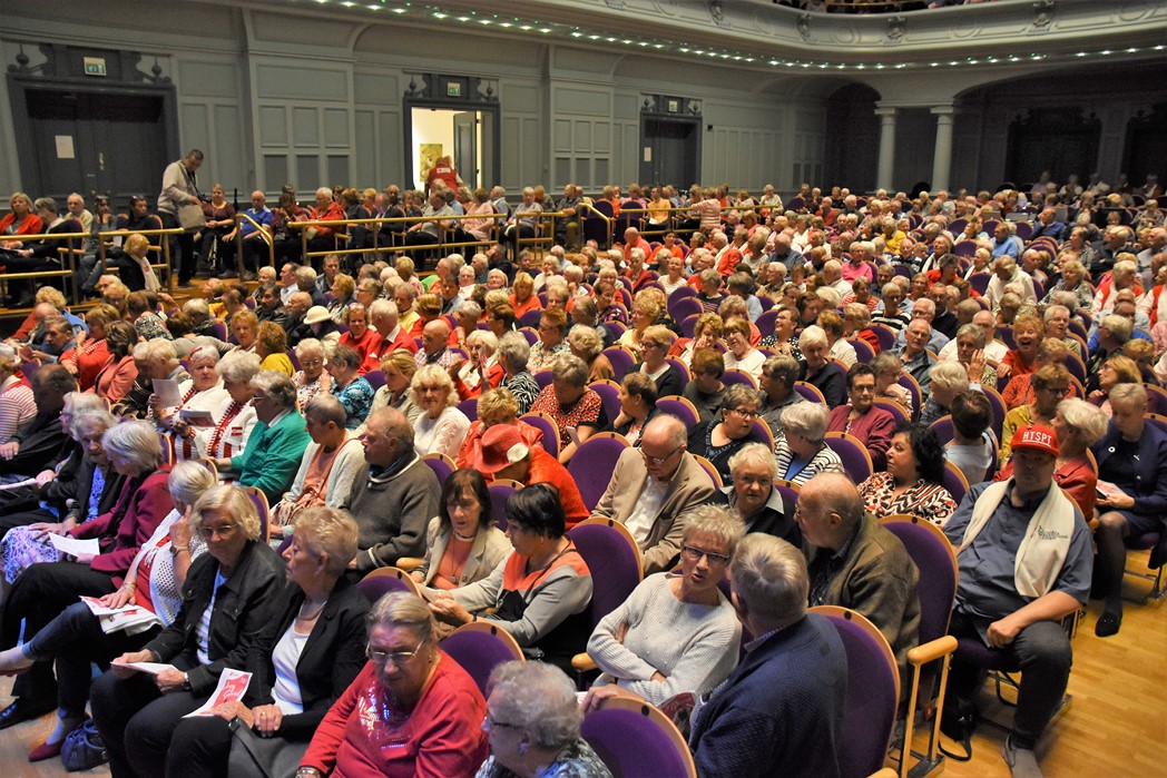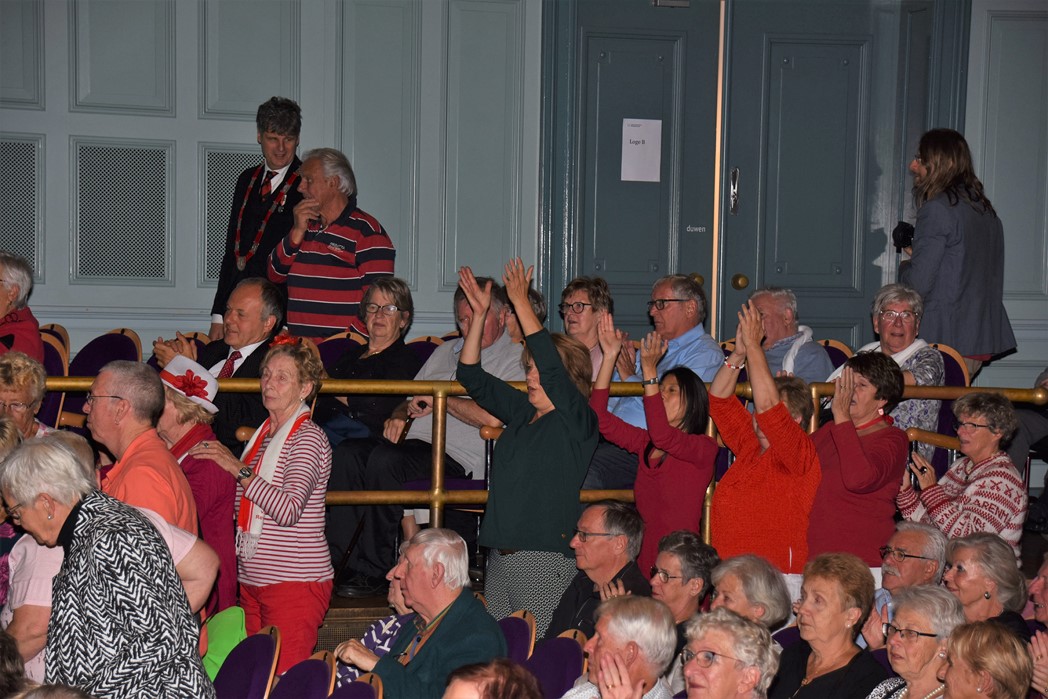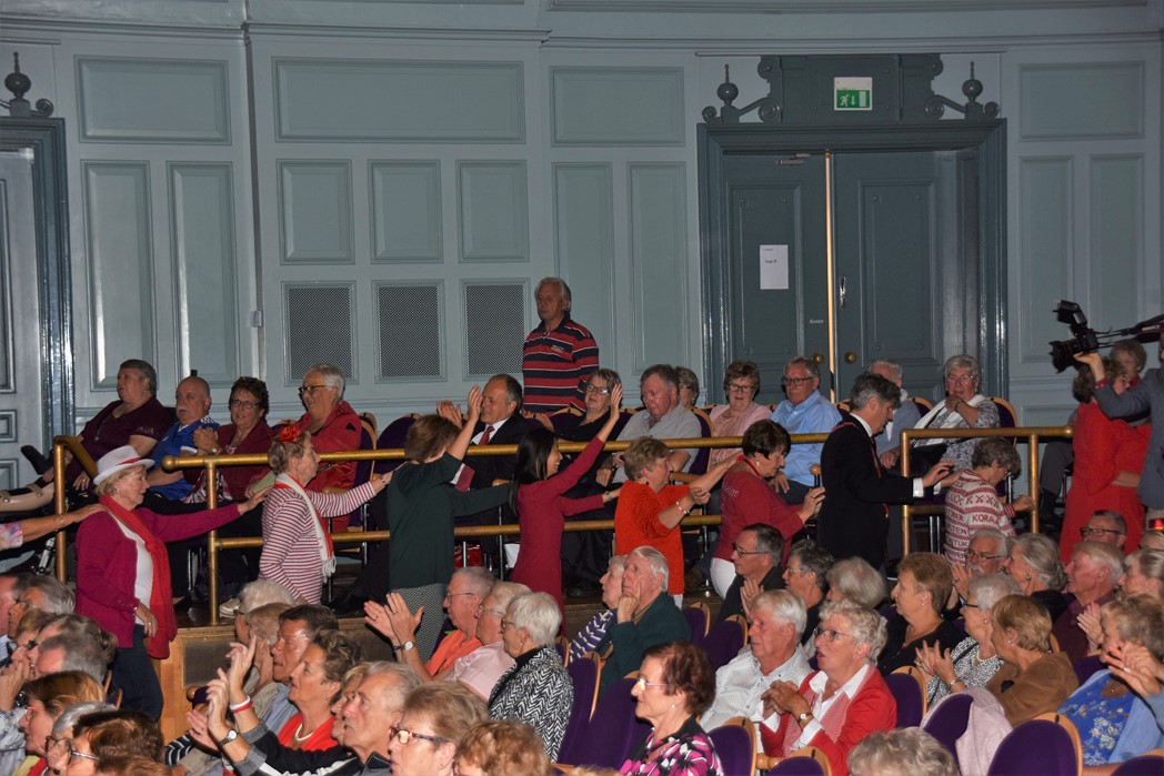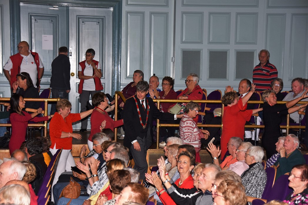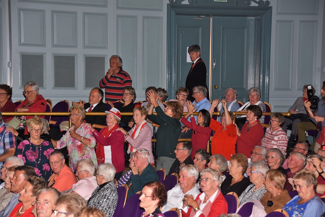 Traditioneel is op de zondagmiddag voor 3 oktober de seniorenmiddag in de Stadsgehoorzaal. Elk jaar is dit voor de Leidse senioren weer een feest waar je met leeftijdsgenoten in de stemming kan komen voor Het Feest der Feesten. Het publiek werd in de hal verwelkomd door het koor van Schula Nostalgica met liedjes die iedereen van boven de 50 jaar feilloos kan meezingen of kent. Het programma dit jaar was erg verrassend en begon met een optreden van de oudste boy band ter wereld, Het Ontzet Sextet bestaat uit oud-bestuurs-en commissieleden en zorgde voor een Minikoraal voor senioren onder het toeziend oog van burgemeester Pieter van der Werf.