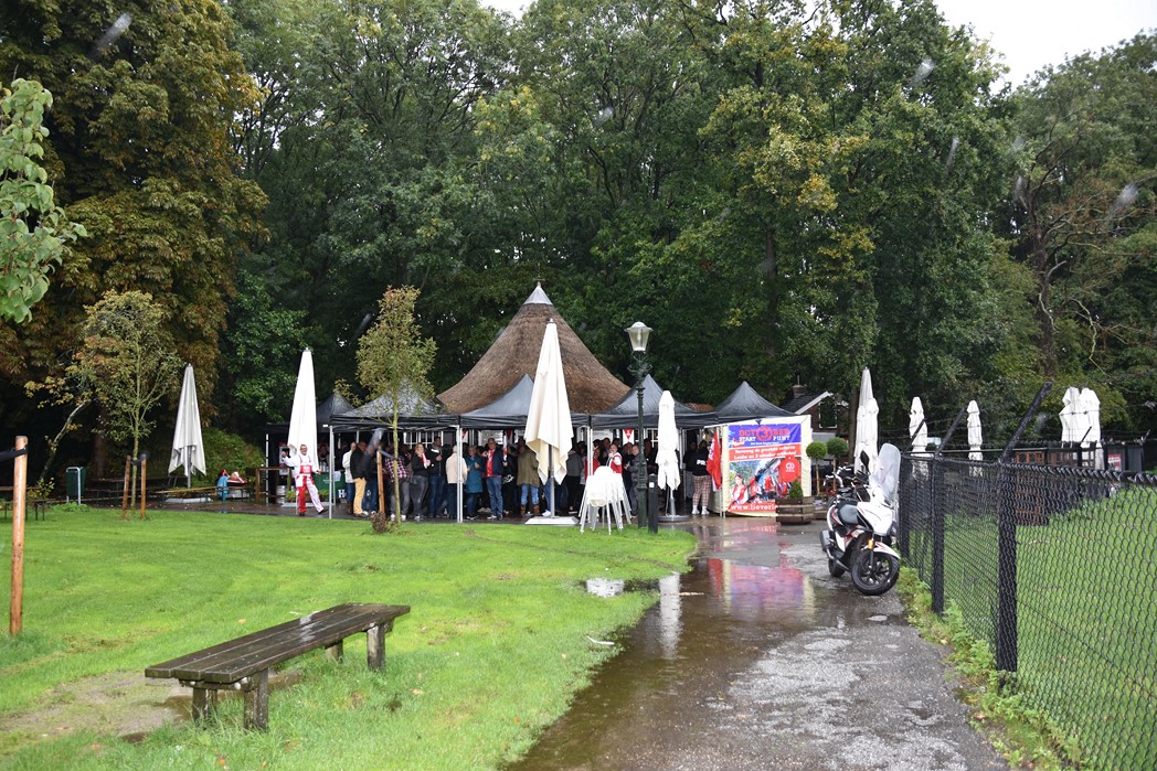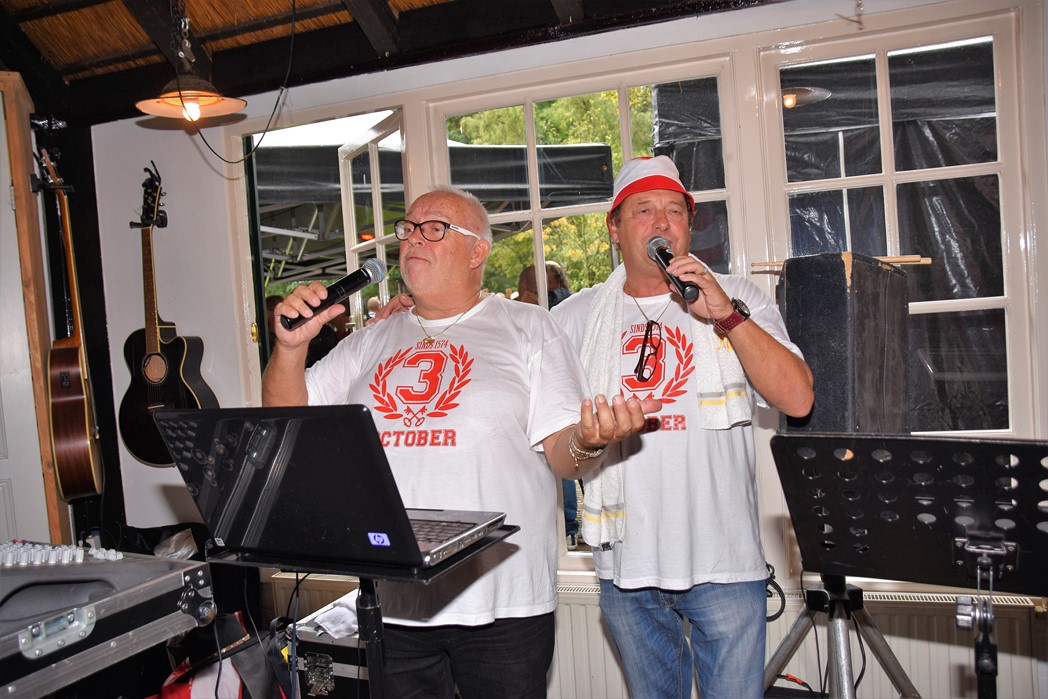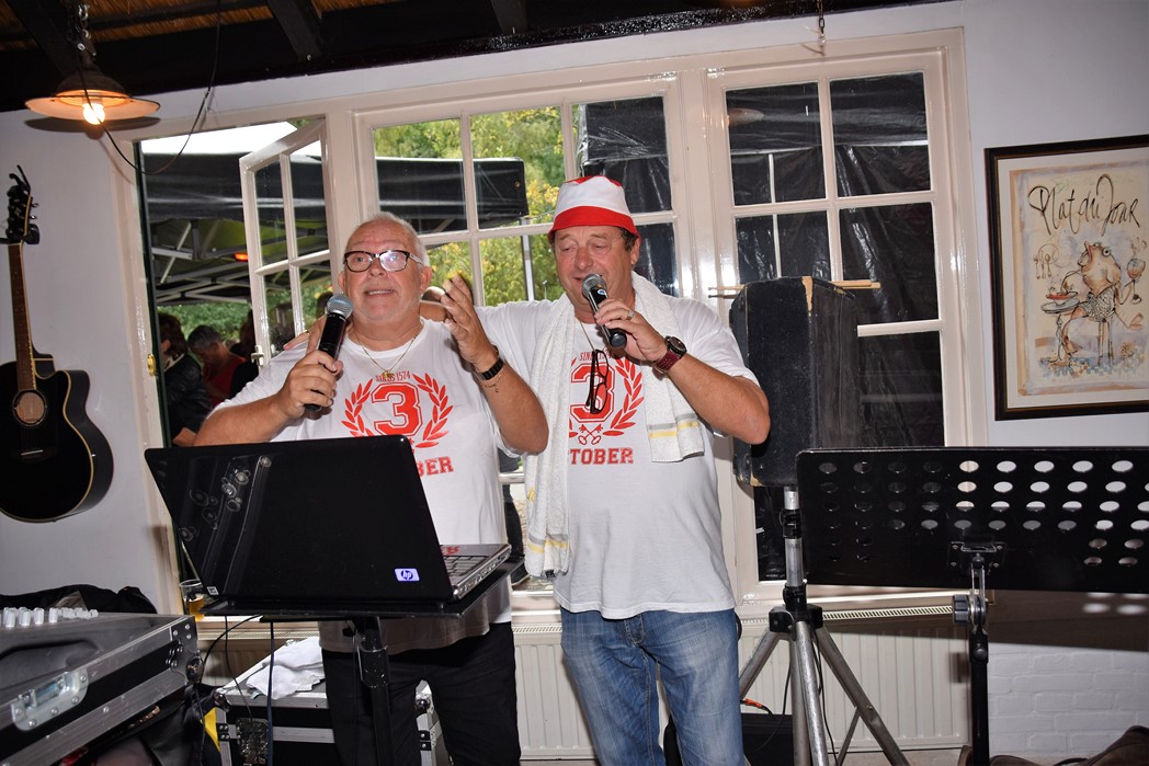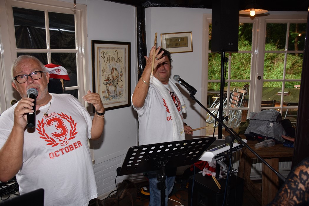 Bijna viel de Pri-October Party door de enorme regenval in het water. Door snel omschakelen en het feest naar binnen te verhuizen werd het toch nog een geweldig feest. Al voor het 7e jaar trapt Theehuis de Leidse Hout op de laatste zondag voor 3 oktober Het Feest der Feesten af met de Pri-October Party. Een middag waar elk jaar de Rijnsons het publiek in de juiste stemming voor 3 oktober brengen. Binnen was het afgeladen vol en in de tenten voor het Theehuis was er ook bijna geen doorkomen aan. Behalve de Rijnsons trad ook Hugo Choufour met zijn Dutch Sweet Wood Girls op om het publiek warm te maken voor zijn optreden bij Café de Plantage, waar hij de optocht aan elkaar praat en de eventuele gaten opvult met meezingers.