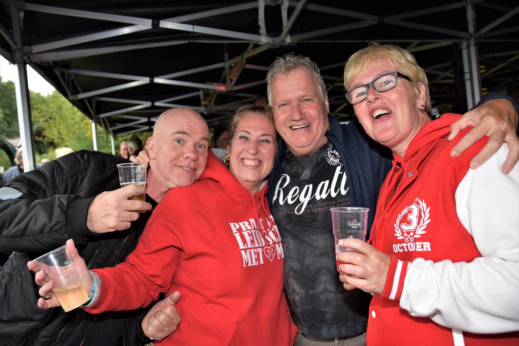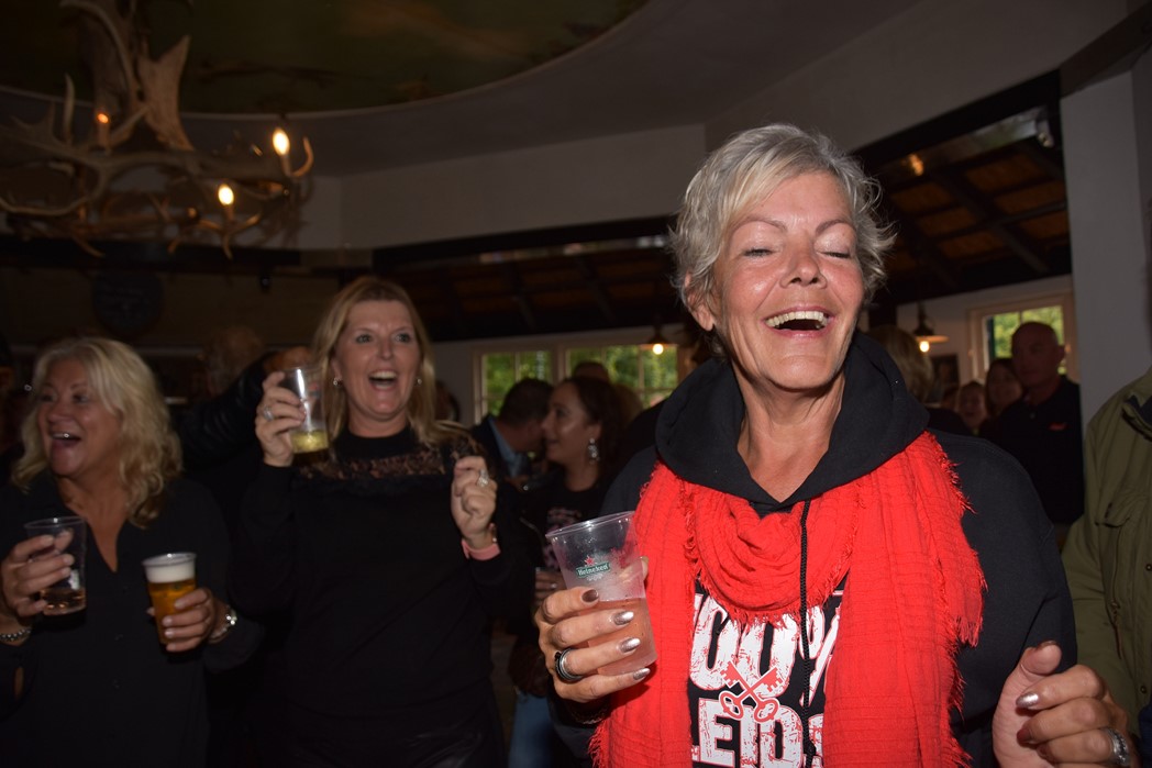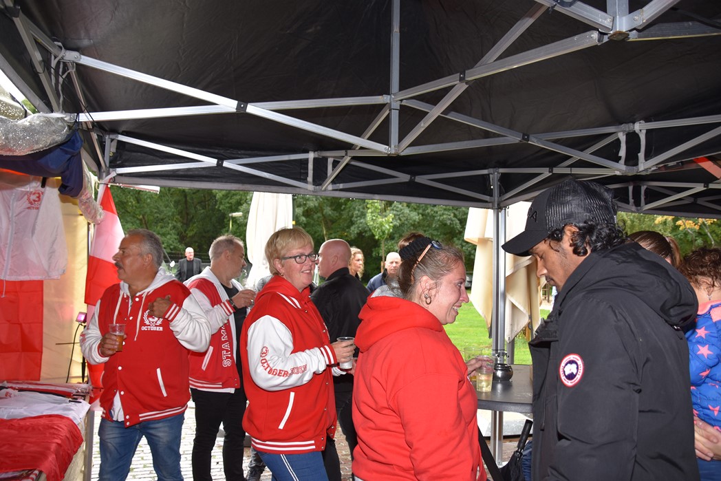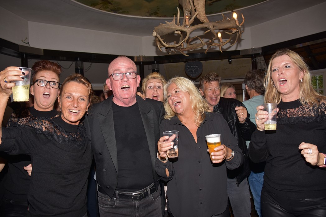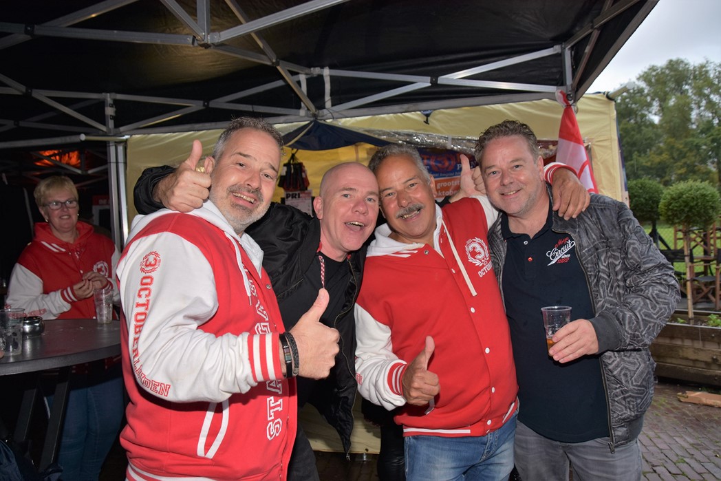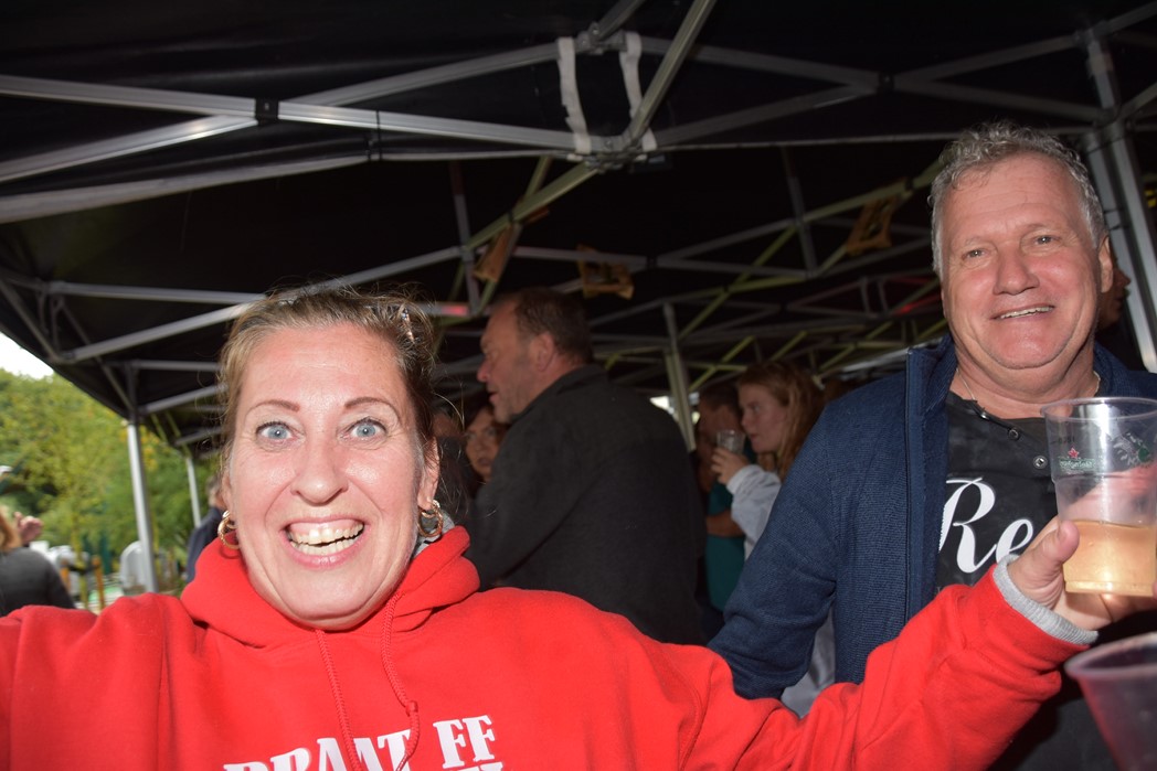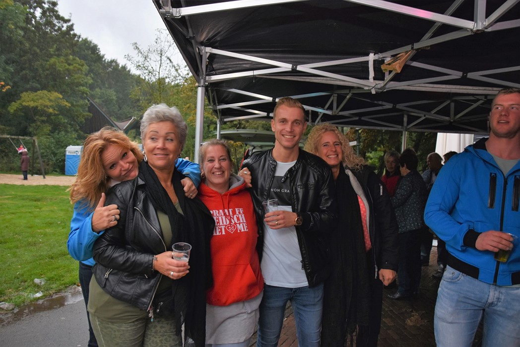 Ook voor de Rijnsons was het een opwarmertje voor hun optreden na de optocht in Koetshuis de Burcht. Het publiek genoot ondanks het slechte weer en ziet uit naar Het Feest der Feesten.