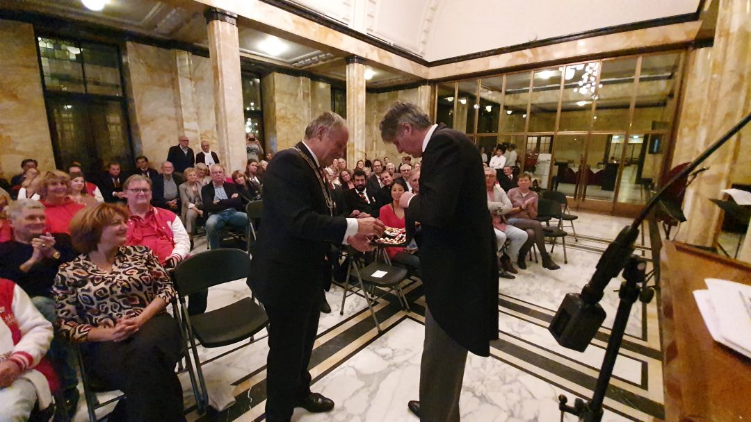 Robbert Beurse in gesprek met Hein van Woerden van het Leids Carillon Genootschap over Leidse Gedenck Klokken.