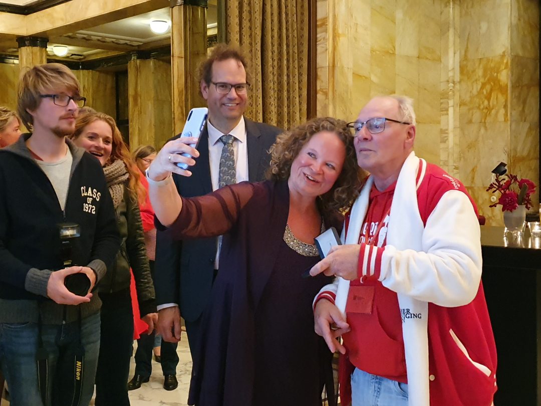 Reanne van Kleef nam vanmorgen in De Waag even het feest tot dat moment door.
