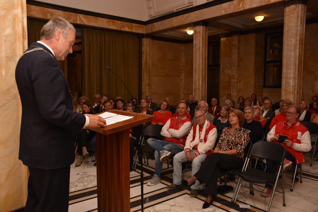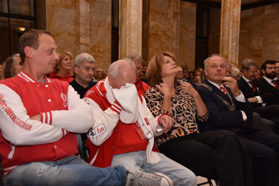 Dit jaar een bijzonder momentje tijdens het Koraal. Voor het standbeeld van burgemeester Van der Werf werd het document getekend waarmee ‘Leidens Ontzet’ werd bijgeschreven in de inventaris van het immaterieel erfgoed.