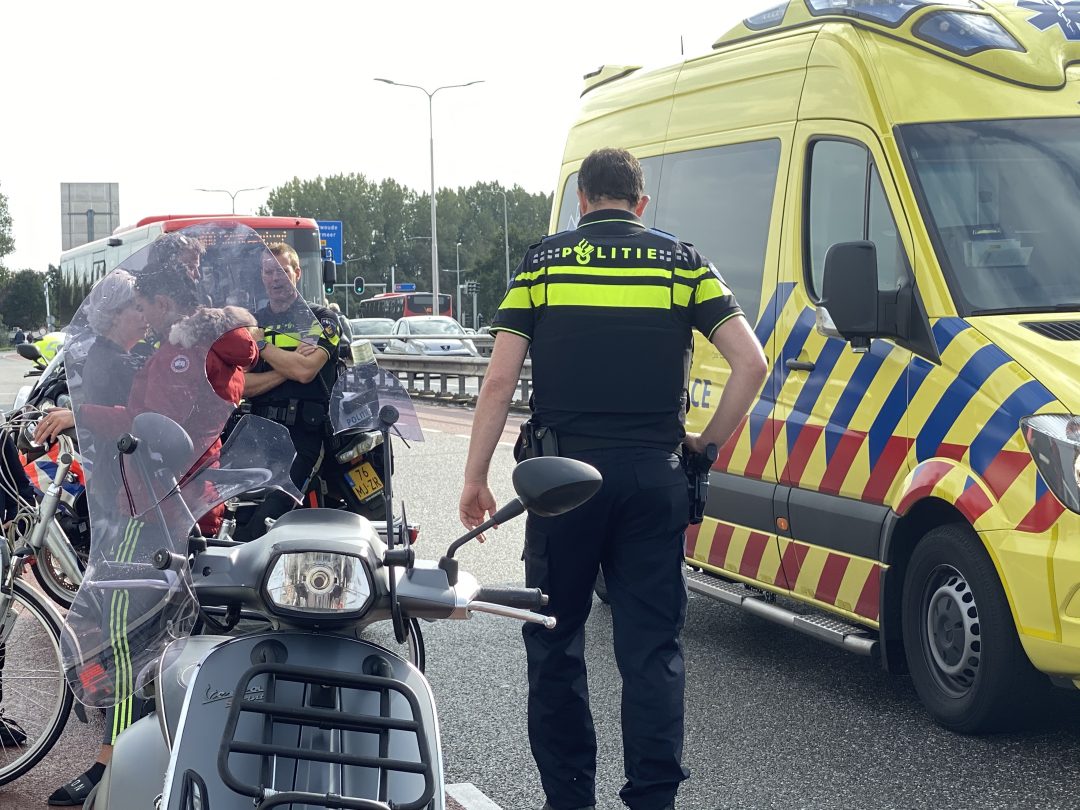 De scooterrijdster raakte lichtgewond aan haar been en werd door ambulancepersoneel nagekeken. Een tweede ambulance die met spoed ter plaatse kwam bleek uiteindelijk niet nodig.
