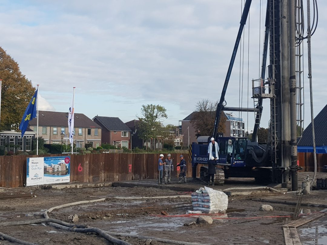 Vanmiddag hebben directeur Mark Niersman van het gelijknamige bouwbedrijf uit Voorschoten en de Zoeterwoudse wethouder Ton de Gans van Ruimtelijke Ontwikkeling gezamenlijk de eerste paal geslagen van het project Rijnzigt. Daarmee werd de start van de bouw gemarkeerd van dertig flinke koopappartementen langs het water van de Rijn in Zoeterwoude-Rijndijk.