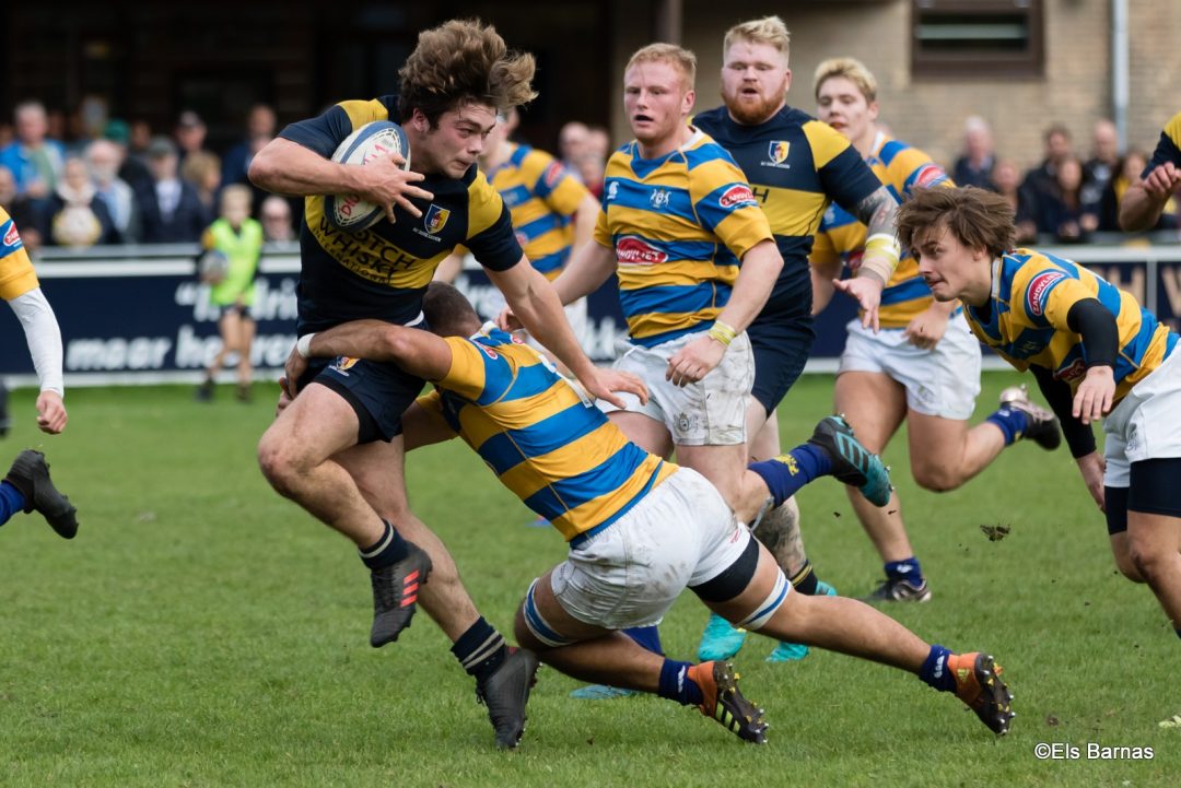 De Leidse fans waren zaterdag in grote getale naar de altijd enerverende rugbyderby tegen het Haagse HRC gekomen. Dat het een wat minder spannende wedstrijdmiddag zou worden, bleek al snel. In de derde minuut werd de openingstreffer al gemaakt. Bij het eindsignaal stond het 74-3. DIOK neemt met haar overwinning de tweede plaats in het klassement in. Bovenaan staat Hilversum, dat thuis won van RC ’t Gooi.