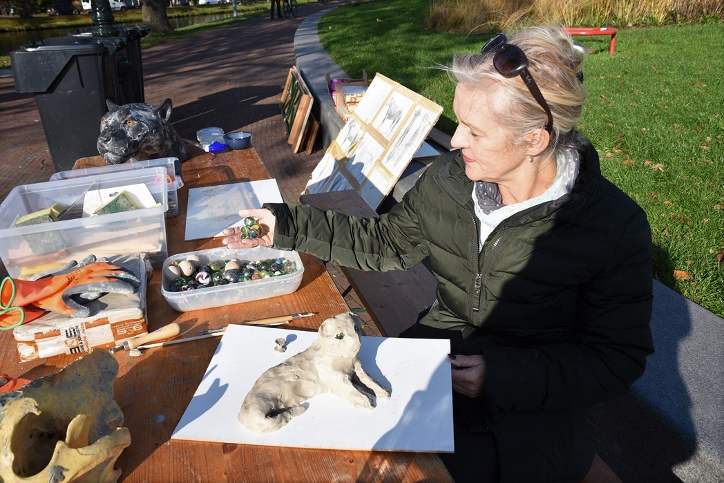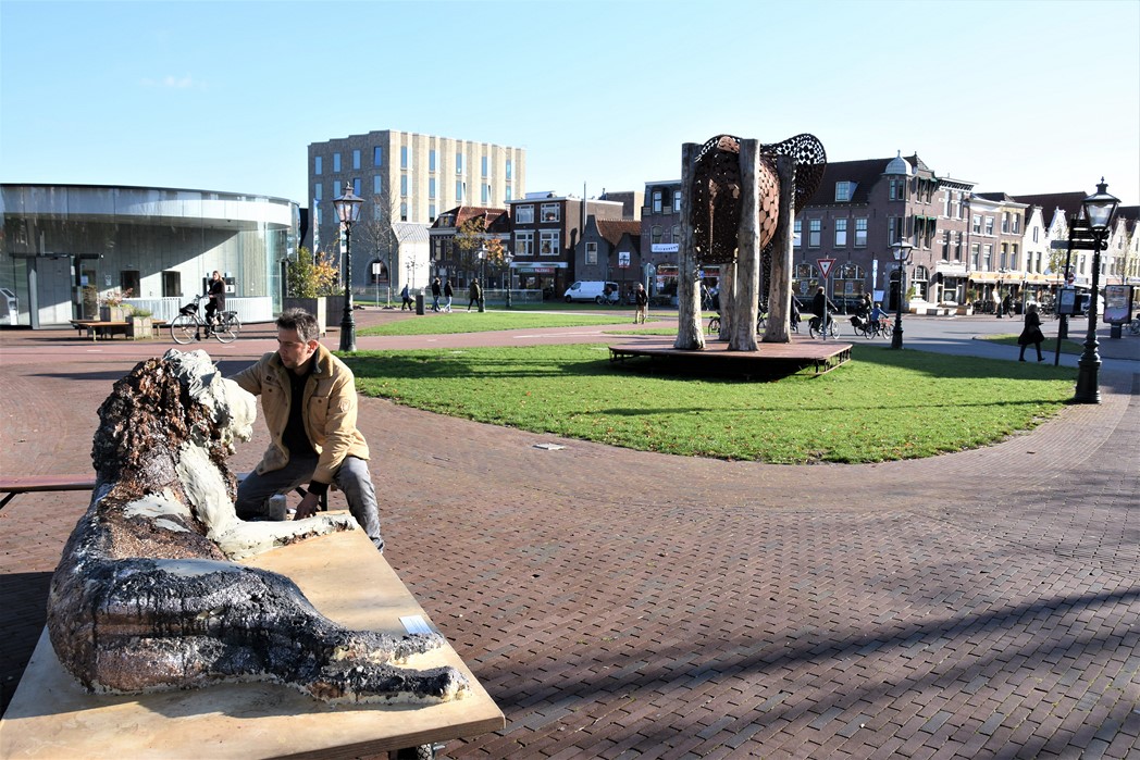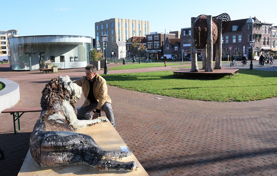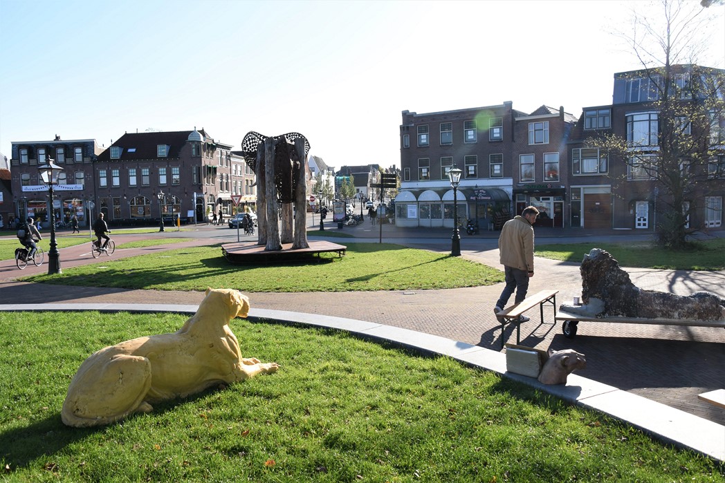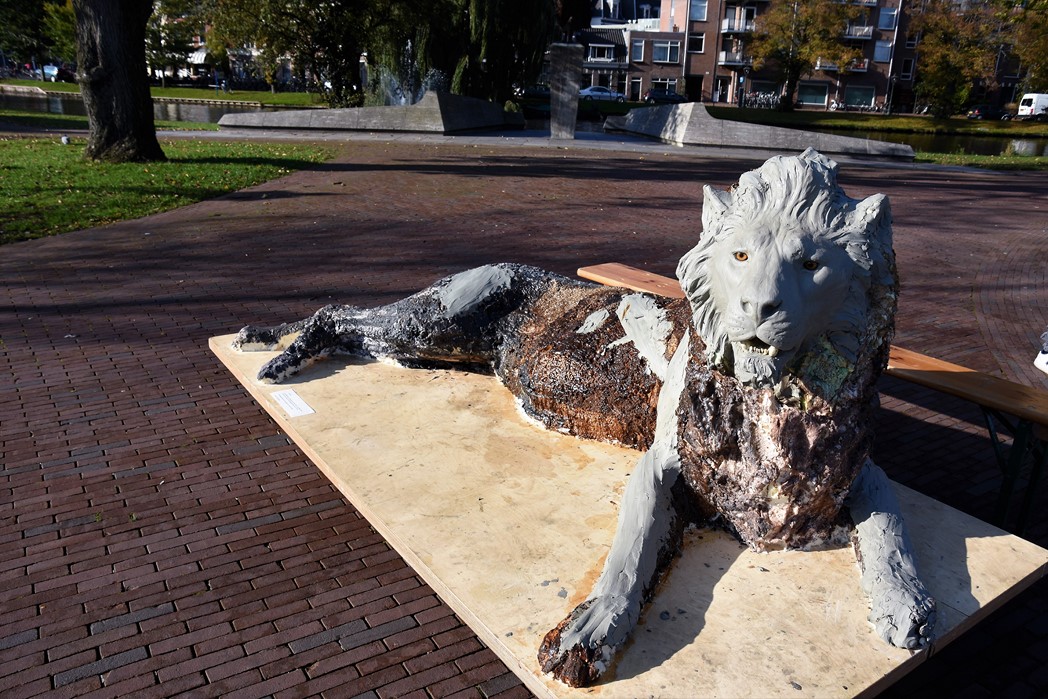 Een levensgrote olifant van staal en hout staat al op de Lammermarkt in Leiden, maar waarom zouden we daar niet een aantal dieren aan toevoegen? Dat is het idee voor de Leiden Zoo. Het doel is om de Lammermarkt, wat doorgaans een wat leeg plein is, tijdelijk wat cachet te geven met een soort dierentuin. Niet met echte dieren dus, maar met kunstwerken. Zo werkt Chris Tap nu aan een leeuw.