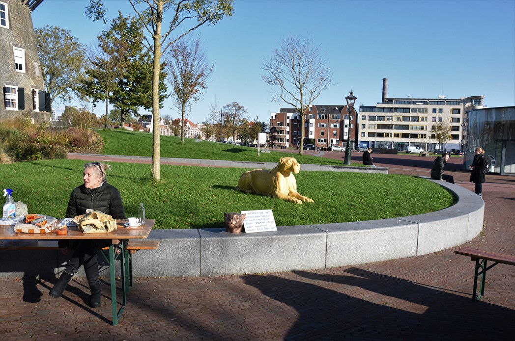 Eerder stond er ook al een enorm varken naast molen De Valk en ook in de komende maanden is het de bedoeling om regelmatig nieuwe kunstwerken van dieren een tijdelijke plek te geven op het Cultuurplein Lammermarkt.