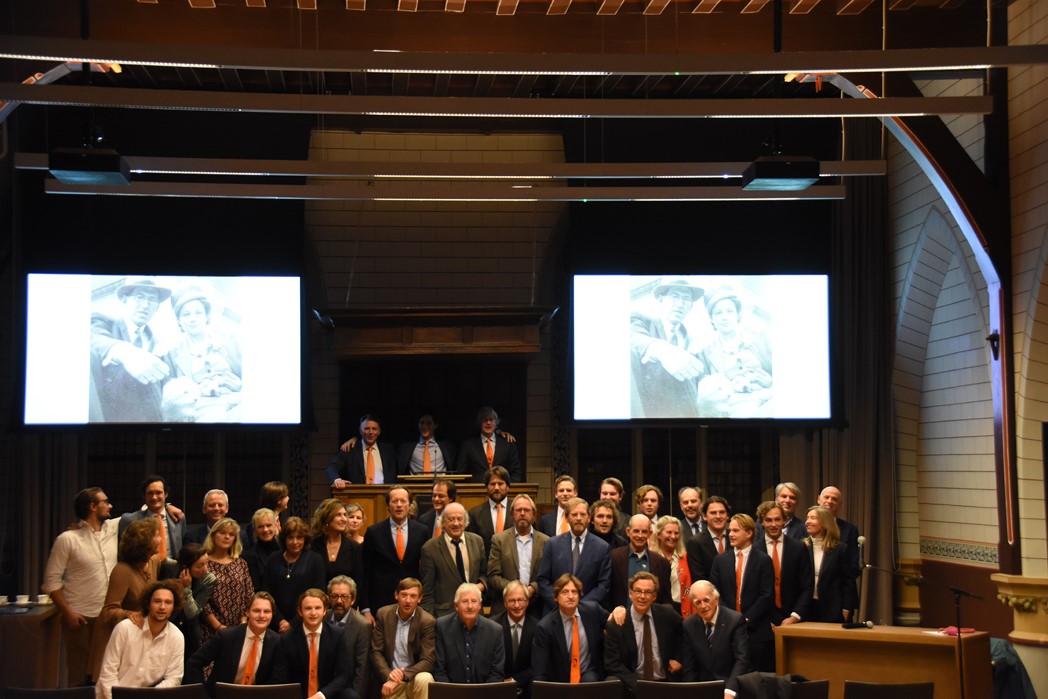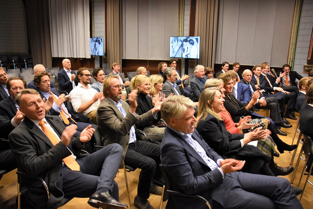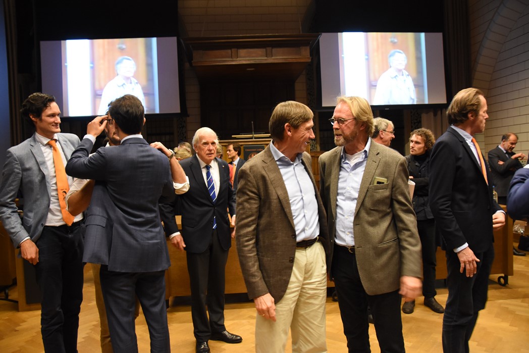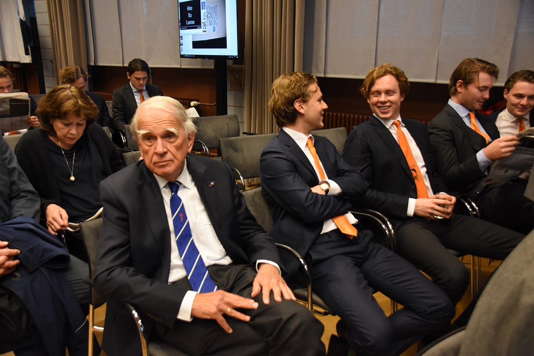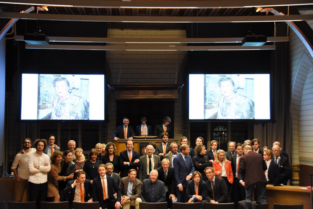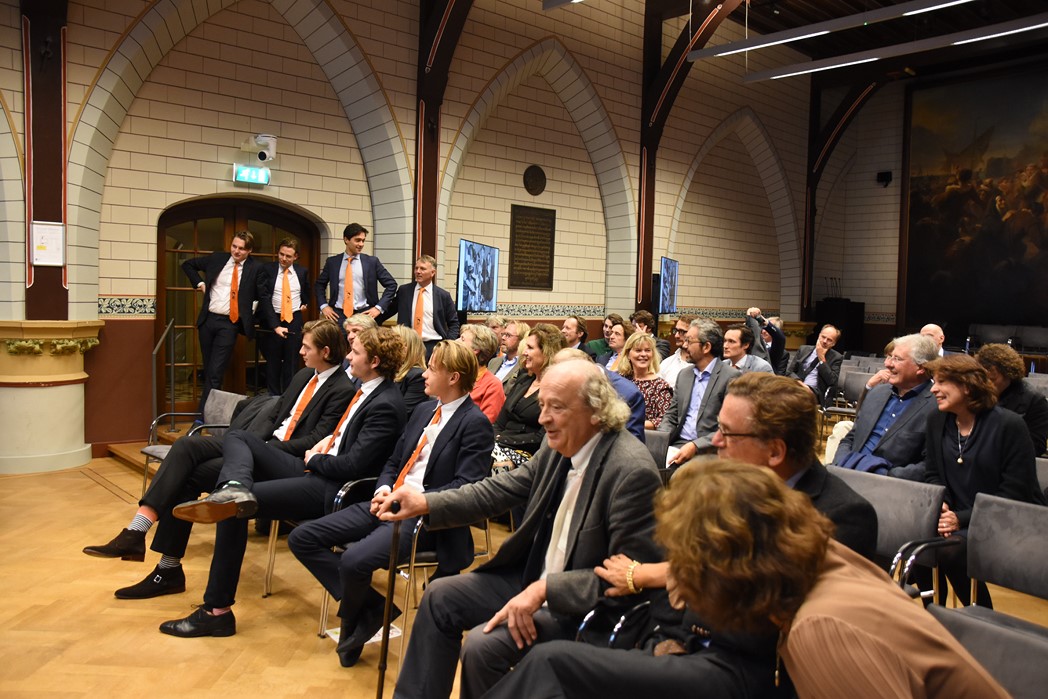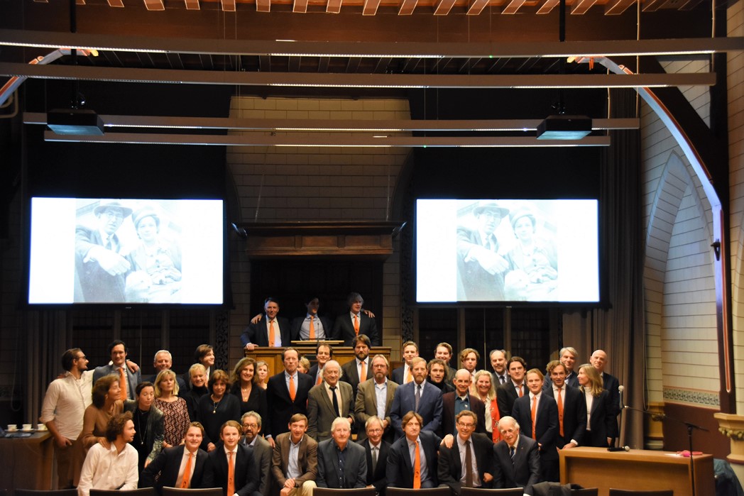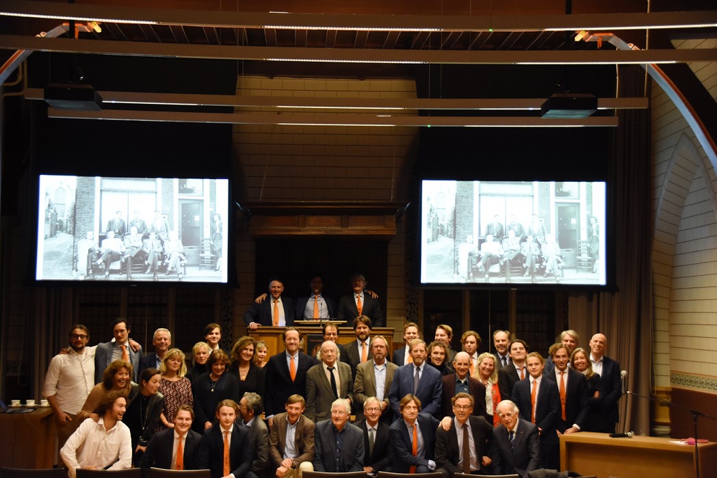 Na de polonaise en de groepsfoto met oud bewoners en genodigden werd het feestje voortgezet in de Faculty Club, uiteraard met bier en bitterballen.