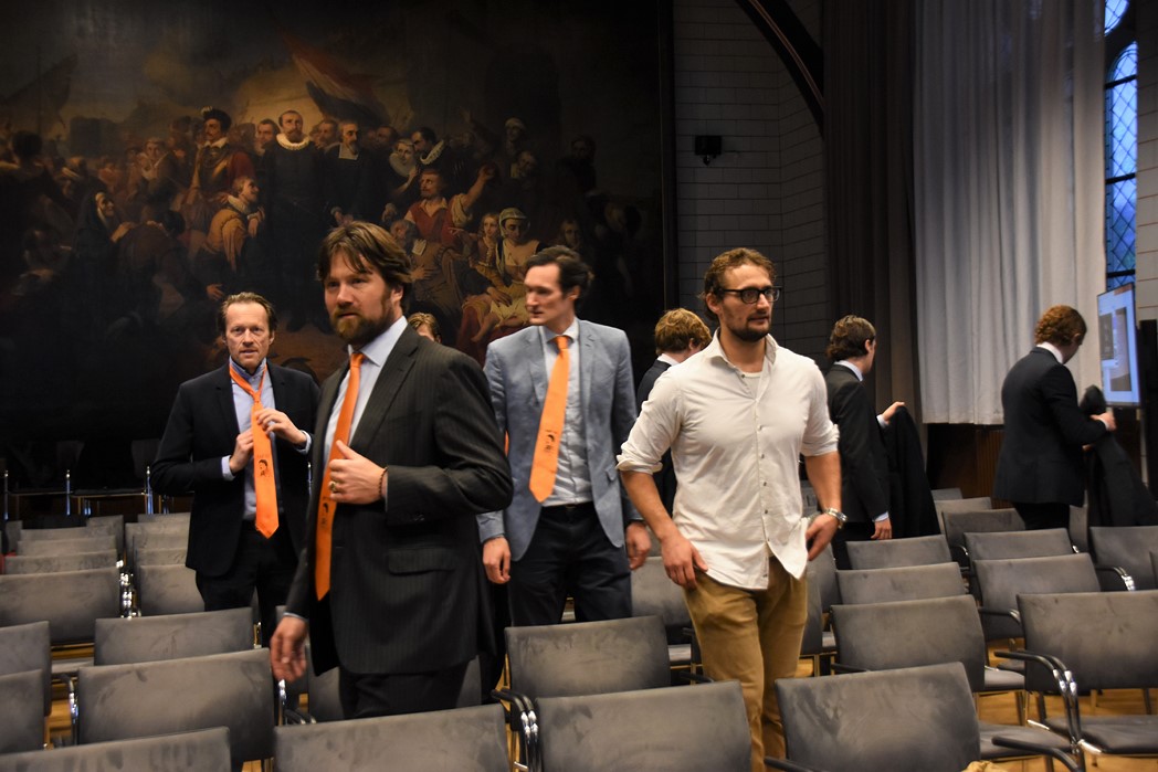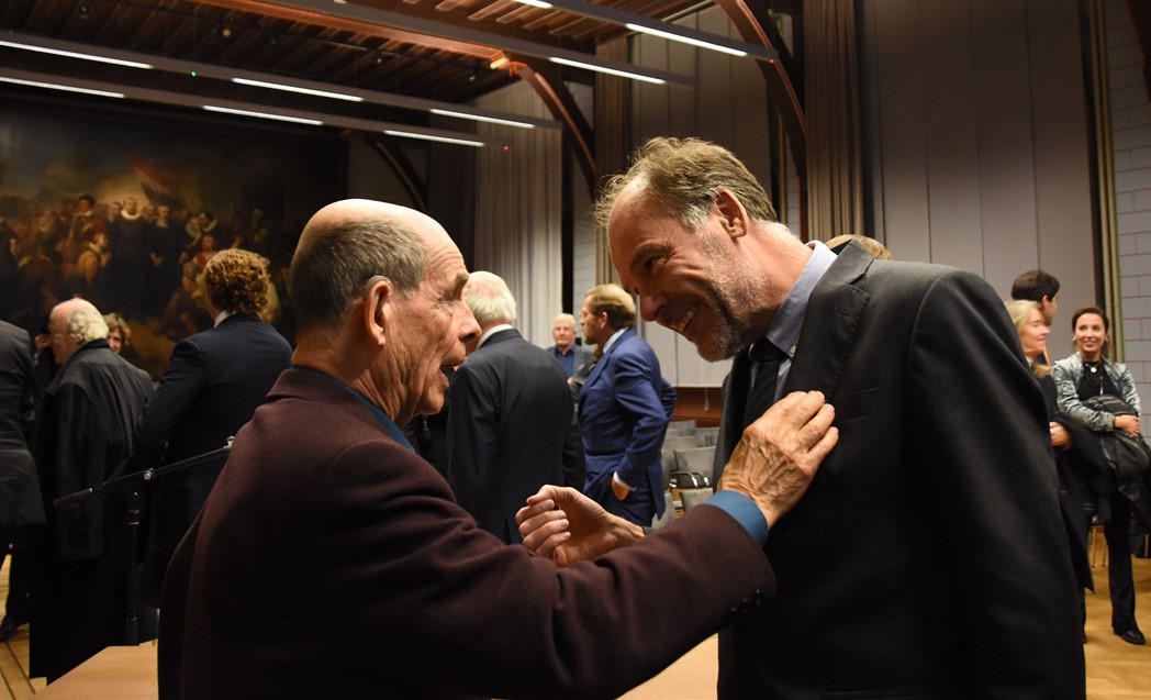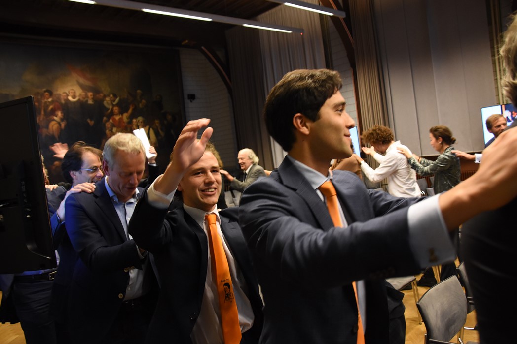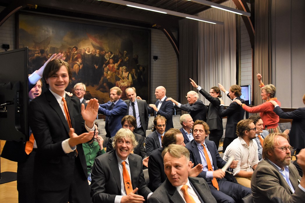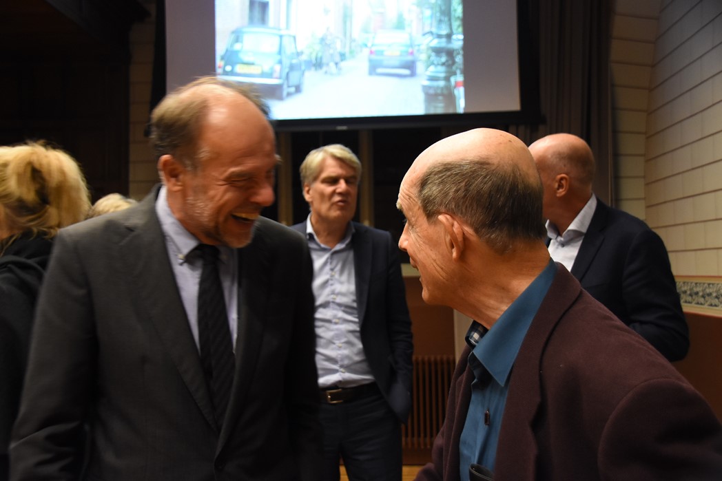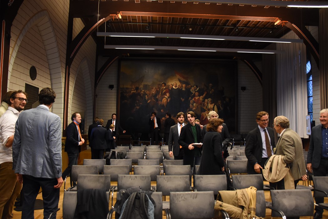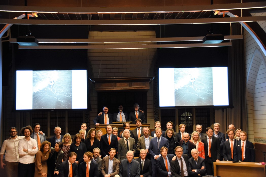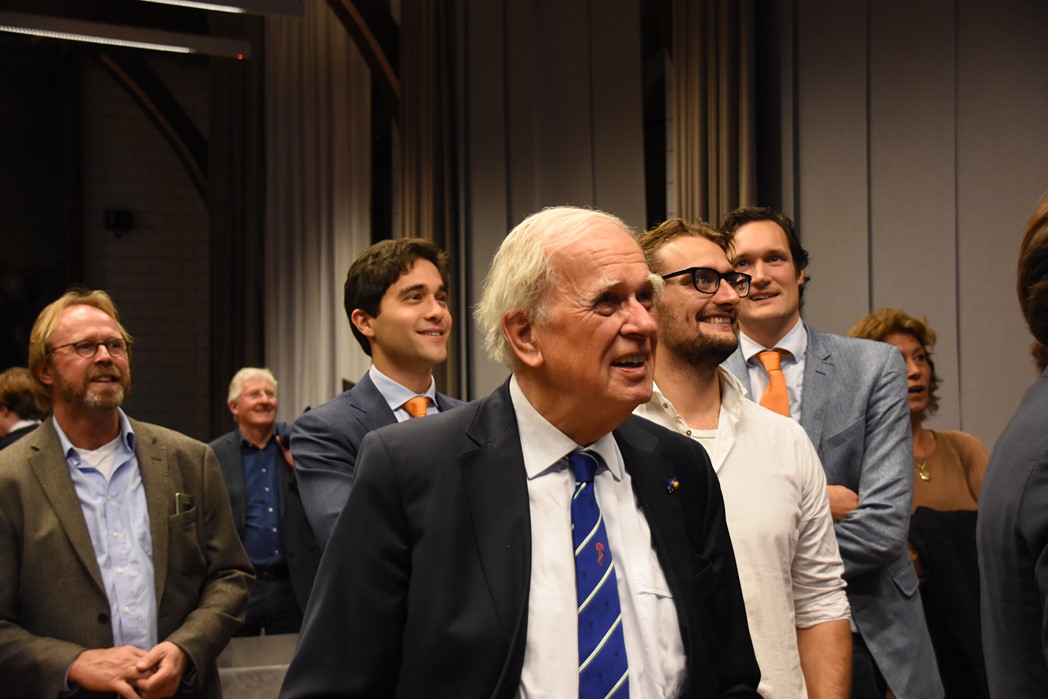 Na de polonaise en de groepsfoto met oud bewoners en genodigden werd het feestje voortgezet in de Faculty Club, uiteraard met bier en bitterballen.