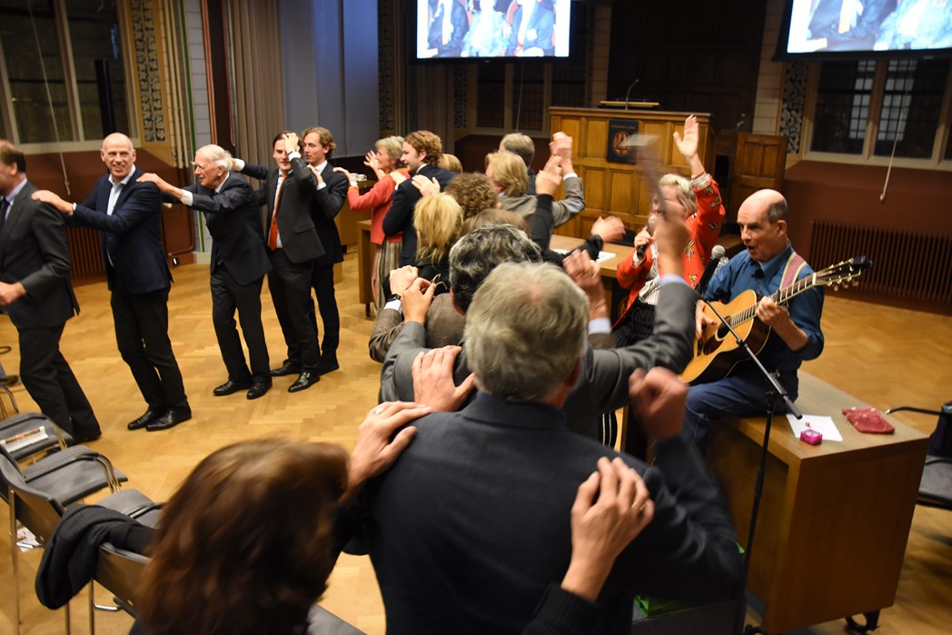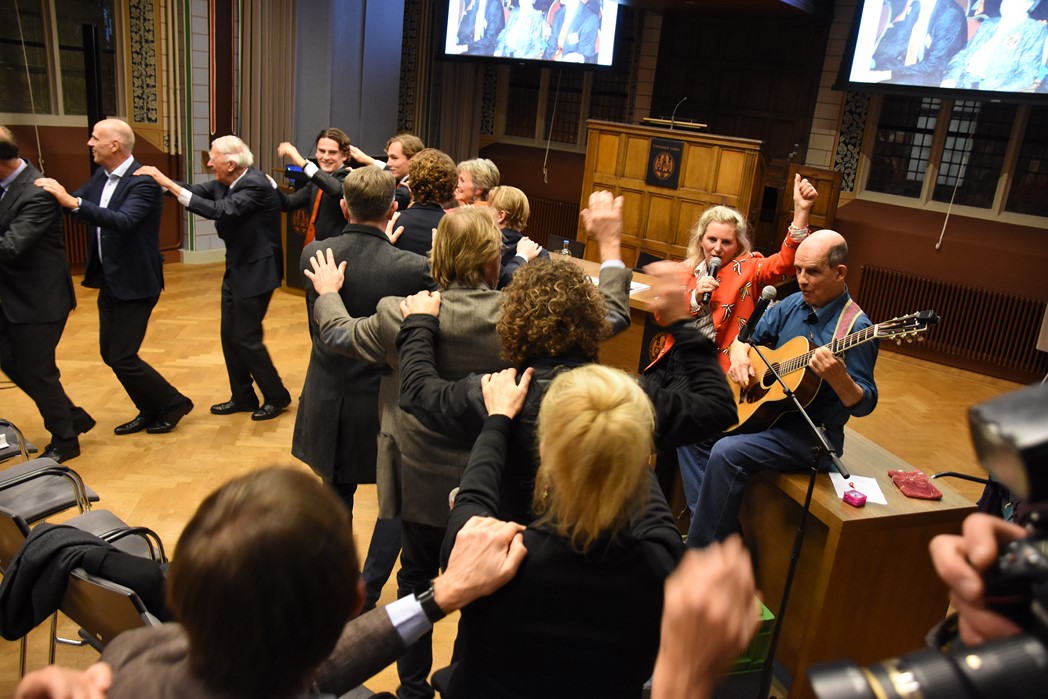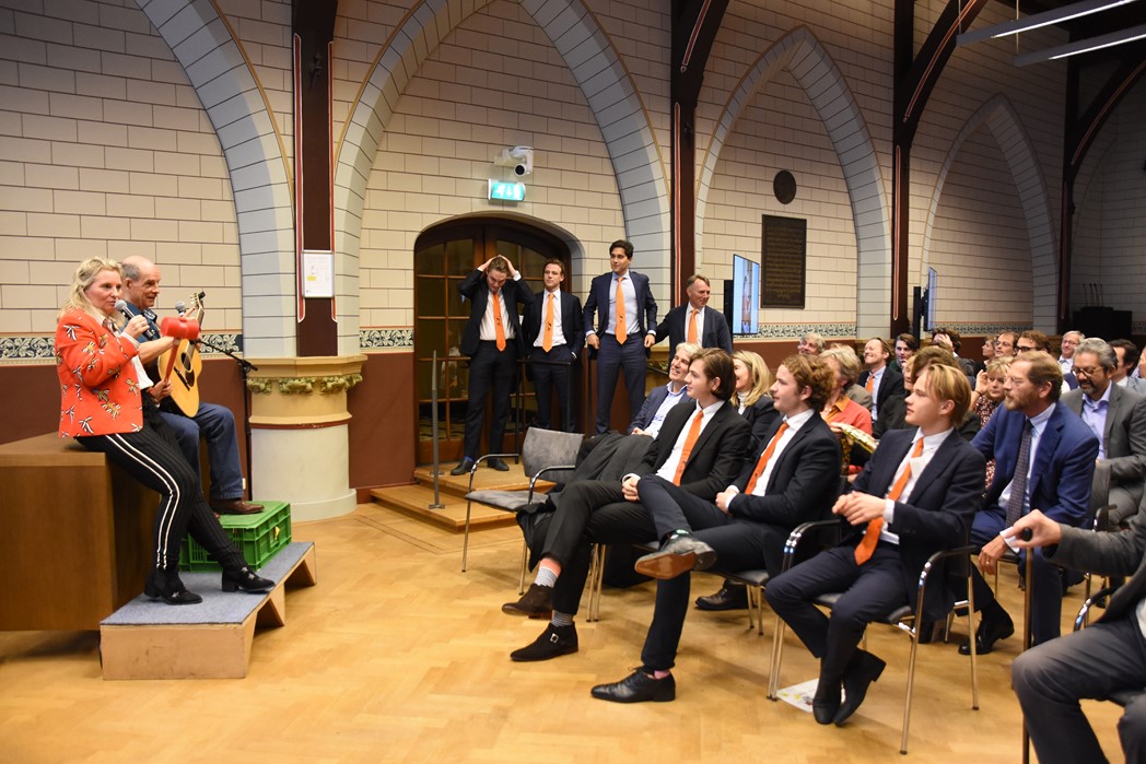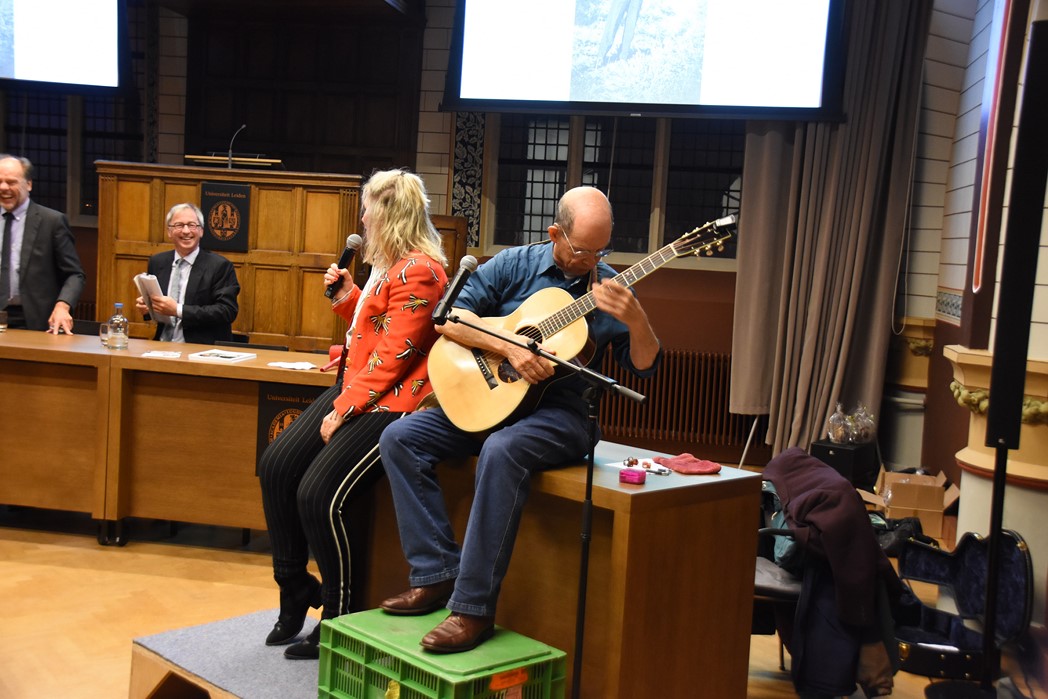 Tot slot was er een optreden van het duo Joop & Jessica waarbij zij enkele van hun liedjes over Leiden en het studentenleven zongen. Joop Visser is ook oud bewoner van het studentenhuis Rapenburg 110, alleen stond toen bekend als zanger/componist Jaap Fisscher. Jessica van Noord is zangeres en cabaretière. Niet gehinderd door ook maar een enkele academische inslag leek het haar leuk het statige Klein Auditorium eens te veranderen in een feestzaal en kreeg het voor elkaar dat er een polonaise werd gelopen waarbij ook rector magnificus Carel Stolker aanschoof.