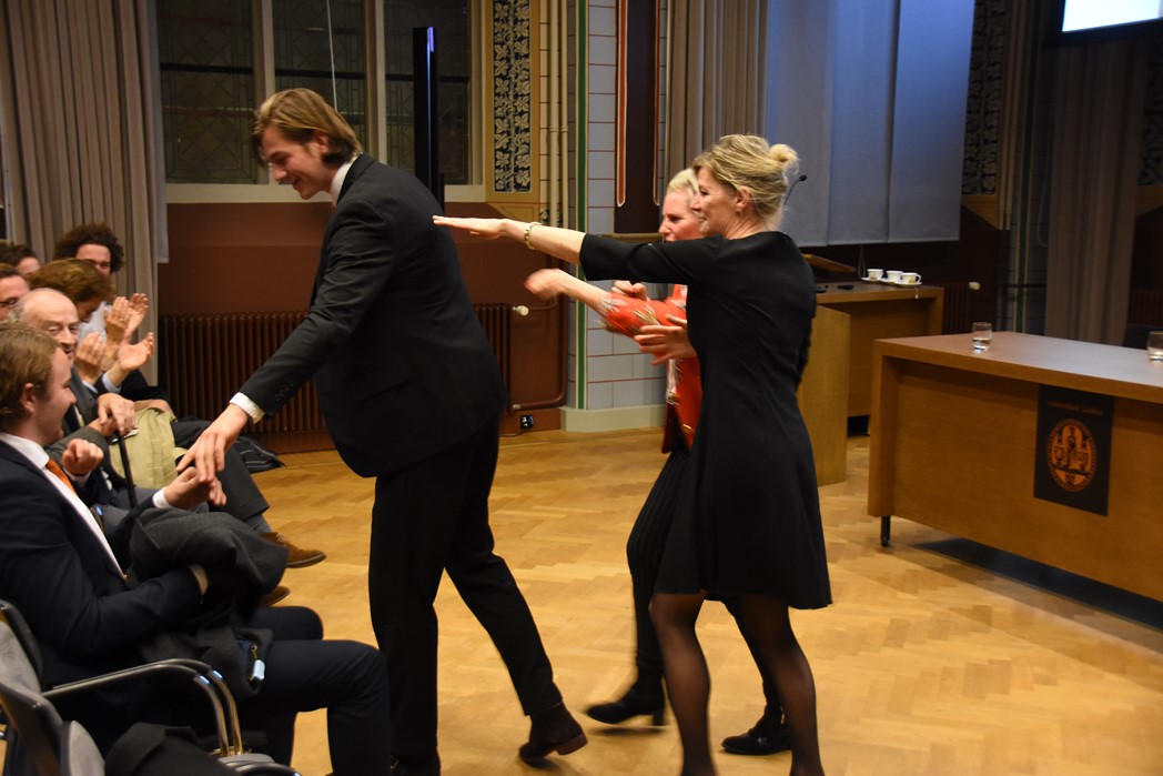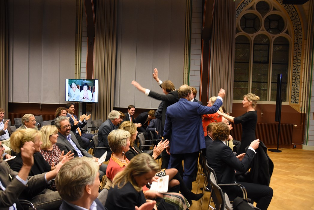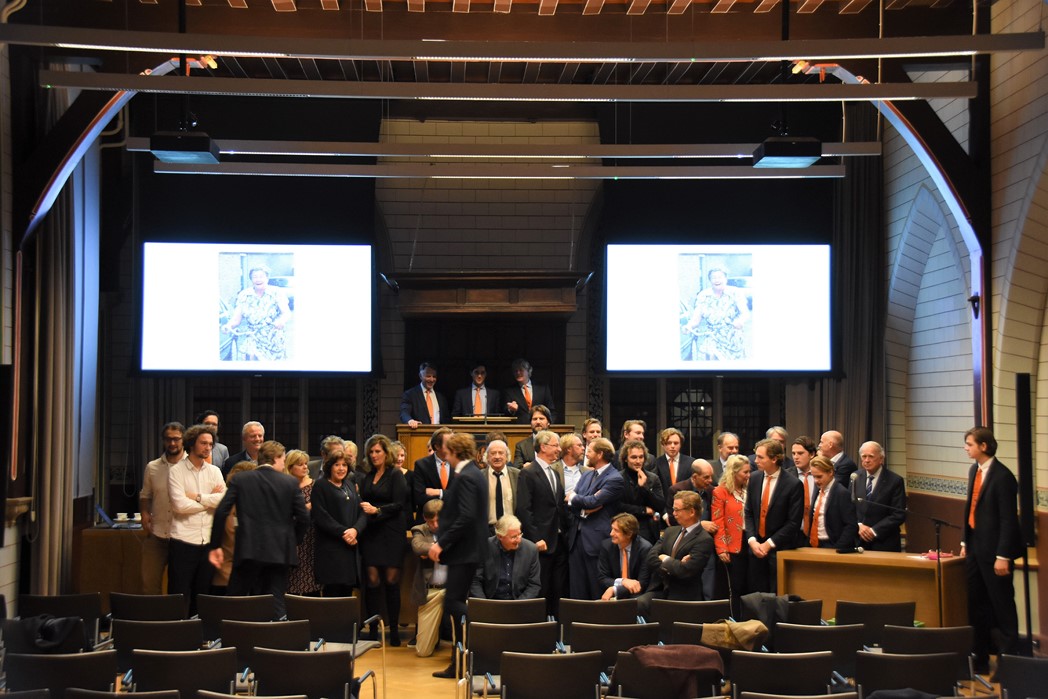 Tijdens een feestelijke bijeenkomst in het Klein Auditorium van het Academiegebouw van de Leidse universiteit werd vrijdag gevierd dat het Rie Schild-de Groen Fonds officieel is opgericht. Rie Schild was gedurende 70 jaar huishoudster van studentenpand Rapenburg 110. Zij werd ondanks haar strenge regels op handen gedragen door de studenten. (In De Mare van afgelopen week staat een groot artikel over haar leven tussen de Leidse studenten.) Elke ochtend werd er om half 10 koffie gedronken, ongeacht of je een kater had of niet, je had er maar te zijn. Nachtelijk damesbezoek tolereerde ze ook niet en als ze ’s morgens toch dames in een van de bedden vond dan joeg zij die er uit met een plens ammonia.