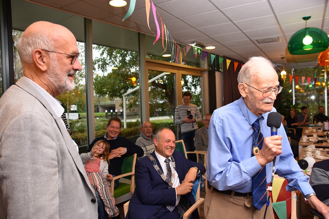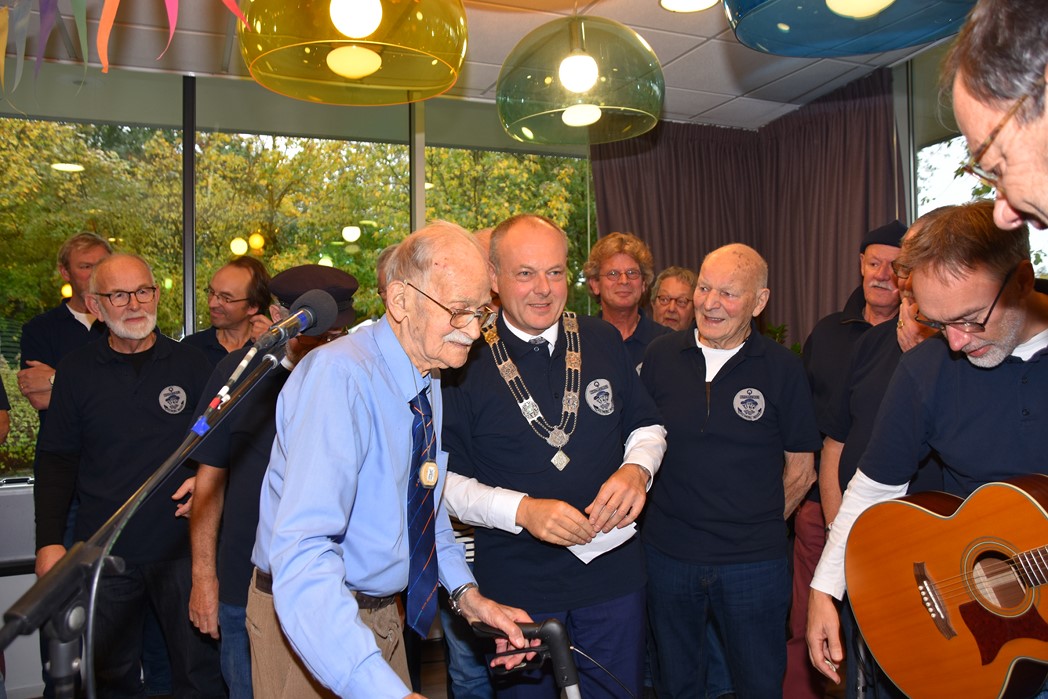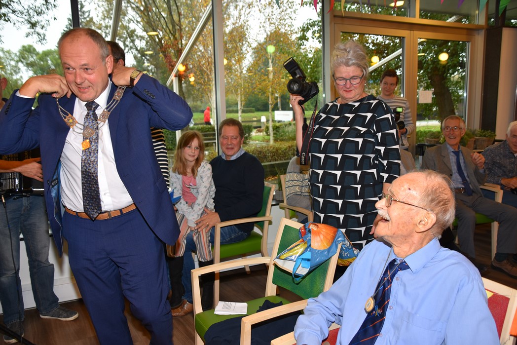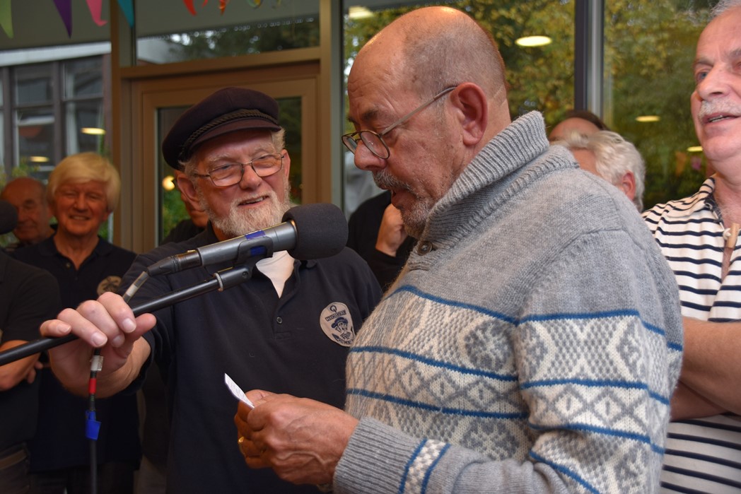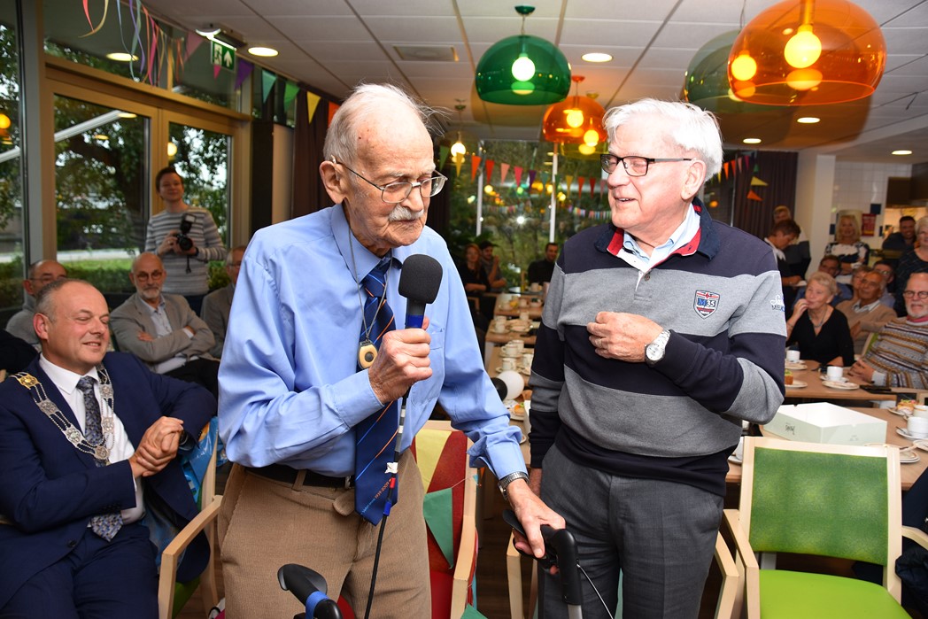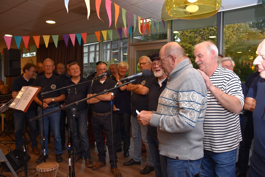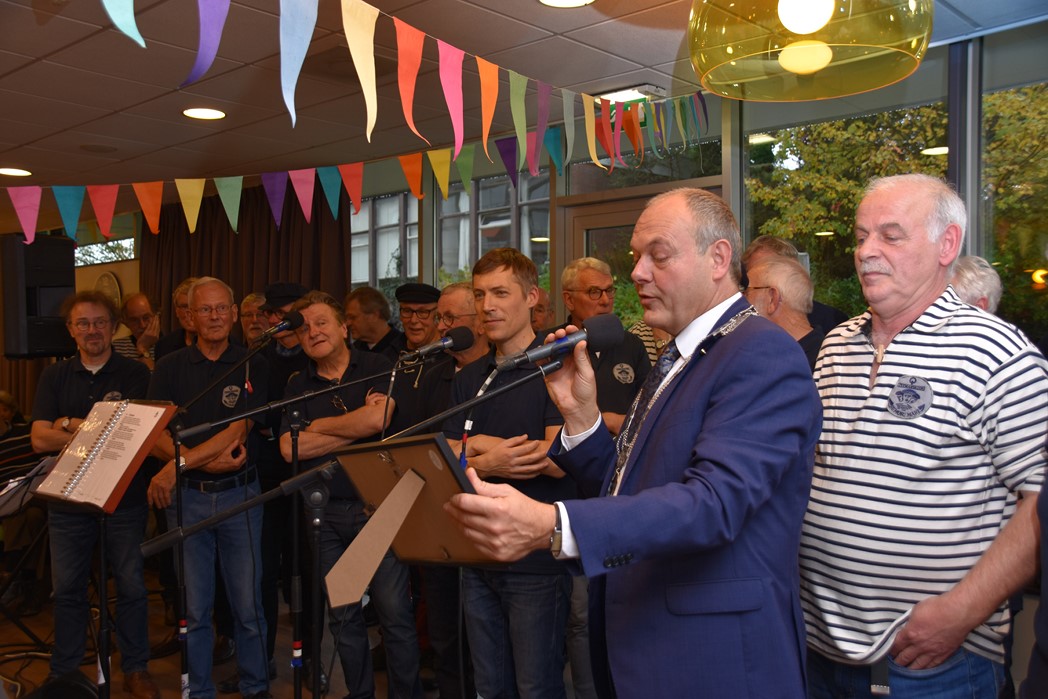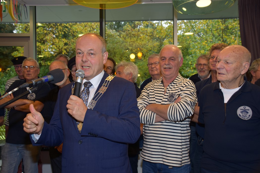 Ko Zonneveld zingt samen met burgemeester Henri Lenferink het lied De Fles
