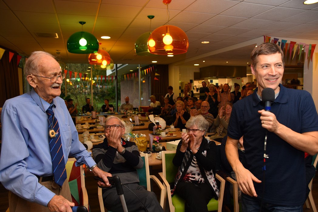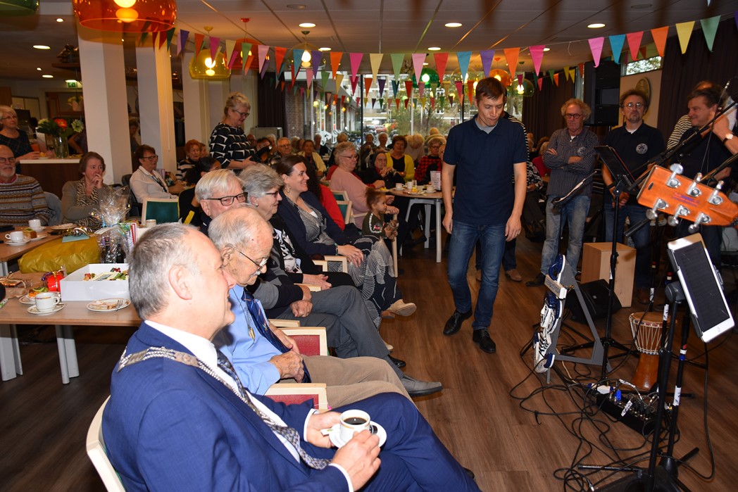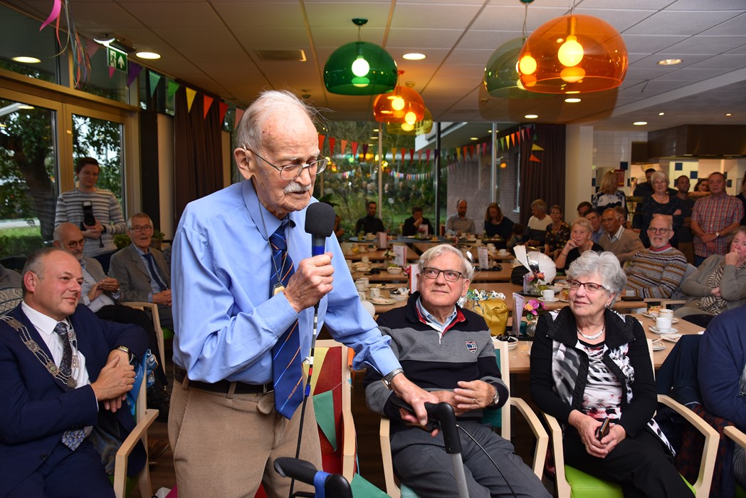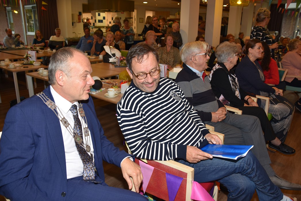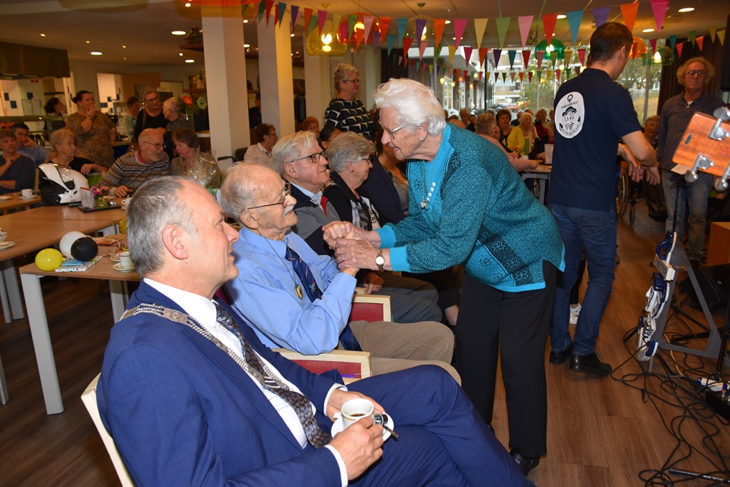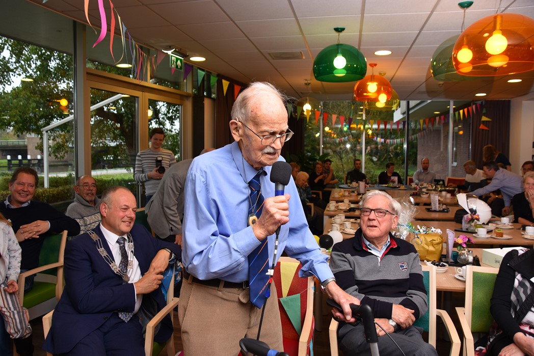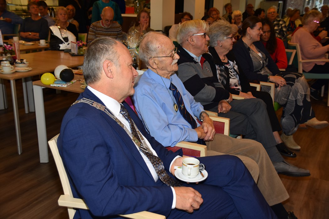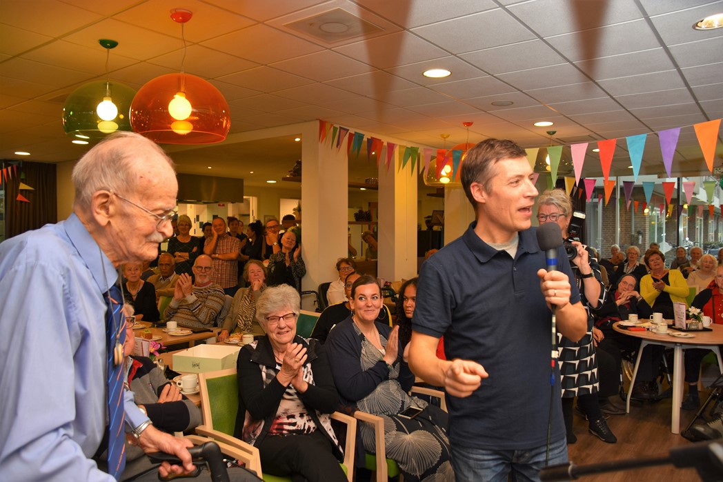 Ko Zonneveld zingt samen met burgemeester Henri Lenferink het lied De Fles
