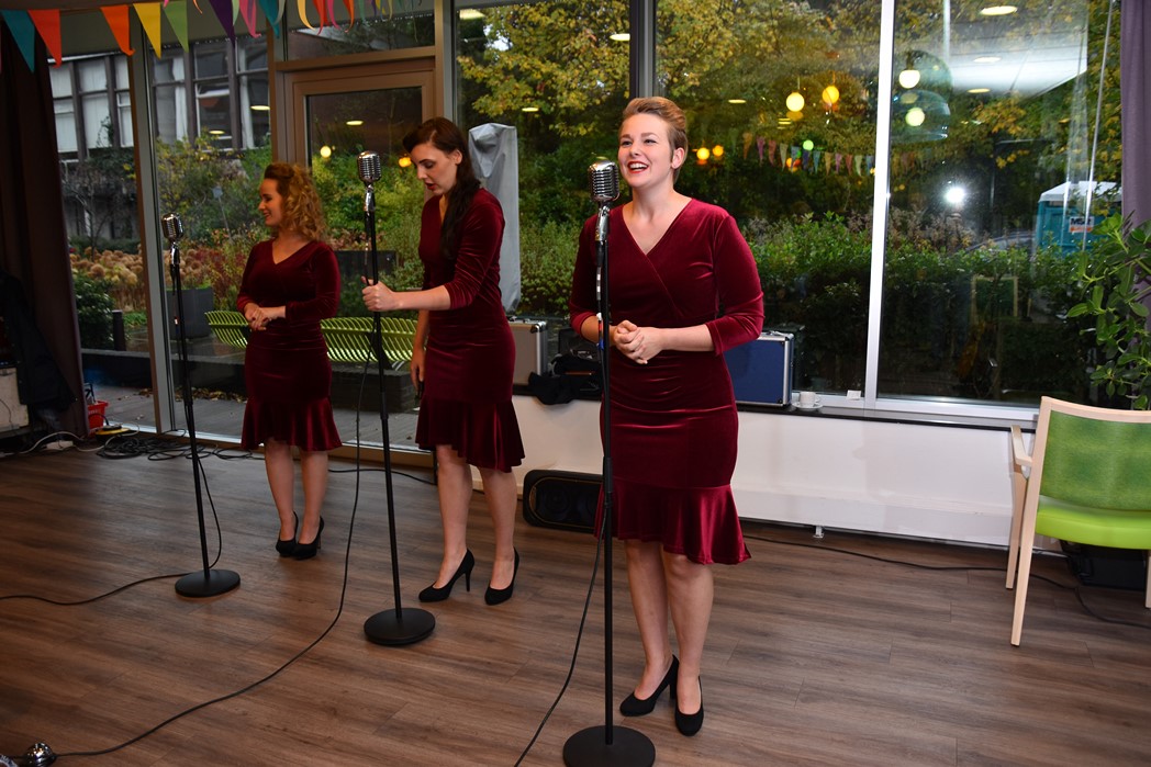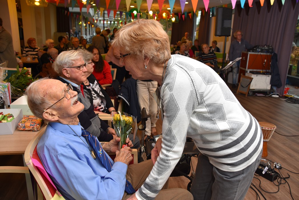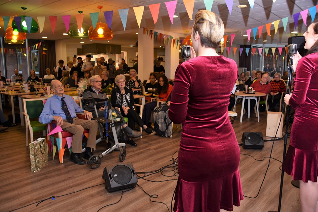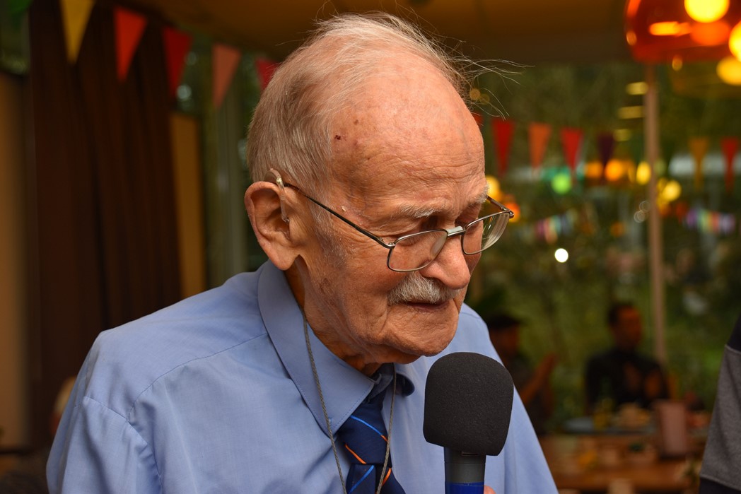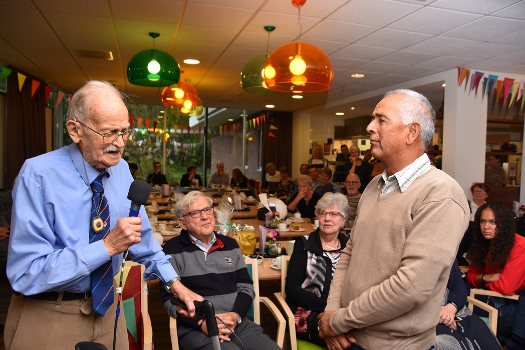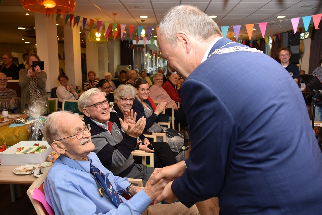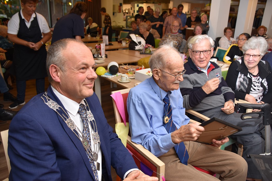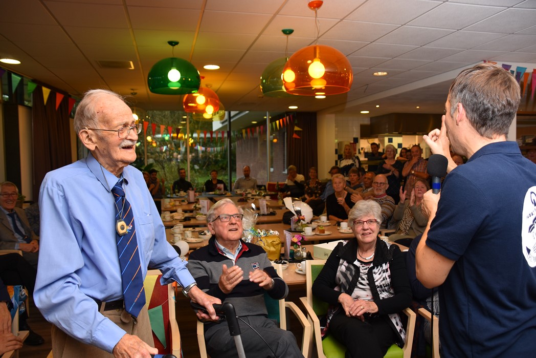 Ko Zonneveld zingt samen met burgemeester Henri Lenferink het lied De Fles