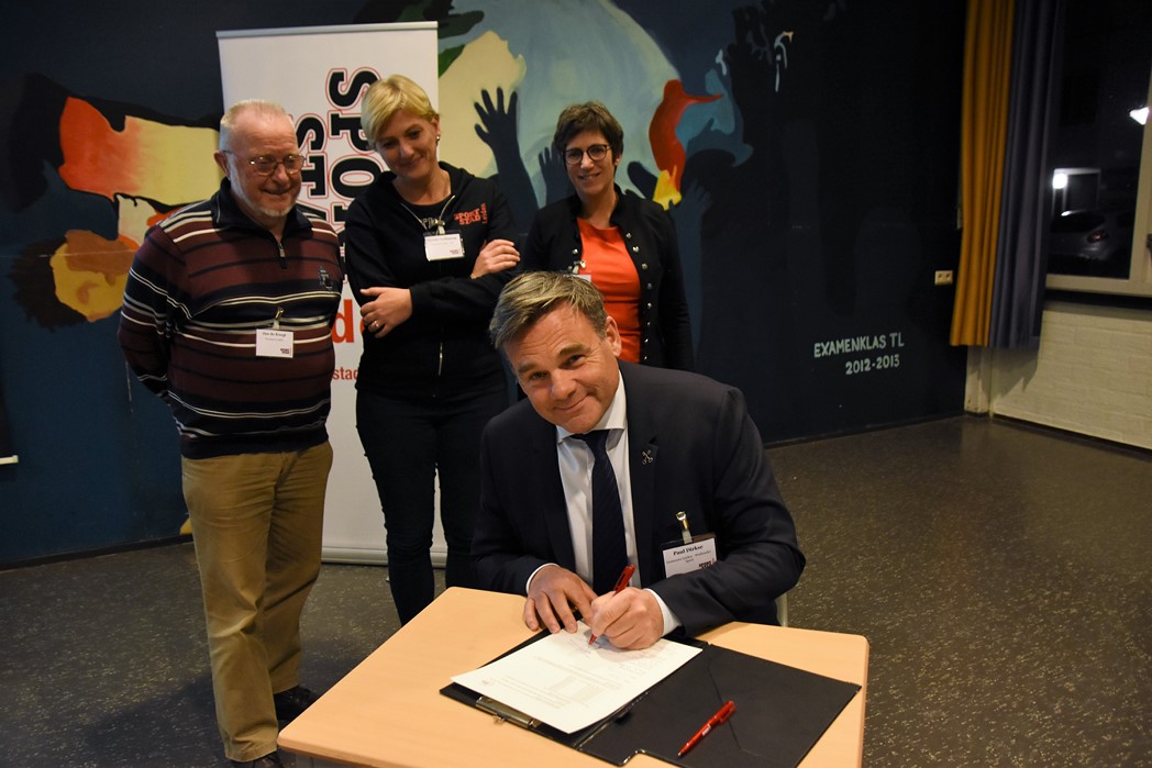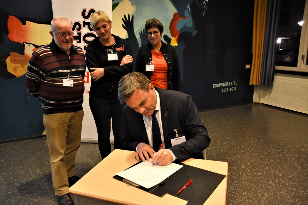De start van het akkoord werd gisteren ondertekend door slechts drie partijen, terwijl het de bedoeling is dat het project een groot draagvlak heeft. Dat heeft volgens Dirkse een administratieve reden. “Het ministerie vraagt minimaal drie sportaanbieders om mee te tekenen. We wilden in deze fase niet teveel tijd verliezen, want we willen nu zo snel mogelijk die 15.000 euro ophalen voor het aanstellen van de sportformateur. Maar als er straks een sportakkoord ligt, moeten daar niet vier, maar zestig of zeventig namen onder staan.”