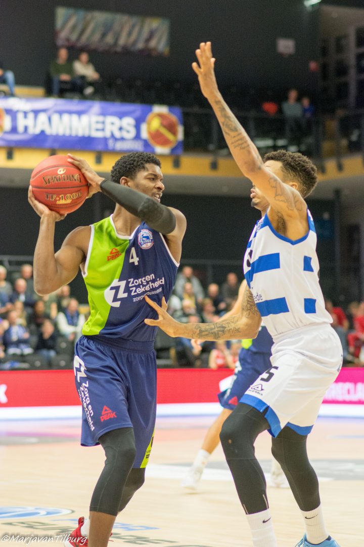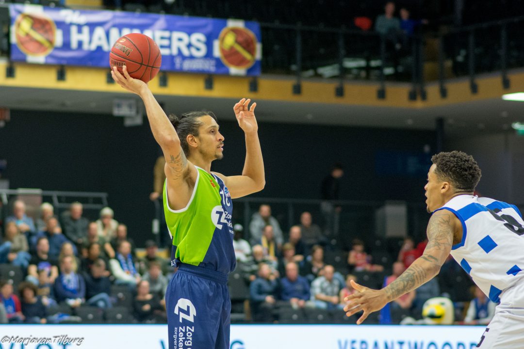 Zorg en Zekerheid Leiden heeft de derde nederlaag van het seizoen moeten incasseren. In de laatste vijf minuten van het tweede kwart draaide Landstede Hammers een 35-37 achterstand om in een 50-37 voorsprong. Zorg en Zekerheid Leiden slaagde er daarna niet meer in om de Zwollenaren te bedreigen. Het werd uiteindelijk 92-75 voor Landstede Hammers.
