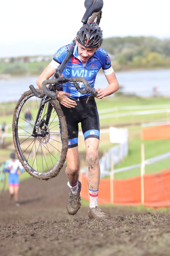 Op zondag is het dan de beurt aan de jongste jeugd. De KNWU hanteert een minimumleeftijd van 8 jaar voor deelname aan wedstrijden veldrijden. Dat betekent dat bij Swift kinderen vanaf 7 jaar welkom zijn om te beginnen met trainen. Jaap Weeder is een van de trainers bij Swift en doet zelf ook graag aan veldrijden. “Lekker in de modder spelen en legitiem vies worden, is voor de meeste kinderen leuk. Veldrijden is behoorlijk zwaar, met een uurtje heb je een goede training te pakken.”