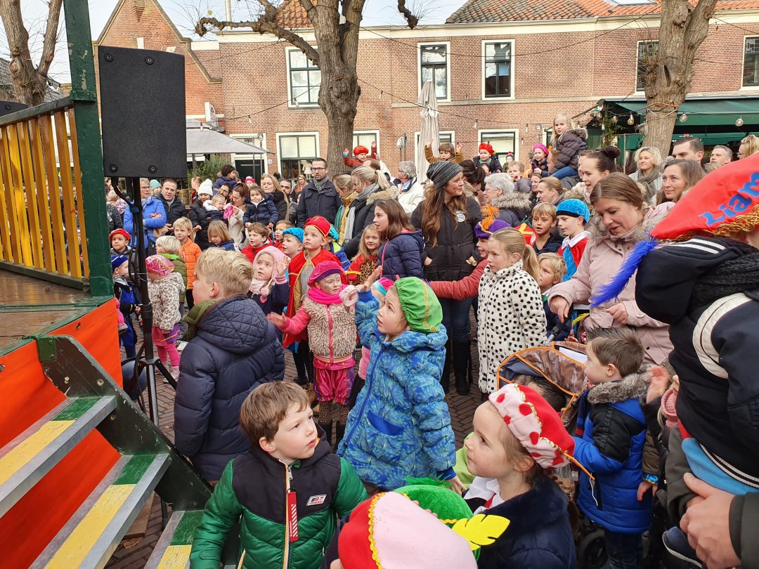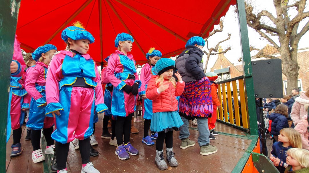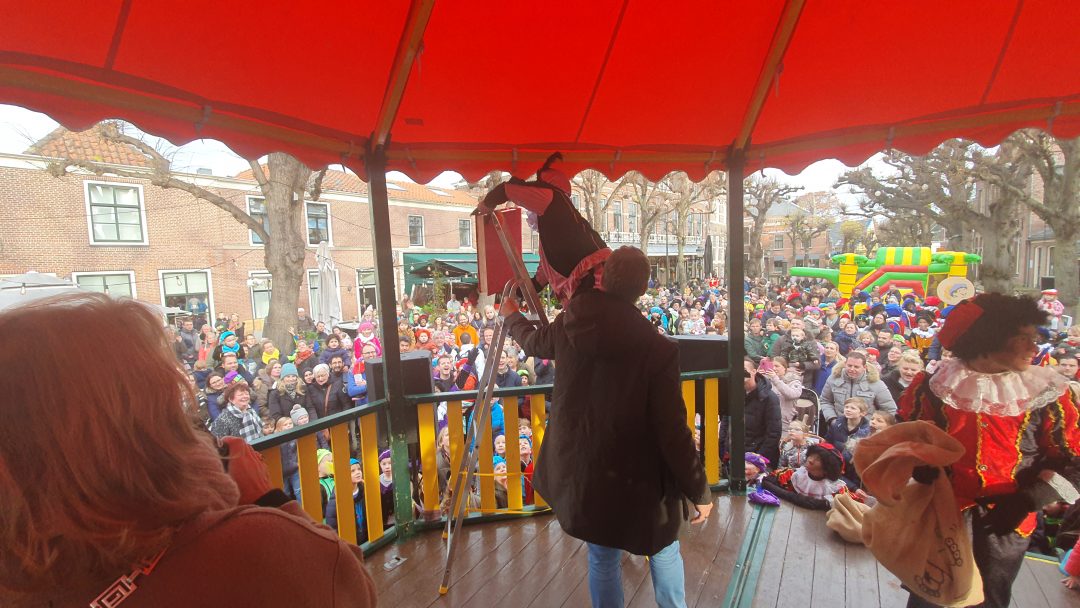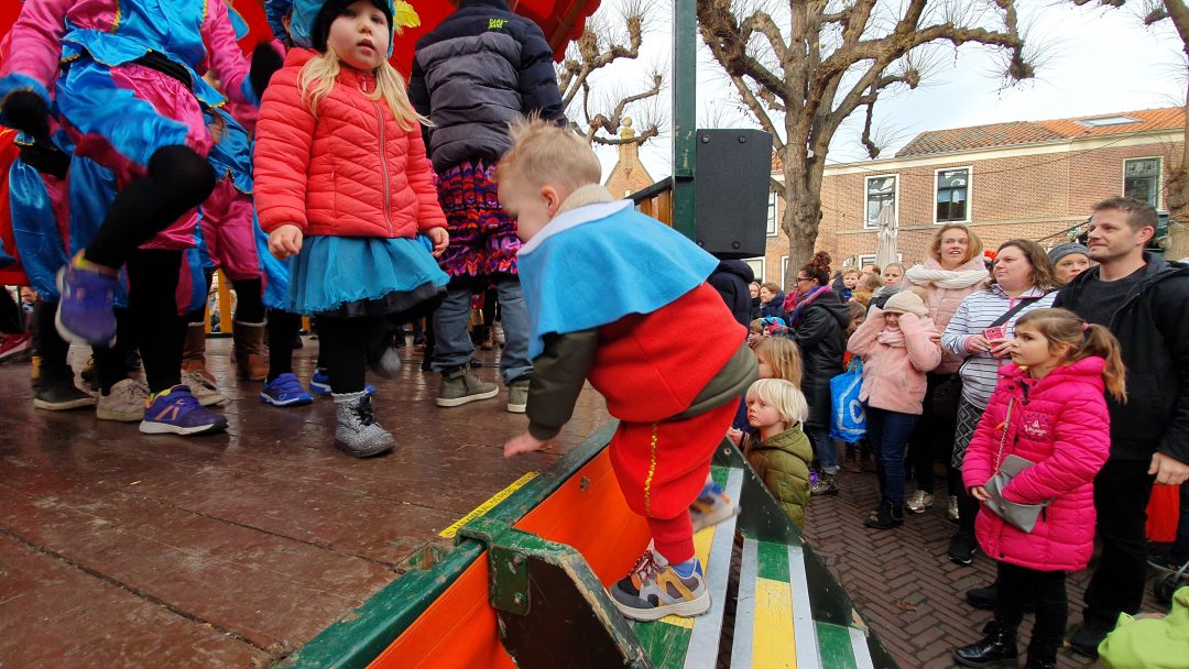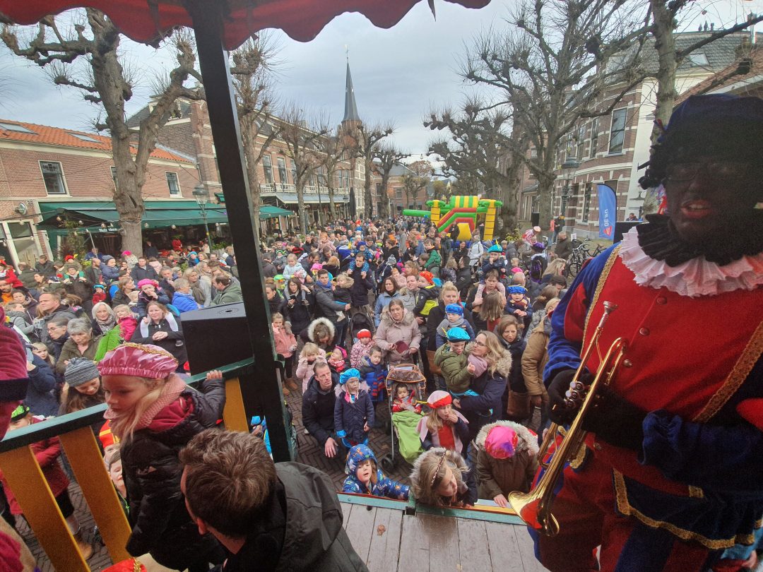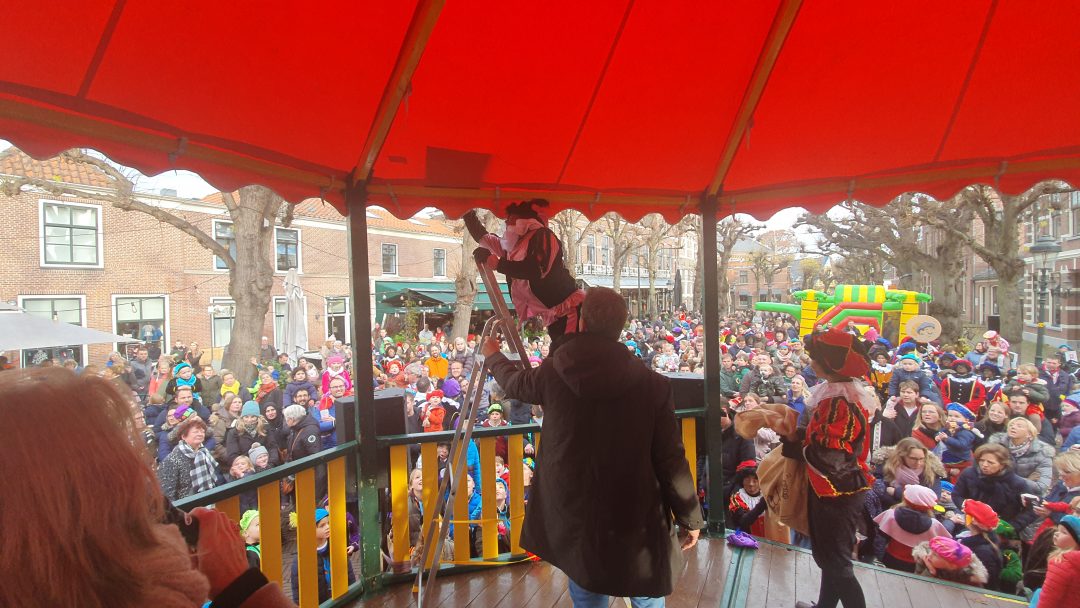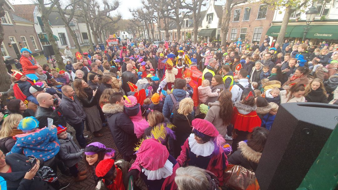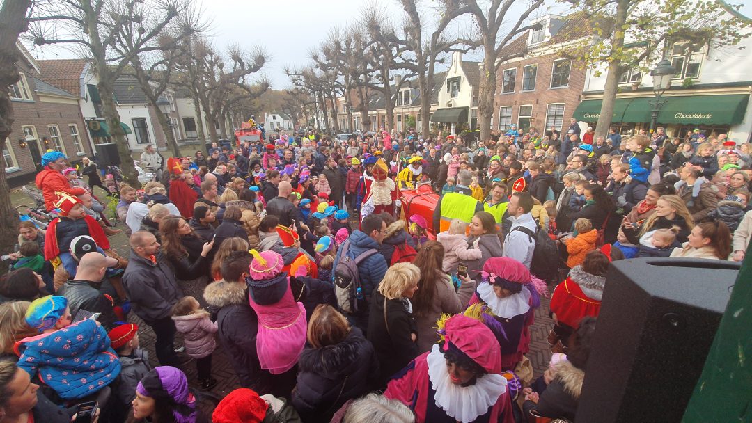 De burgemeester ontving sinterklaas op het podium in de Voorstraat nadat de goedheiligman met zijn pieten eerst een tocht door het centrum had gemaakt. Het toegestroomde publiek werd ondertussen vermaakt door de danspieten van Balletstudio Giselle.