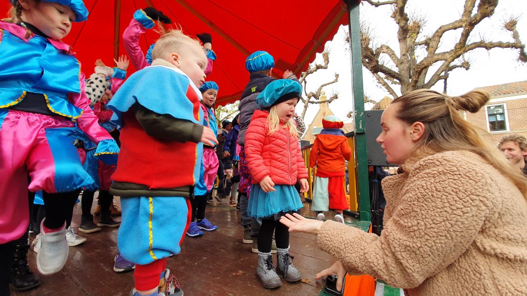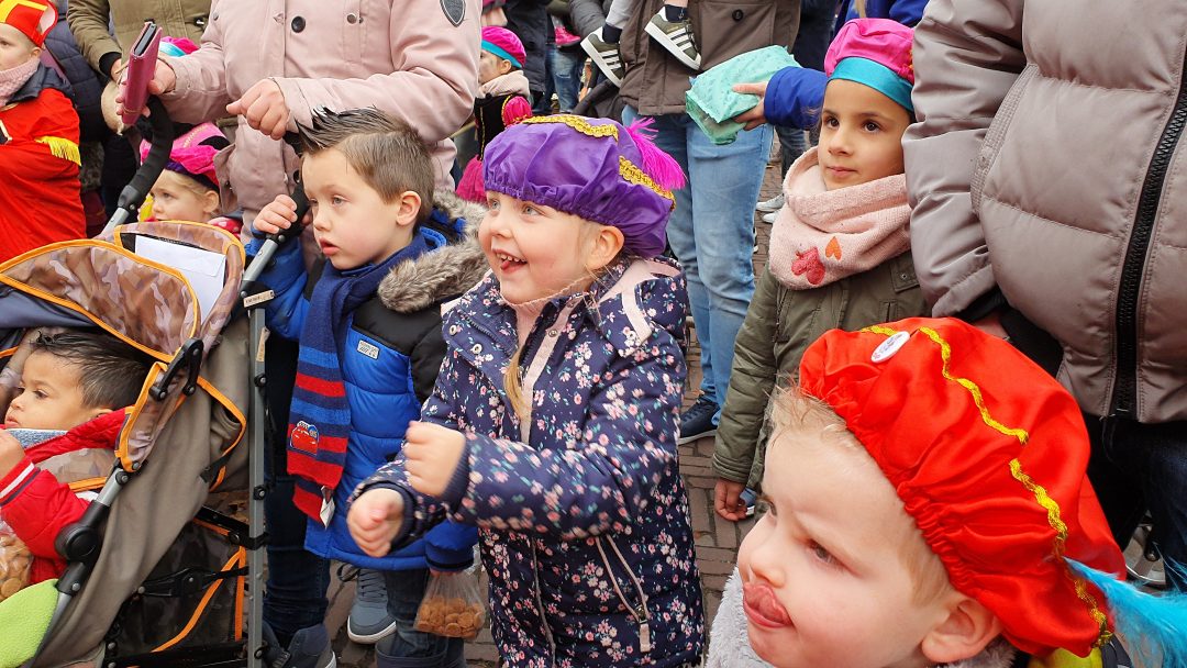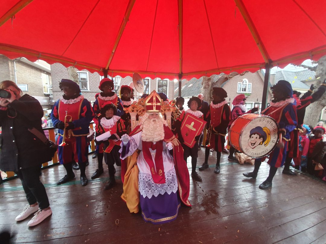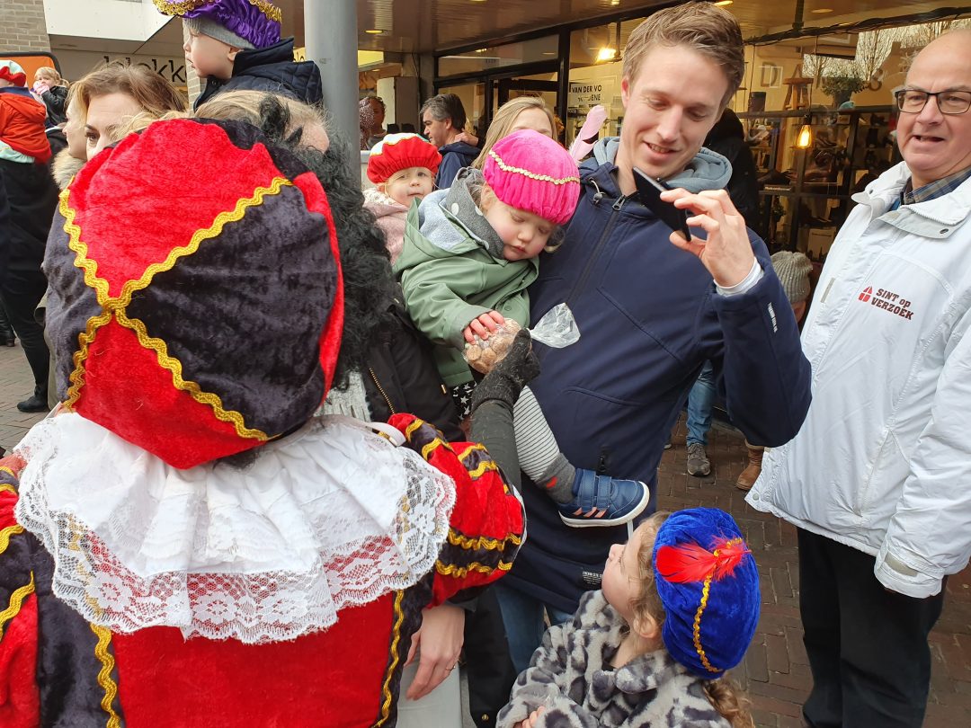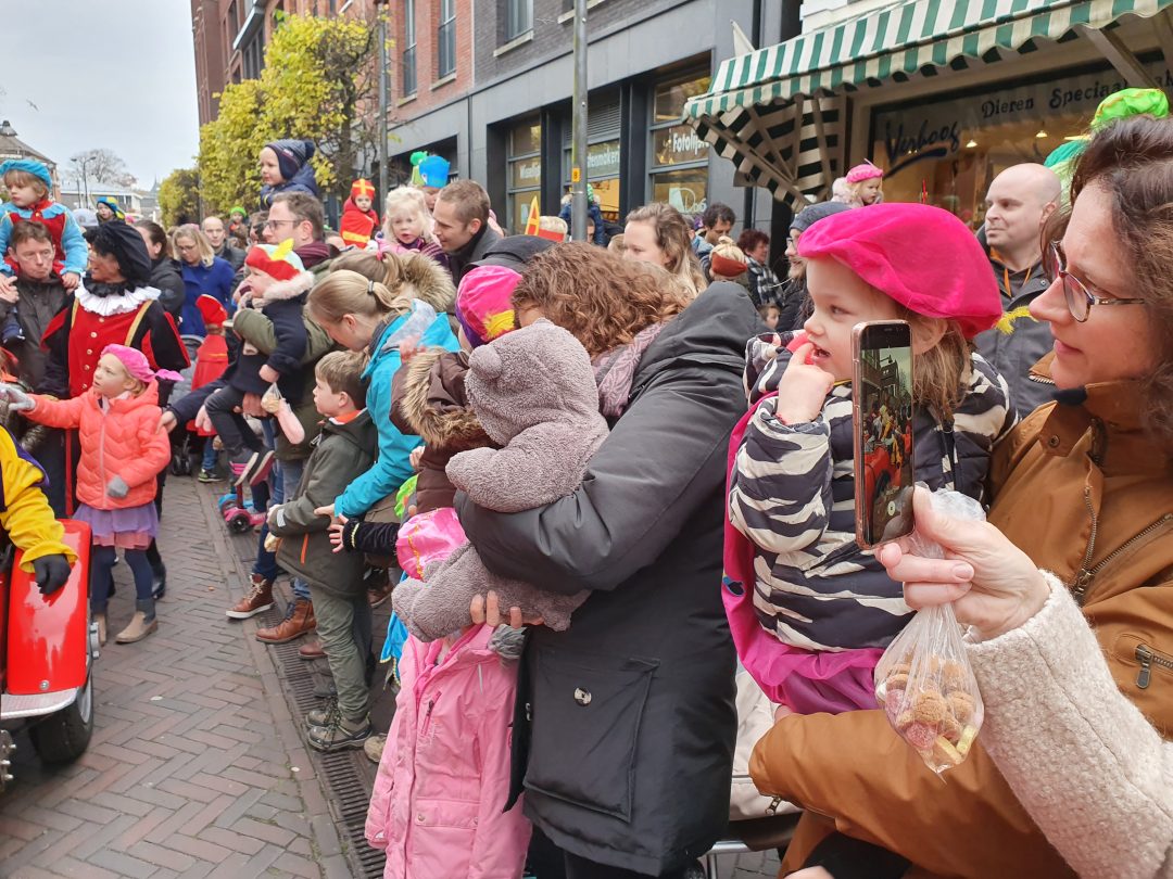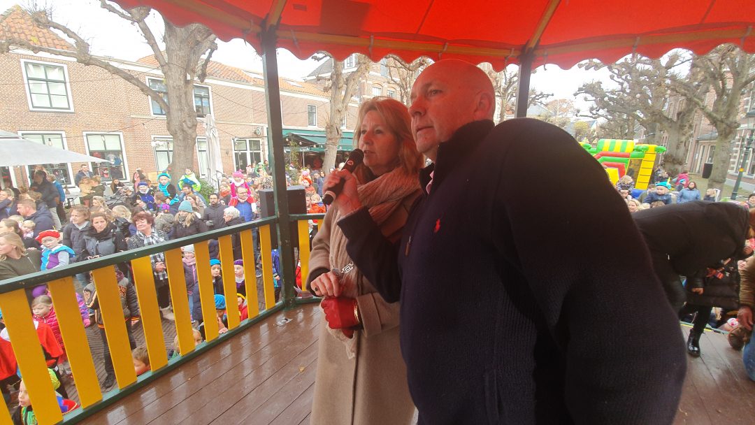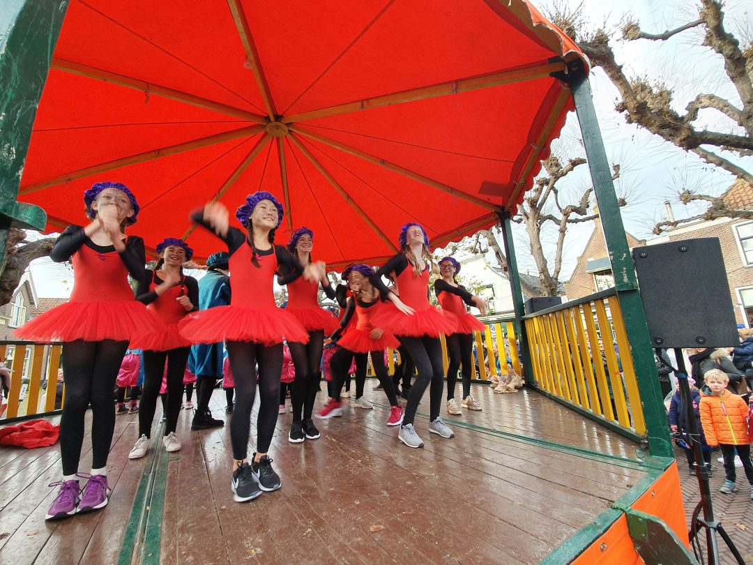 De burgemeester ontving sinterklaas op het podium in de Voorstraat nadat de goedheiligman met zijn pieten eerst een tocht door het centrum had gemaakt. Het toegestroomde publiek werd ondertussen vermaakt door de danspieten van Balletstudio Giselle.