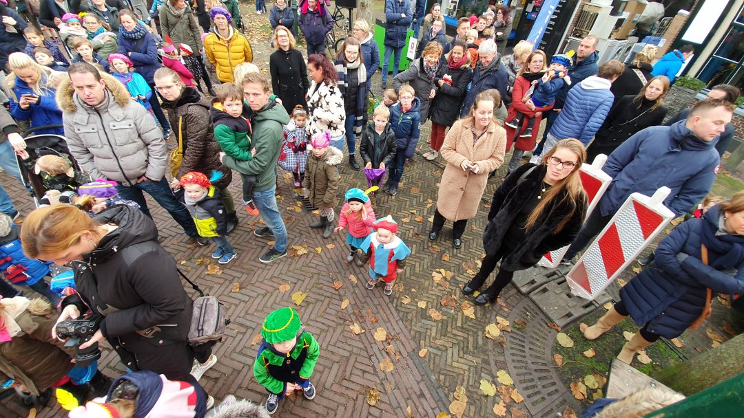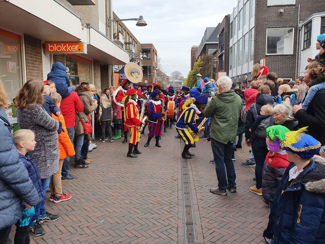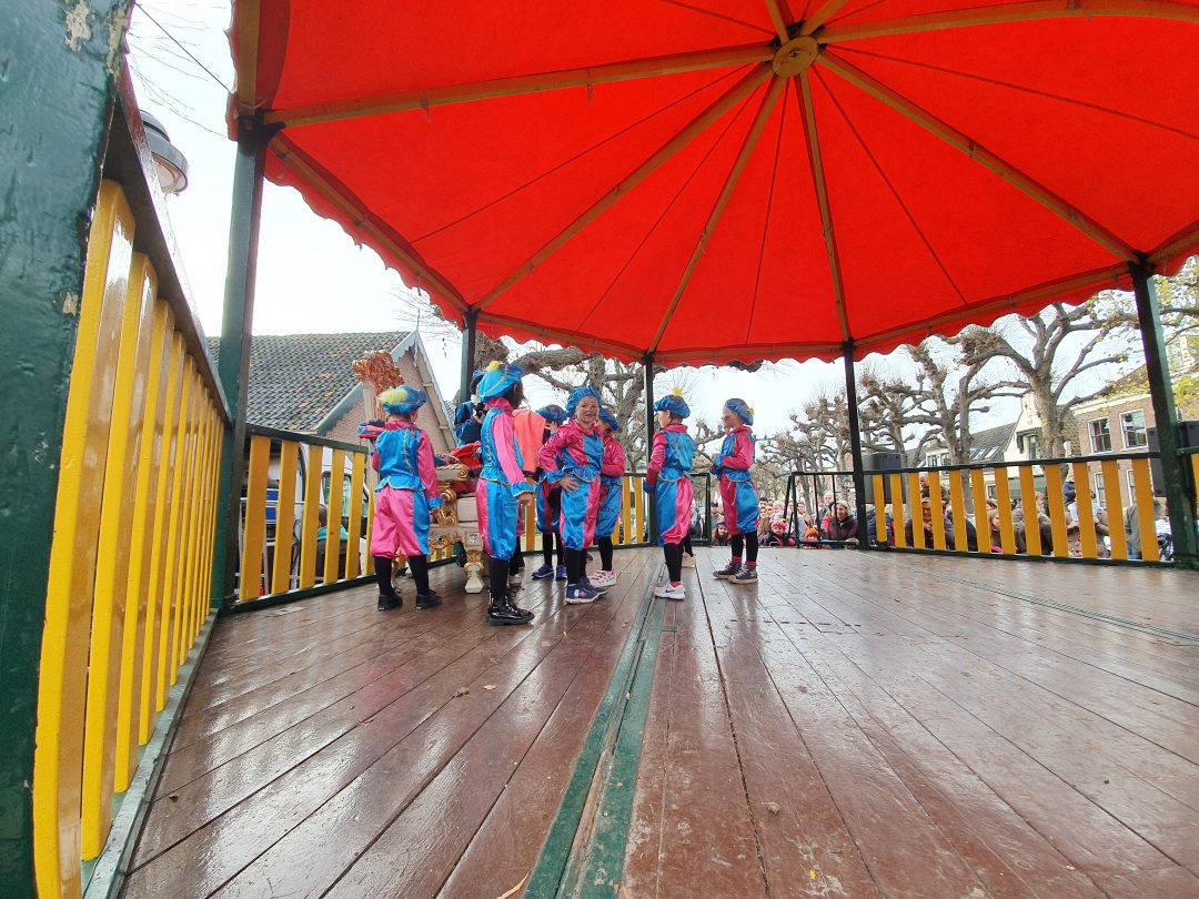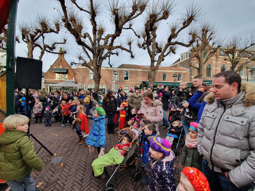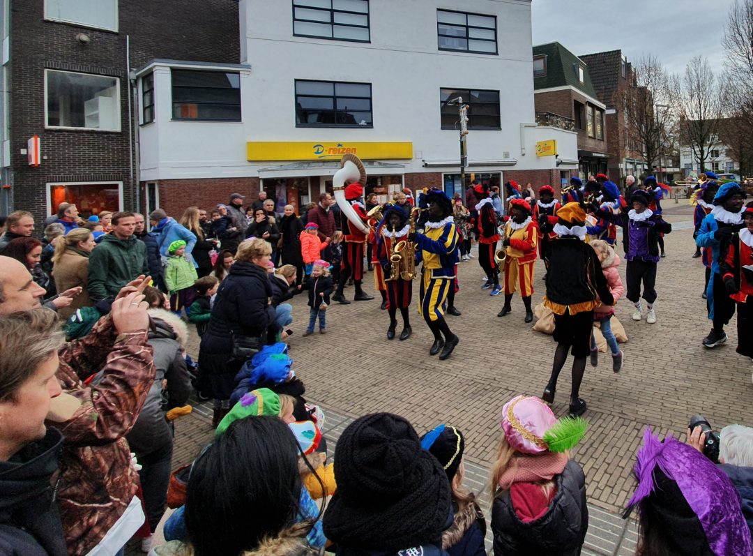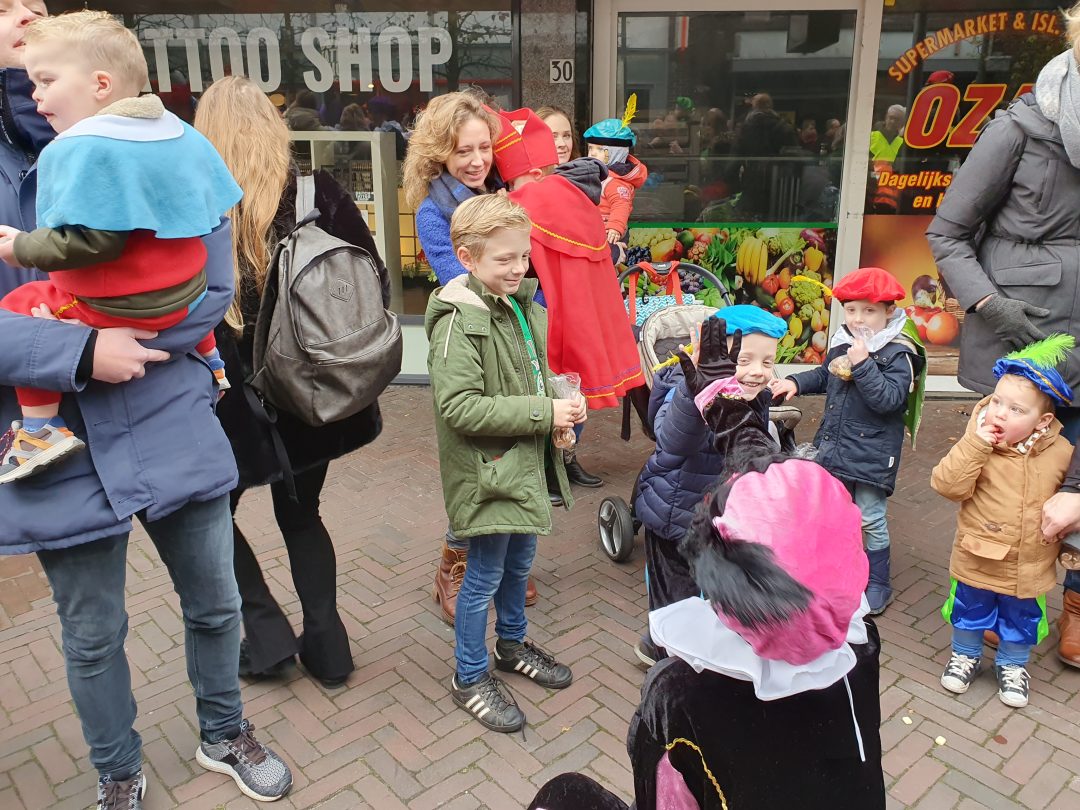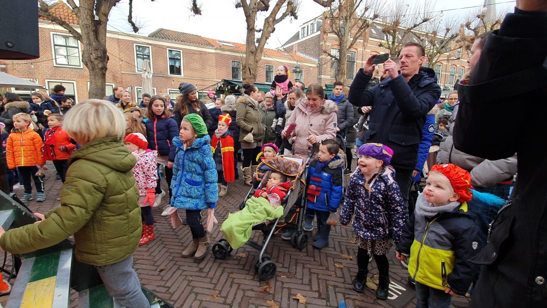 De burgemeester ontving sinterklaas op het podium in de Voorstraat nadat de goedheiligman met zijn pieten eerst een tocht door het centrum had gemaakt. Het toegestroomde publiek werd ondertussen vermaakt door de danspieten van Balletstudio Giselle.