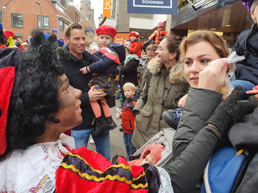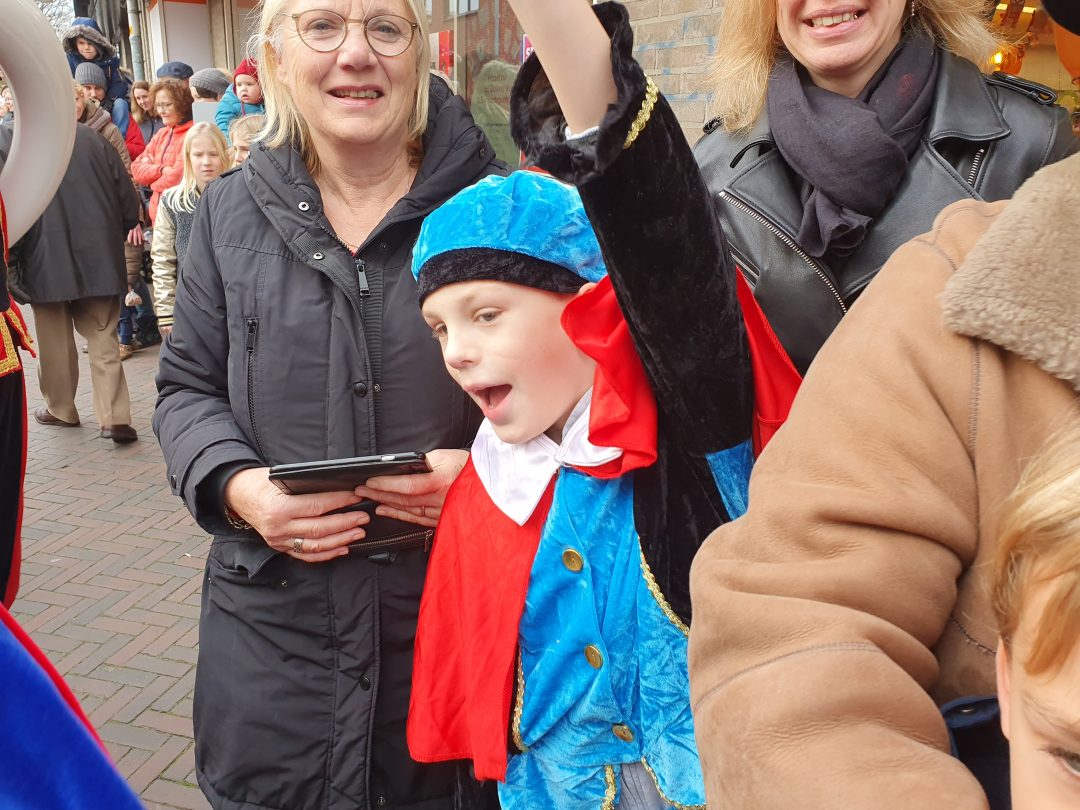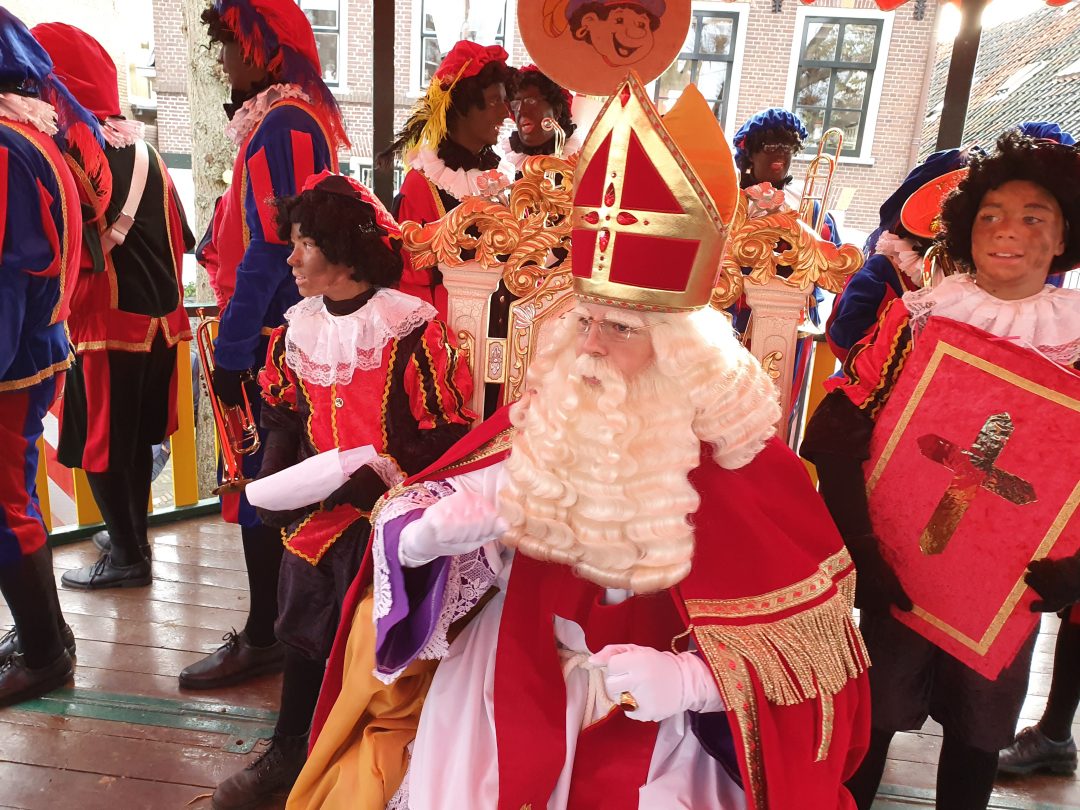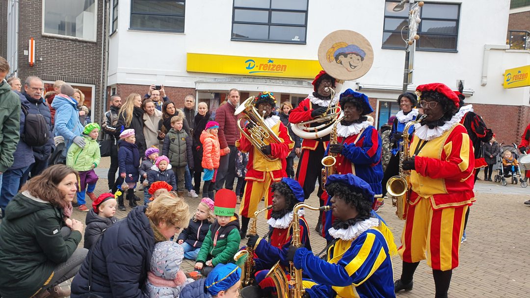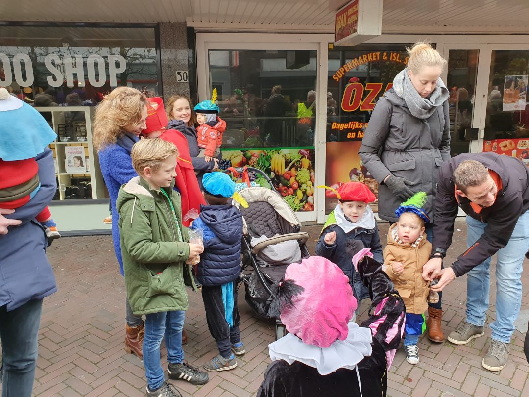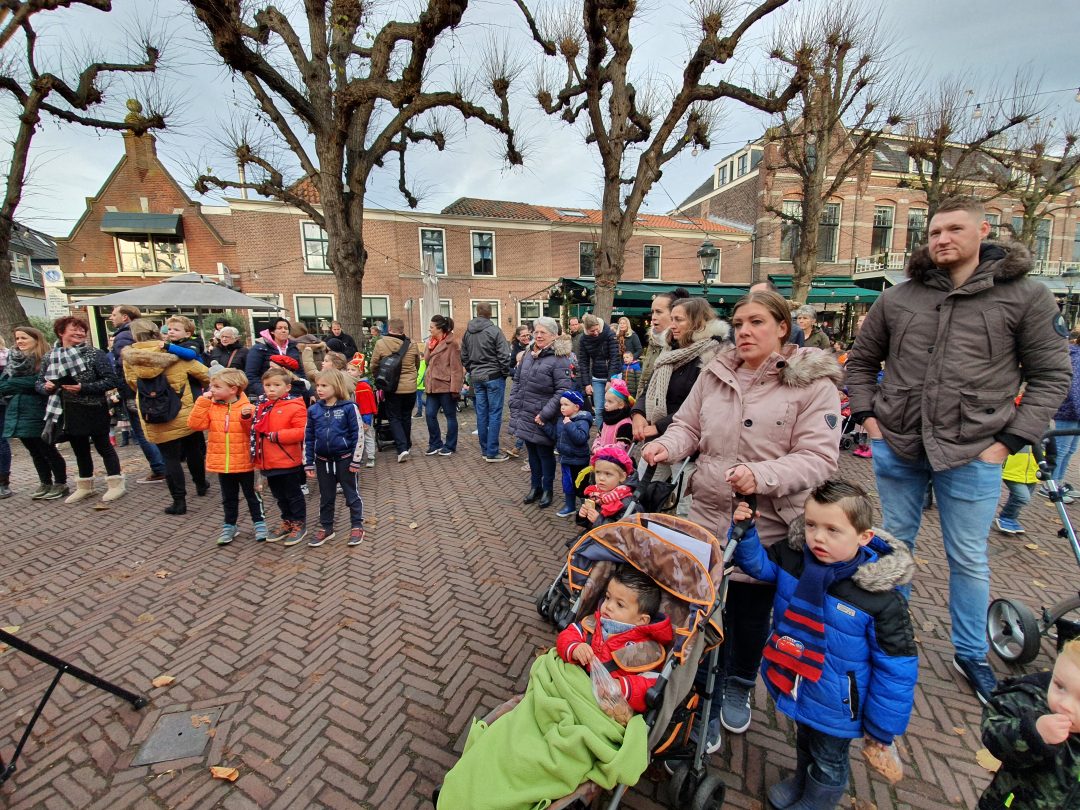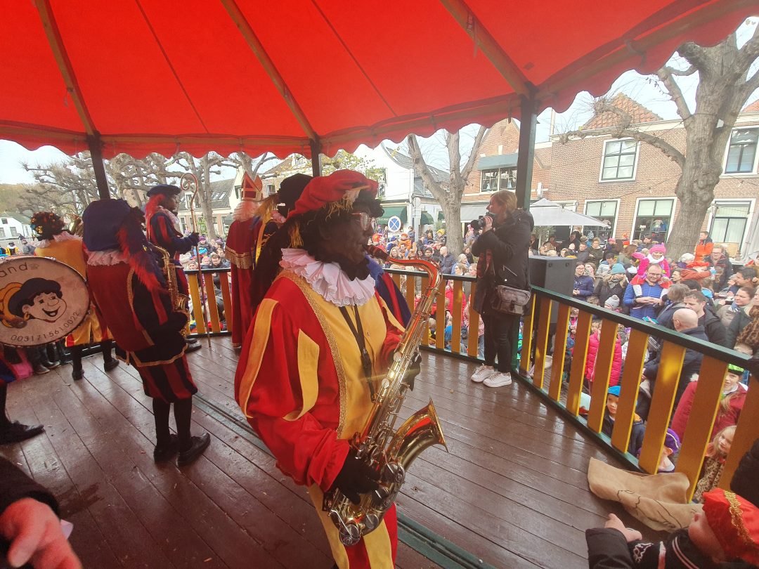 De burgemeester ontving sinterklaas op het podium in de Voorstraat nadat de goedheiligman met zijn pieten eerst een tocht door het centrum had gemaakt. Het toegestroomde publiek werd ondertussen vermaakt door de danspieten van Balletstudio Giselle.