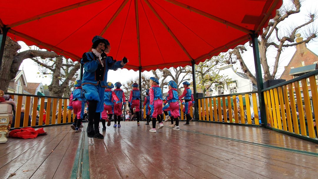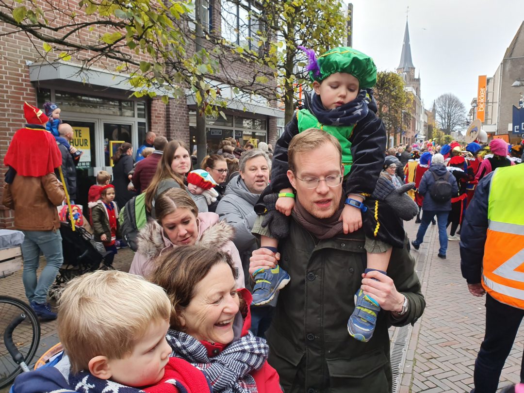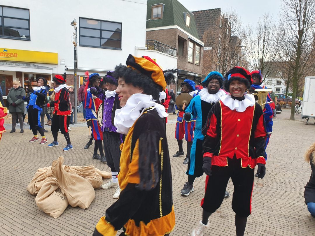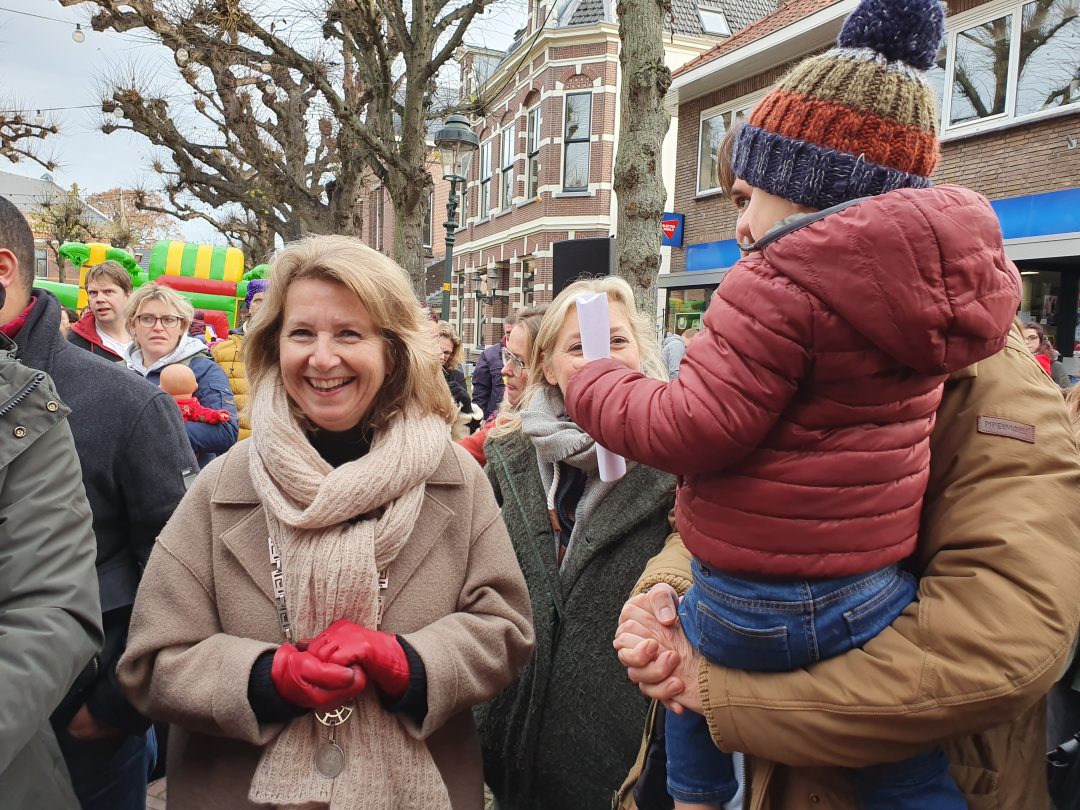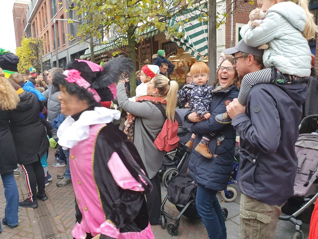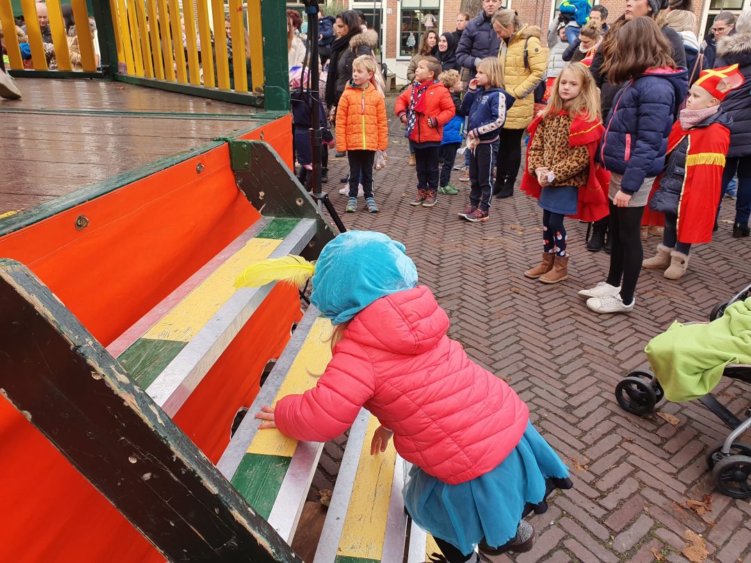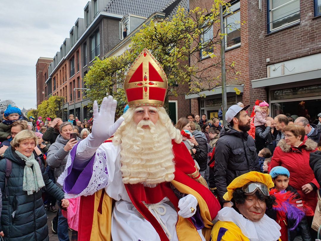 De burgemeester ontving sinterklaas op het podium in de Voorstraat nadat de goedheiligman met zijn pieten eerst een tocht door het centrum had gemaakt. Het toegestroomde publiek werd ondertussen vermaakt door de danspieten van Balletstudio Giselle.