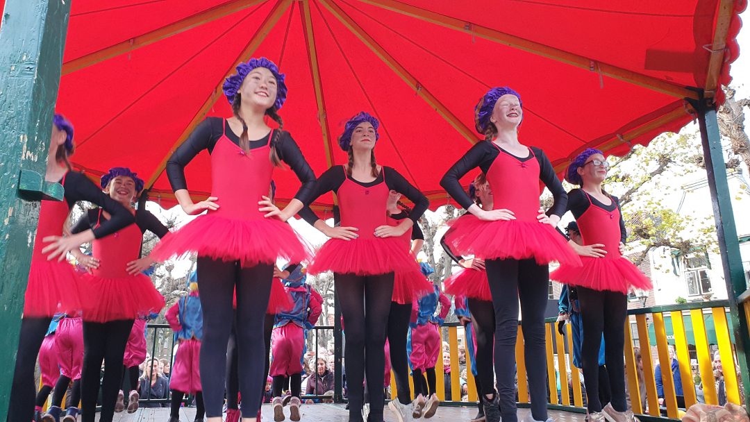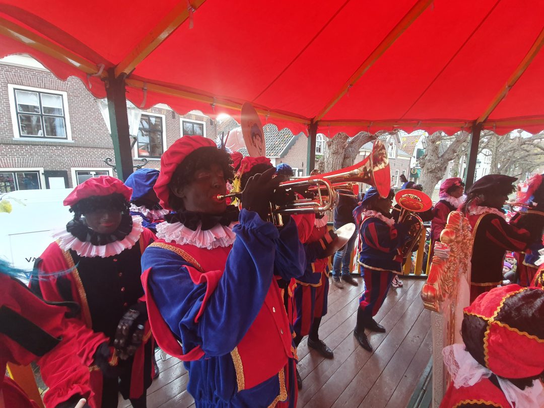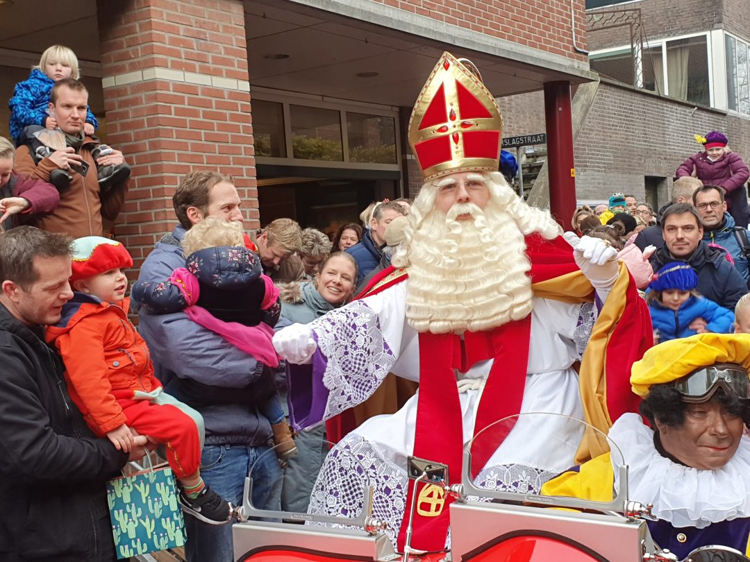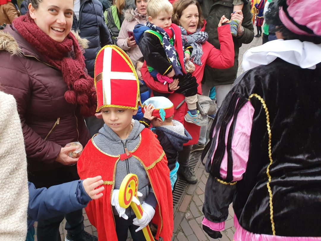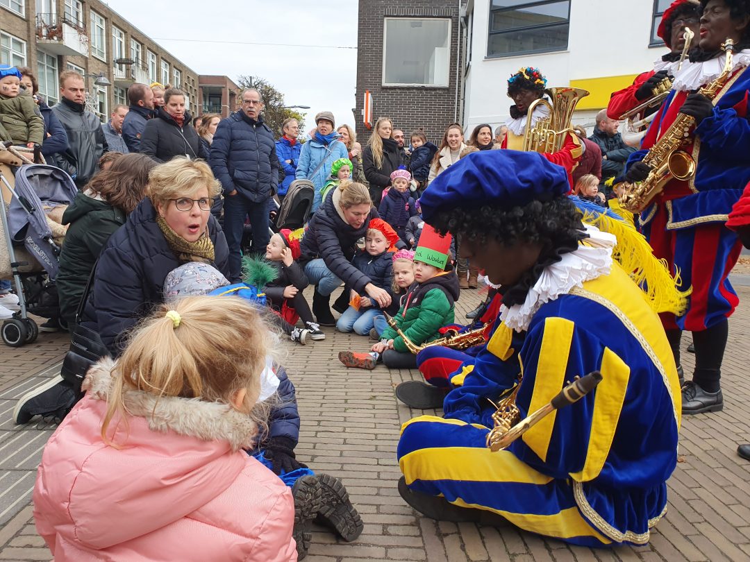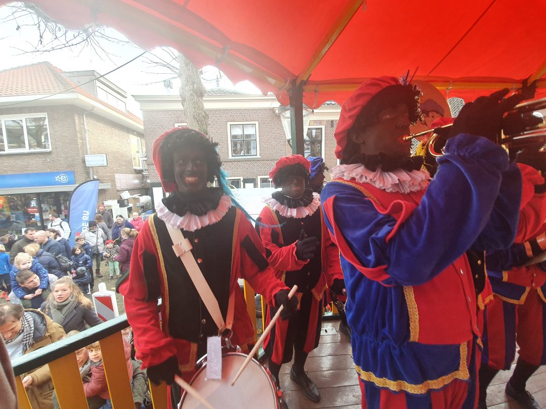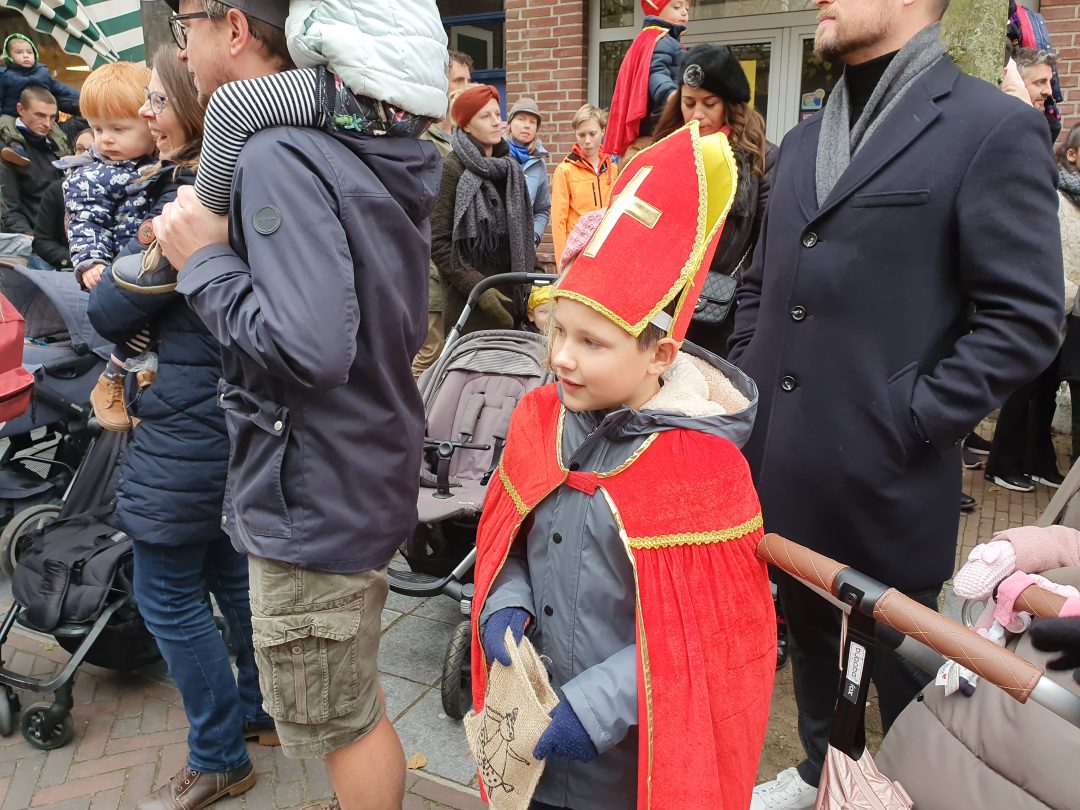 De burgemeester ontving sinterklaas op het podium in de Voorstraat nadat de goedheiligman met zijn pieten eerst een tocht door het centrum had gemaakt. Het toegestroomde publiek werd ondertussen vermaakt door de danspieten van Balletstudio Giselle.