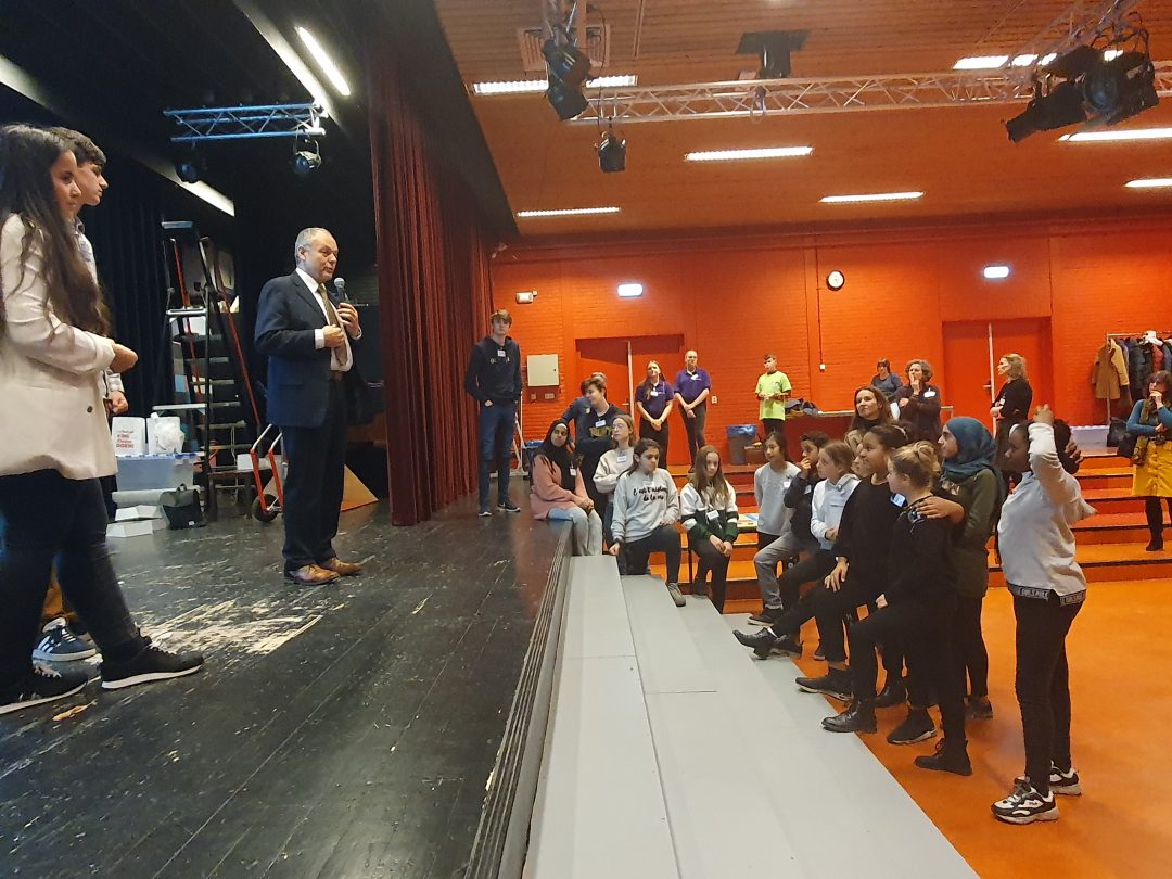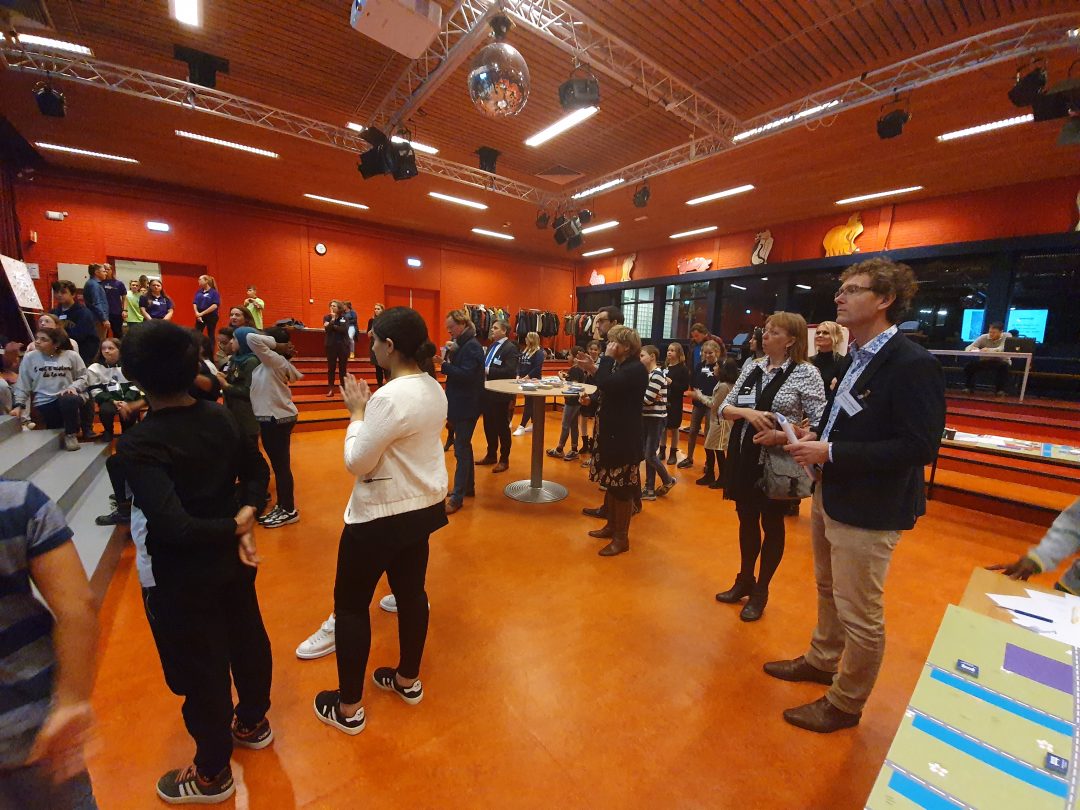 Een flink deel van de middag was het college in gesprek met ongeveer 35 leerlingen van het Montessorischool Apollo, PC Basisschool De Ley, het Vlietland College en Wereldschool Leimundo. Van elke school was een groep leerlingen afgevaardigd. De ideeën die de leerlingen aandroegen, dienen als input voor de doorontwikkeling van het ‘Ontwikkelperspectief Leiden Zuidwest’.