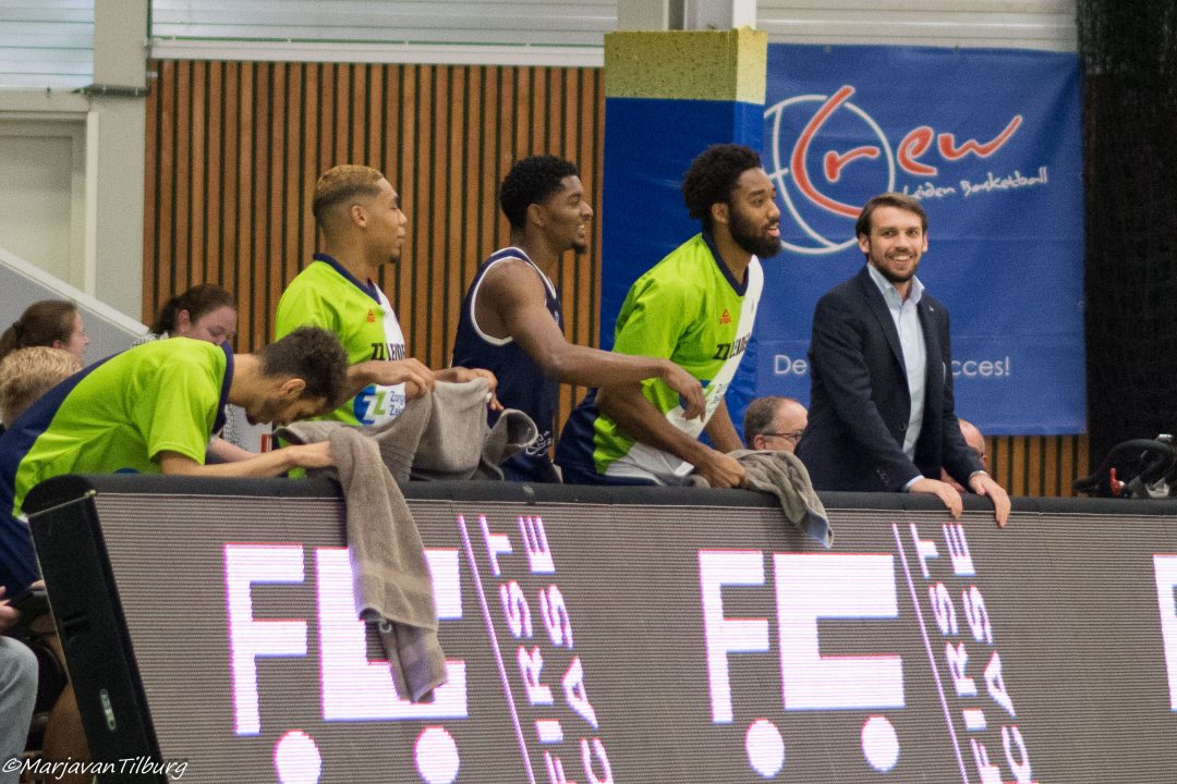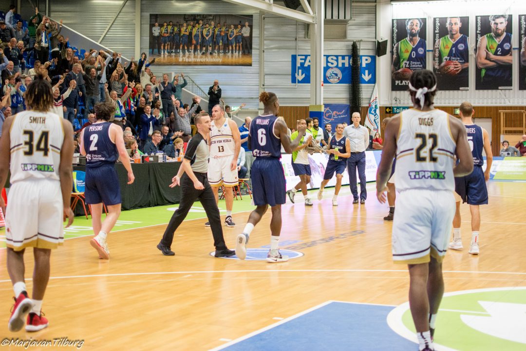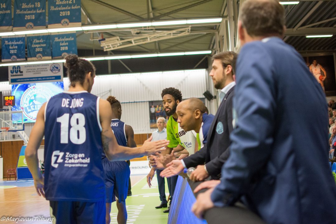 Het publiek zong Sergio als een held toe, zoals dat vorig seizoen ook gebeurde tijdens de bekerfinale. Door drietjes van Huggins en opnieuw De Randamie kwam Zorg en Zekerheid Leiden op 94-88. Vrije worpen van De Randamie en Persons zorgden voor 98-89 met nog iets meer dan twee minuten te spelen. Huggins was inmiddels ook tegen zijn vijfde fout aangelopen, waarop Franke reageerde door Troy Koehler binnen de lijnen te brengen.