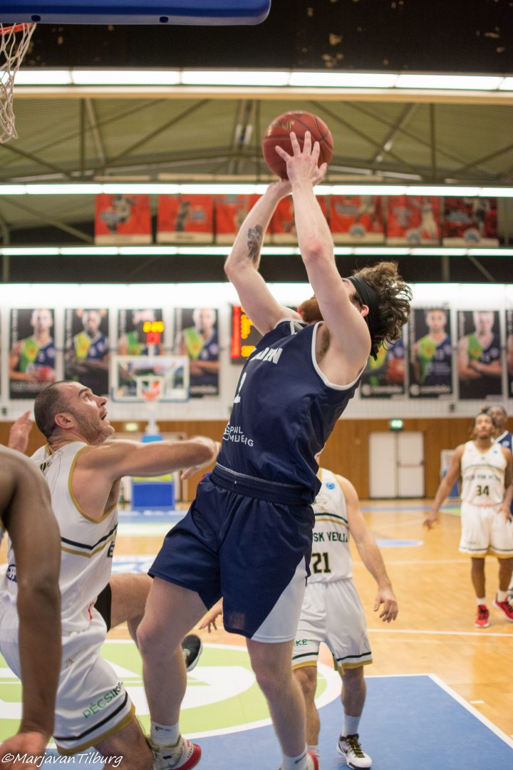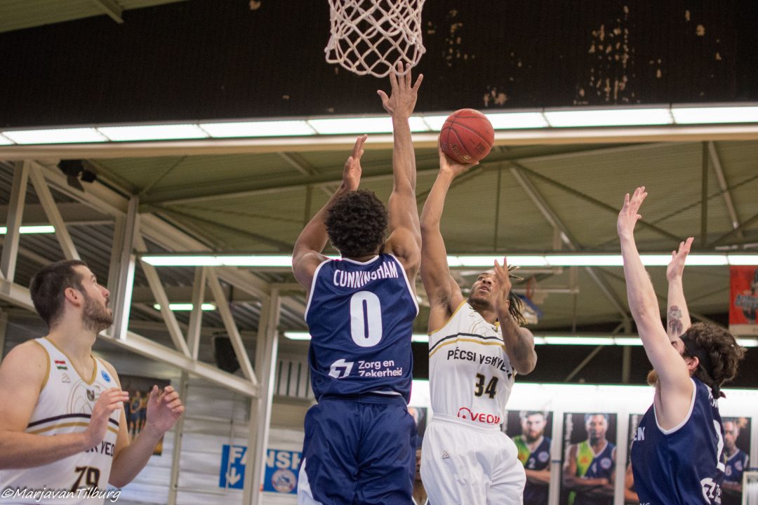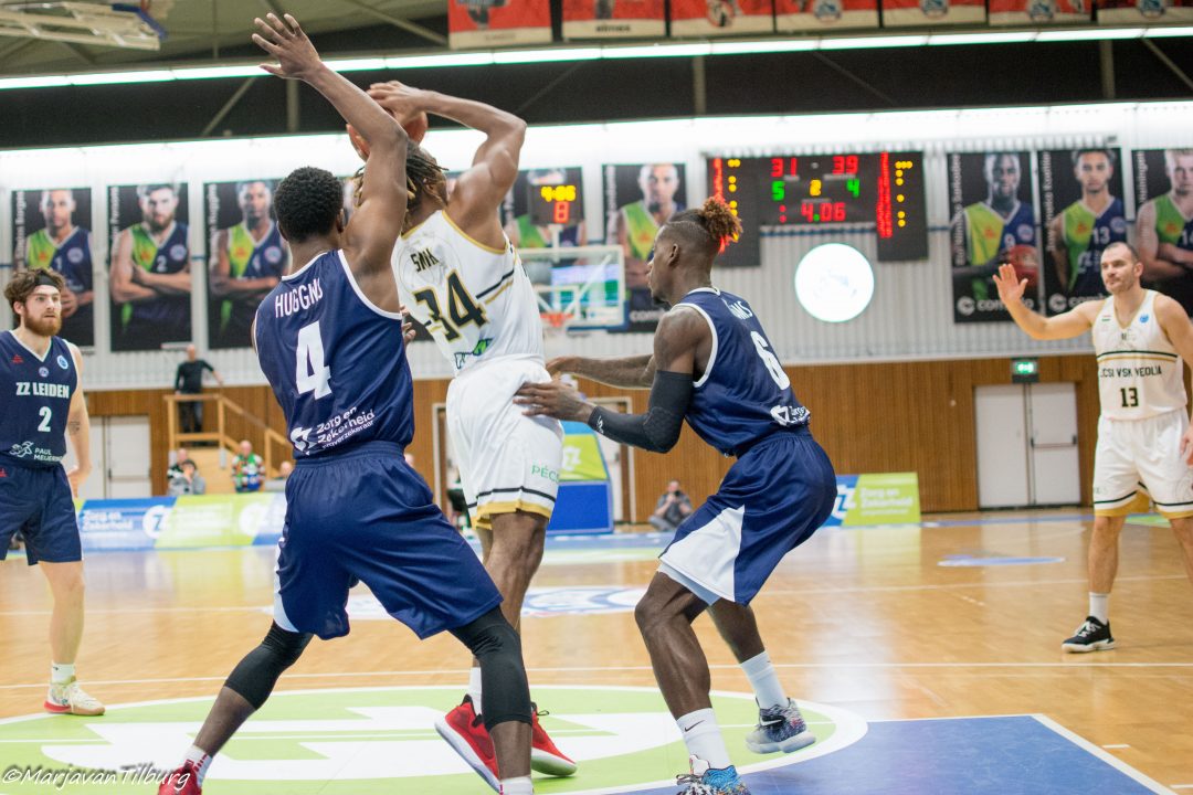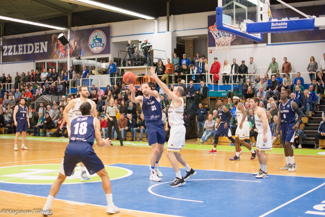 Zorg en Zekerheid Leiden Basketball is na vier Europese duels in eigen huis nog steeds ongeslagen, al ging dat woensdagavond verre van makkelijk. PVSK-Veolia had de winst voor het grijpen, maar Worthy de Jong blockte een dunkpoging en Sergio de Randamie gooide net voor de buzzer afging de gelijkmakende driepunter door de ring. In de verlenging pakte Zorg en Zekerheid Leiden alsnog de winst: 105-100.