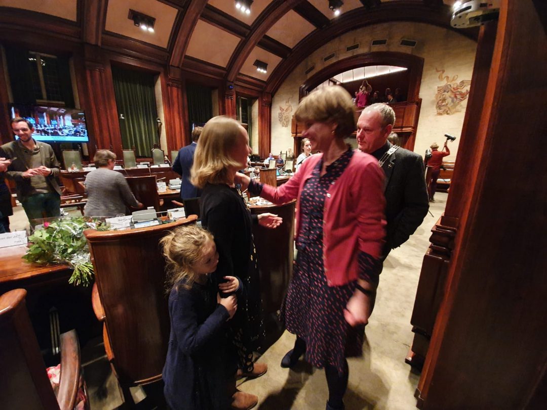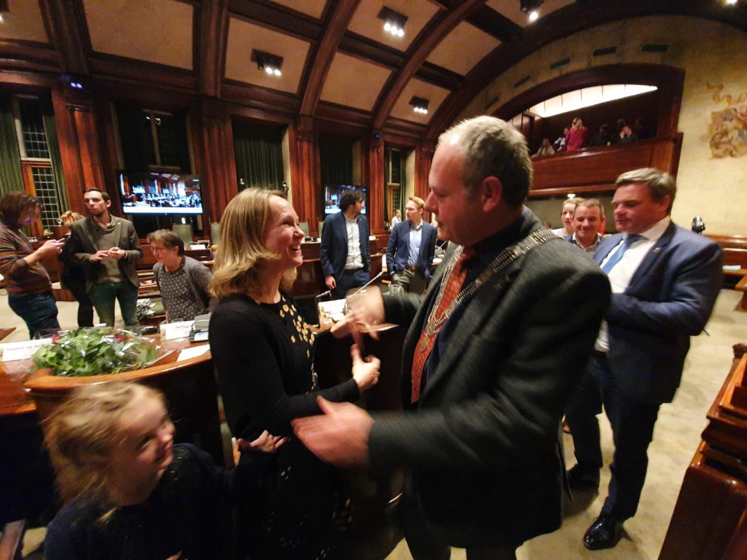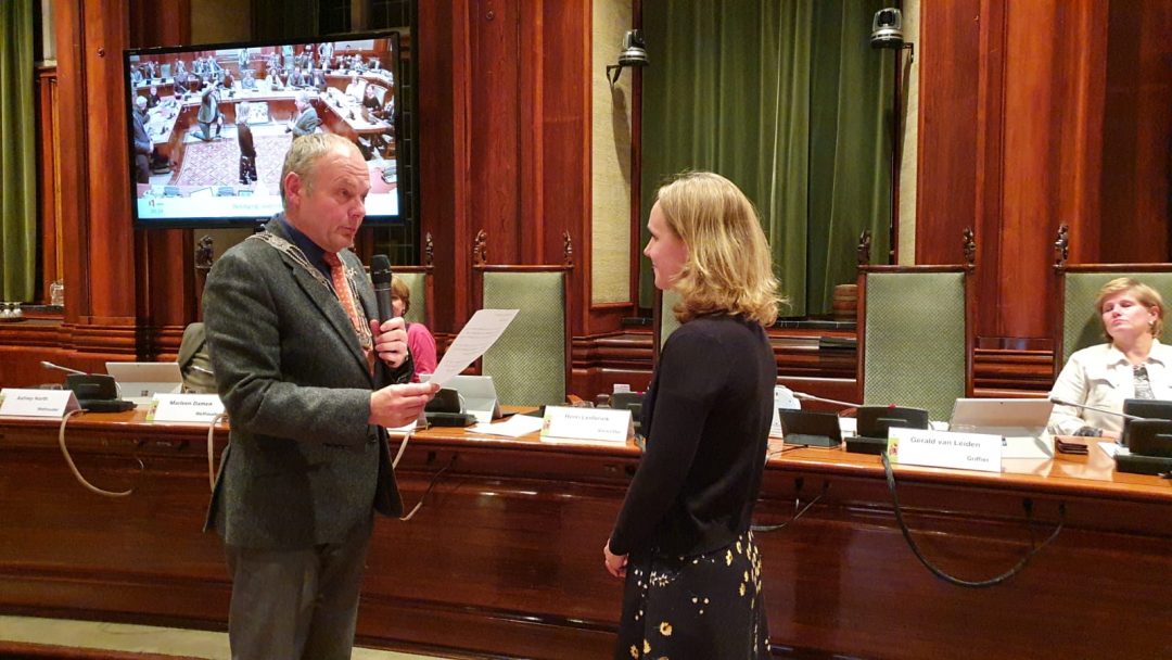 Na het afscheid van Holla werd zijn opvolger beëdigd. Suzanne van der Jagt is vanaf vanavond raadslid voor de PvdA in Leiden, De fractie gaat verder onder leiding van Abdelhaq Jermoumi.
