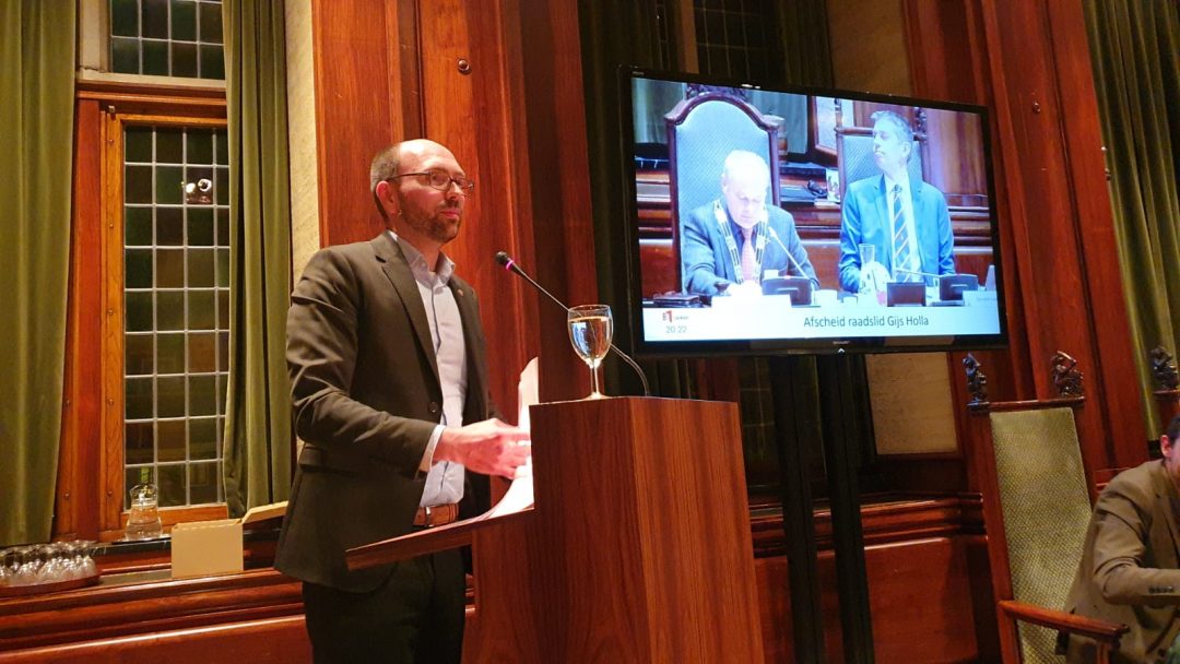Vanavond heeft de Leidse gemeenteraad afscheid genomen van PvdA-fractievoorzitter Gijs Holla. Hij verlaat de politiek om centrummanager te worden. Hij wordt opgevolgd door Suzanne van der Jagt die al duoraadslid was.