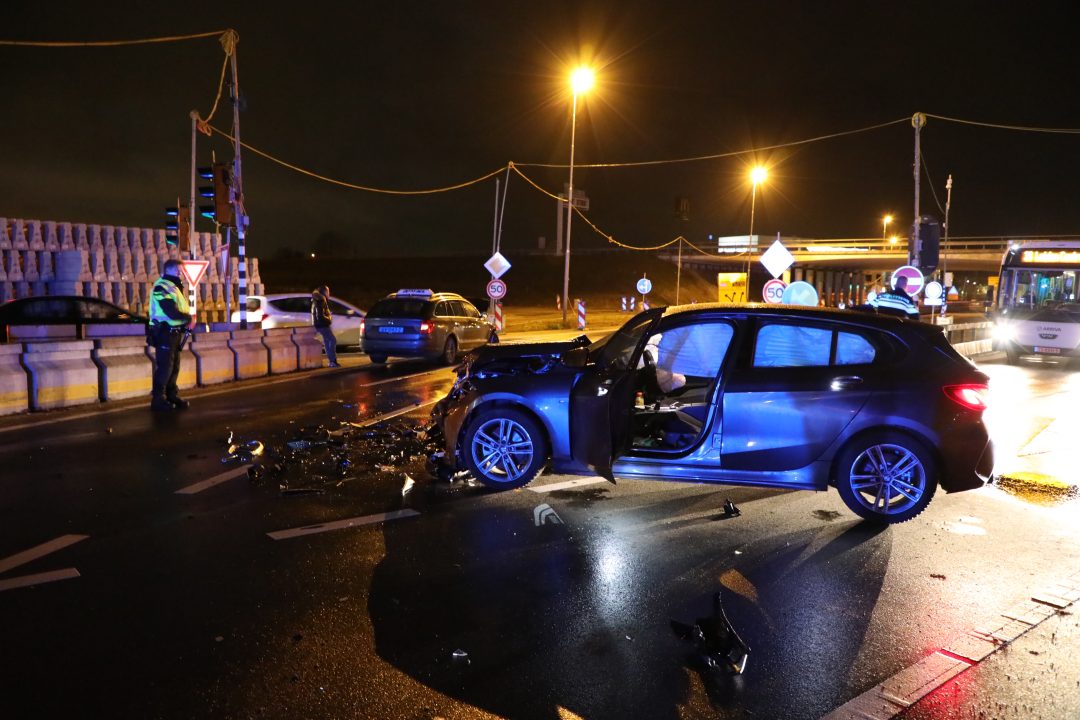 Zondag omstreeks 22.30 uur botste een personenauto hard op een taxi op de Plesmanlaan ter hoogte van de A44. Na de aanrijding zijn de vier inzittenden van de personenauto er vandoor gegaan.