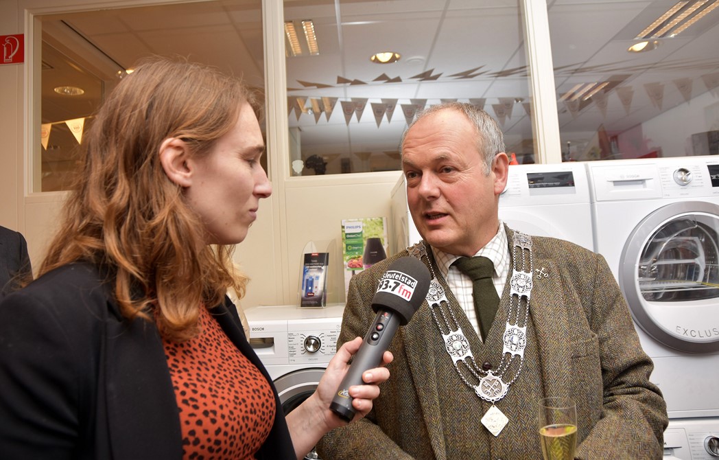 Reanne van Kleef in gesprek met burgemeester Lenferink over het predicaat ‘Hofleverancier’ voor Hartwijk.