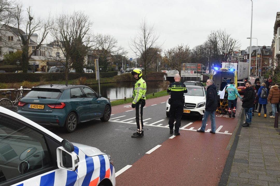 Een fietsster is op de Witte Singel in Leiden vanmiddag ongelukkig ten val gekomen bij een aanrijding met een auto. De vrouw is met onbekende verwondingen door een ambulance naar het ziekenhuis vervoerd.