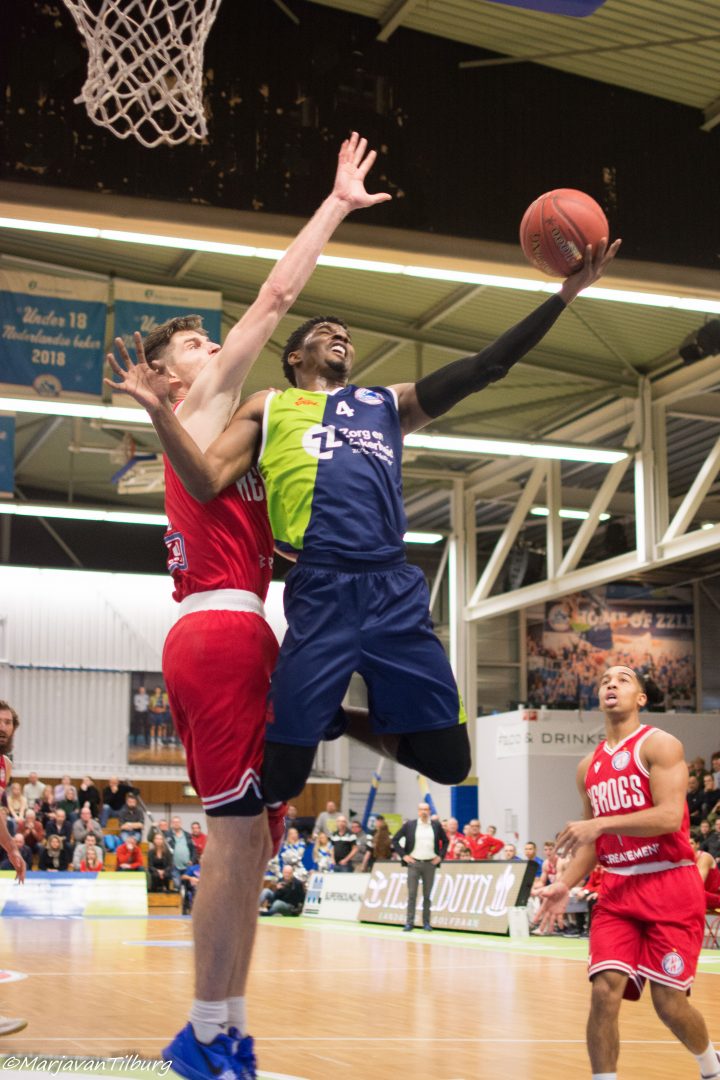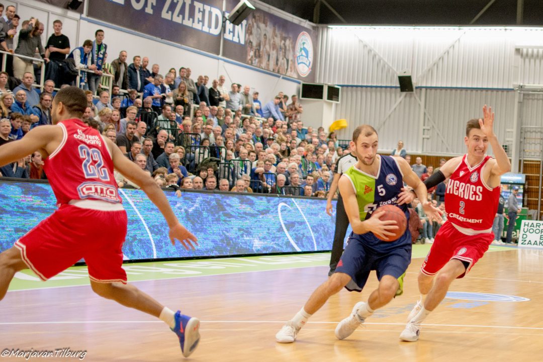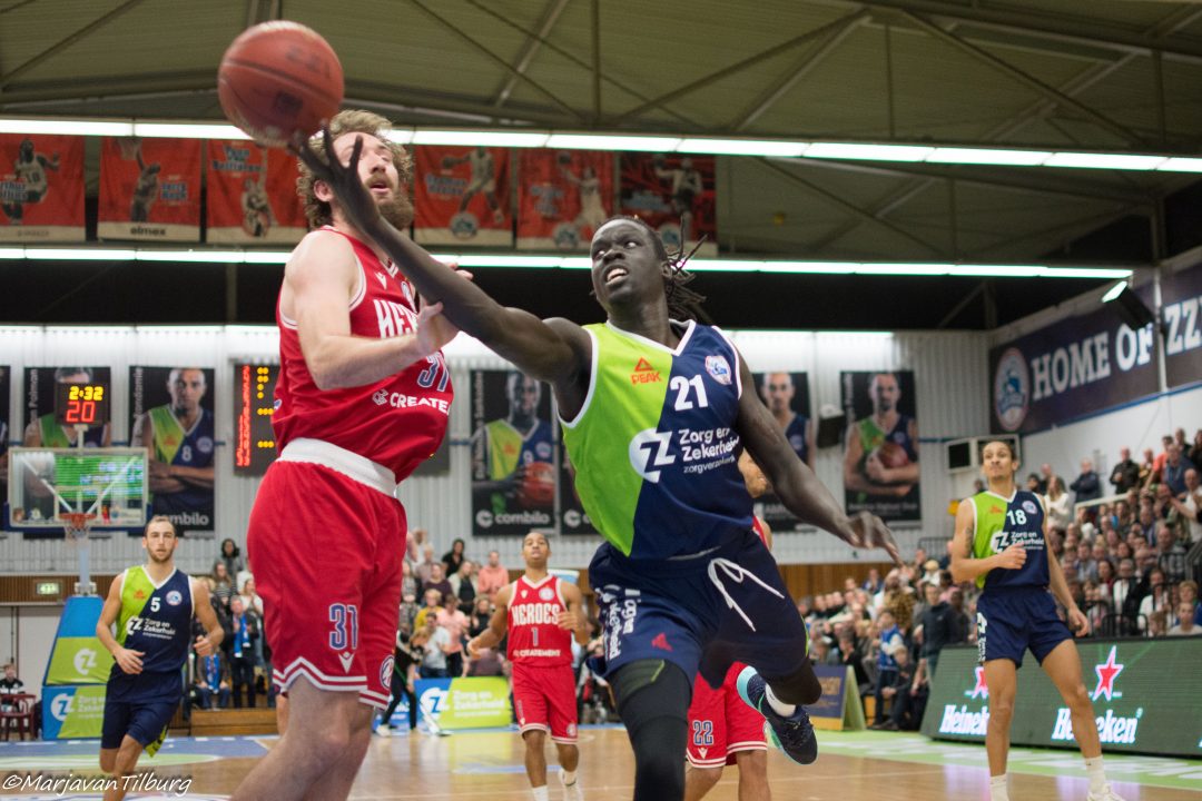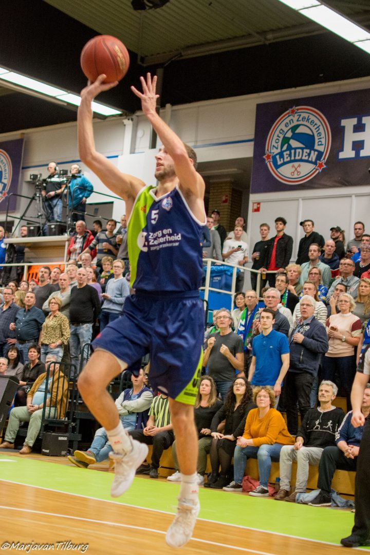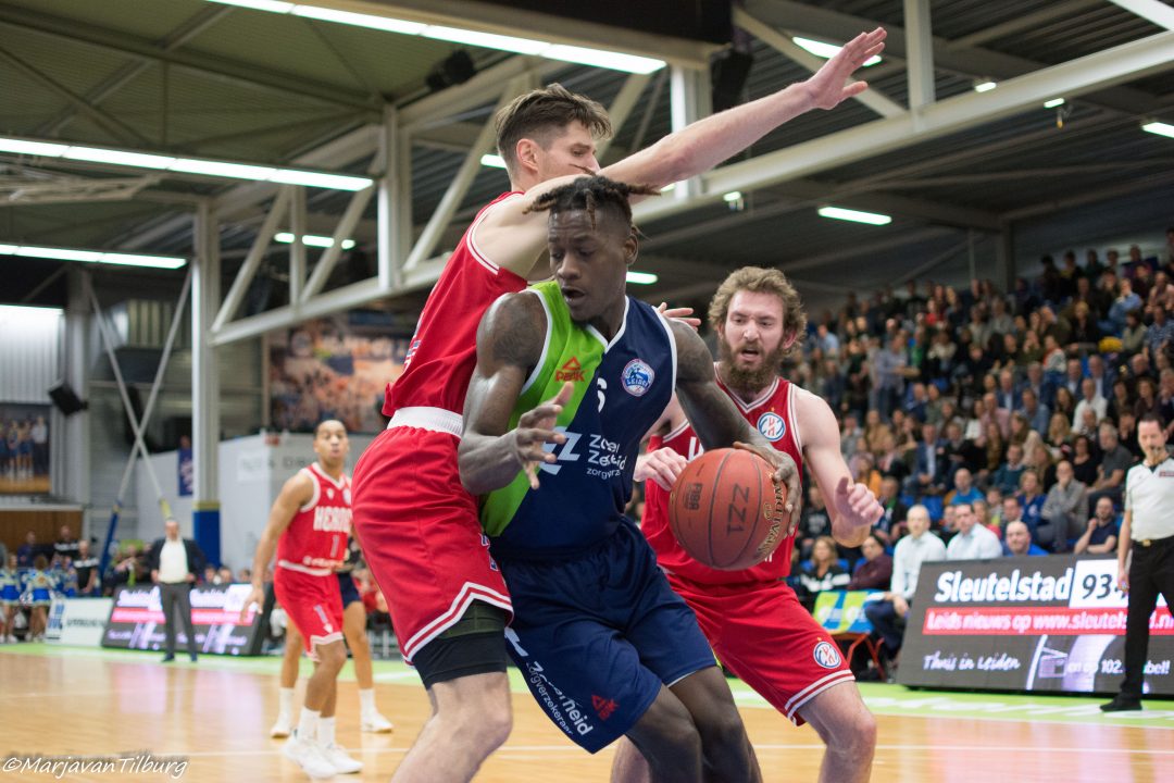 Zorg en Zekerheid Leiden heeft zich gerevancheerd voor de nederlaag in Den Bosch en toch ook wel voor de grote nederlaag van afgelopen woensdag tegen Pinar Karsiyaka. De Leidse ploeg schoot uit de startblokken: 15-3 na vijf minuten. Na de pauze (44-30) kwam Heroes Den Bosch een paar keer gevaarlijk dichtbij, maar telkens stond een andere Leidse speler op. Uiteindelijk werd het 88-78 voor Zorg en Zekerheid Leiden.
