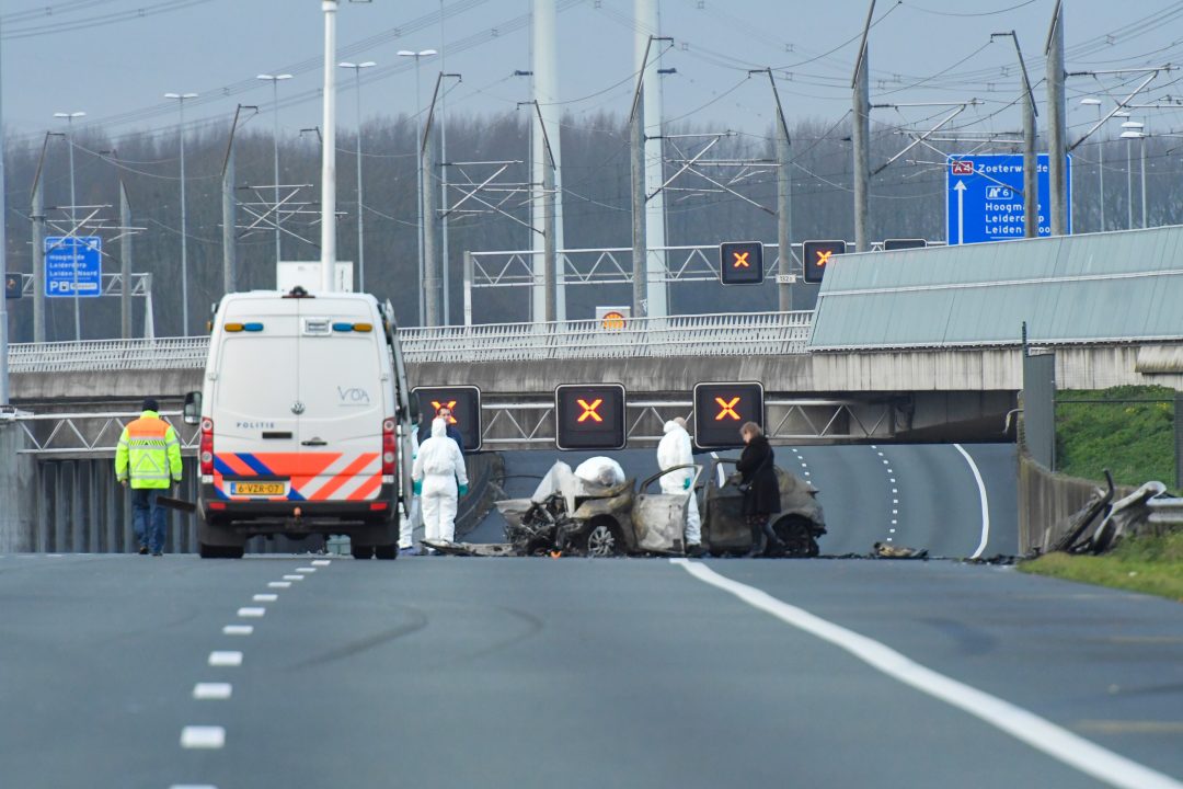 Rechercheurs in witte pakken hebben tot begin van de middag sporenonderzoek gedaan. De A4 bleef daardoor tussen Burgerveen en Hoogmade richting Den Haag tot 14.00 uur vanmiddag helemaal afgesloten.