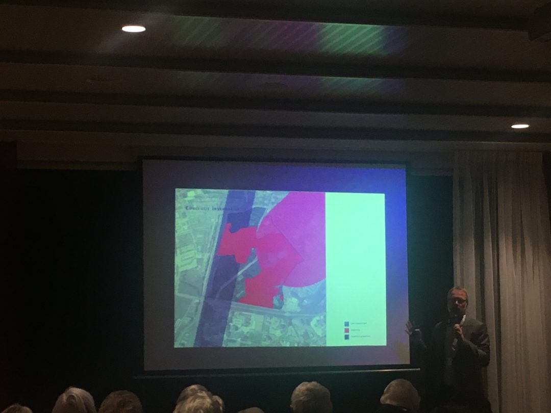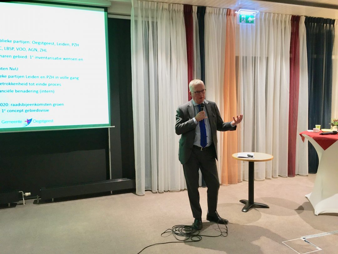 Wethouder Glasbeek kwam direct aan het begin van de avond al met een winstwaarschuwing. “Op de meeste punten zijn de gesprekken nog niet afgerond”, zei hij tegen de volle zaal. “Het is een complex gebied met heel veel beperkingen.” Daarmee doelt Glasbeek onder meer op veel wet- en regelgeving – onder meer rond Schiphol en rond Kasteel Endegeest – die sommige bebouwing onmogelijk of heel lastig maken. Daarnaast is de gemeente zelf geen grondeigenaar en moet er voor ontwikkelingen dus worden overlegd met onder meer de gemeente Leiden, provincie Zuid-Holland en ontwikkelaar Oudendal. De gebouwen van Rivierduinen zijn daarnaast onlangs verkocht aan een nog onbekende koper, wat voor de gemeente nog een nieuwe gesprekspartner betekent.