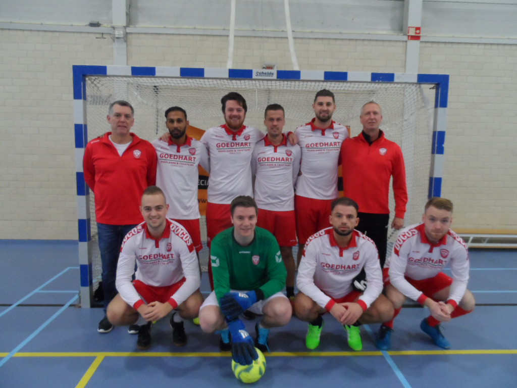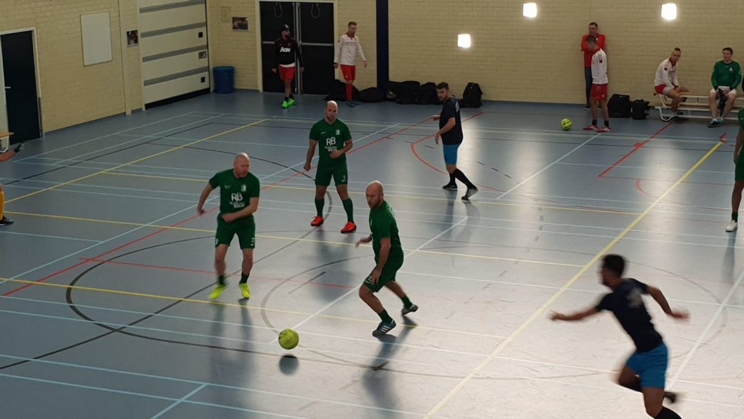 “Ja het klopt wel dat we met een half veteranenteam speelden. Met Tim, Henk, ikzelf”, vertelt Martijn van Leeuwen, inmiddels zelf ook ruim de 30 gepasseerd. Hij trad op als spelend coach en liet zien dat ook hij in de zaal zijn mannetje nog staat. “Je ziet het, nog steeds goed genoeg met z’n allen. Leuk. Uiteindelijk gaat het ook om de gezelligheid en onderling een balletje trappen. Maar ondanks dat het allemaal met een knipoog is, zie je dat iedereen wel van elkaar wil winnen.” Lugdunum staat op dit moment bovenaan in de tweede periode in de 3e klasse en heeft als doel een periodetitel te pakken.