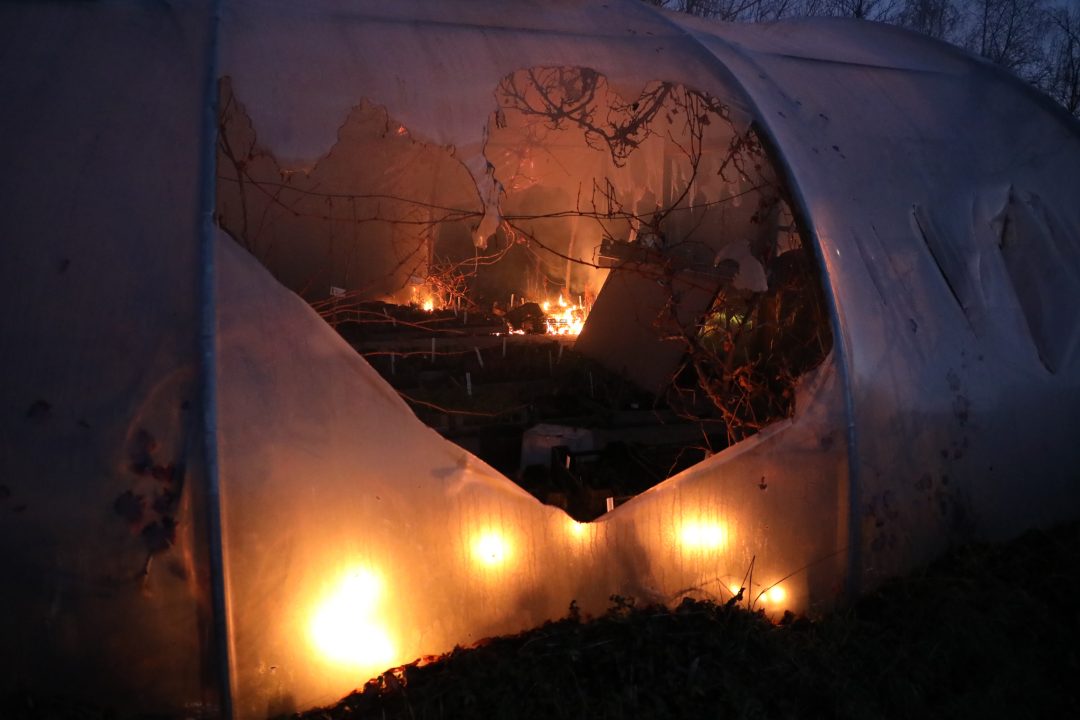 Vuurwerk heeft aan de Zwaluwlaan in Oegstgeest omstreeks 17.00 uur brand veroorzaakt in een kunststof groente kas. De brandweer kon met de tankautospuit niet in de buurt van de brandhaard komen. Op professionele wijze heeft de brandweer elders een waterbron gevonden en de brand weten te blussen. De schade aan de kas en groente is aanzienlijk.