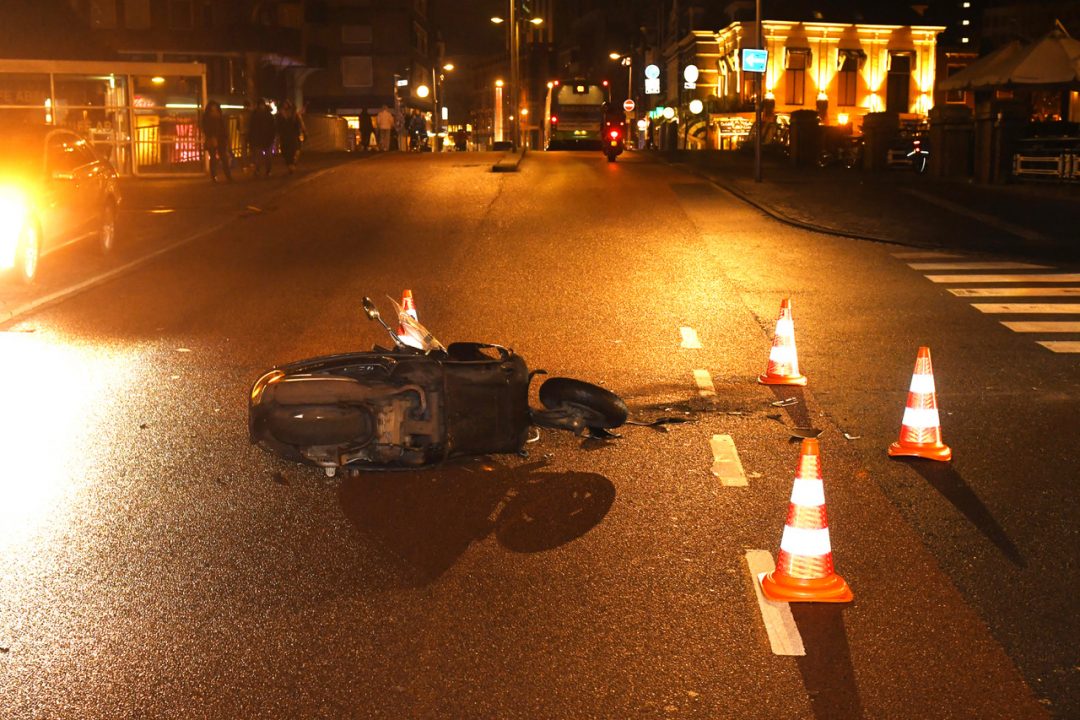 Een scooterrijder is gisteren onderuit gegaan toen hij hard moest remmen om een taxibusje te ontwijken. Daarbij kwam hij alsnog in botsing met het busje. De aanrijding gebeurde op de Steenstraat ter hoogte van de 2e Binnenvestgracht.