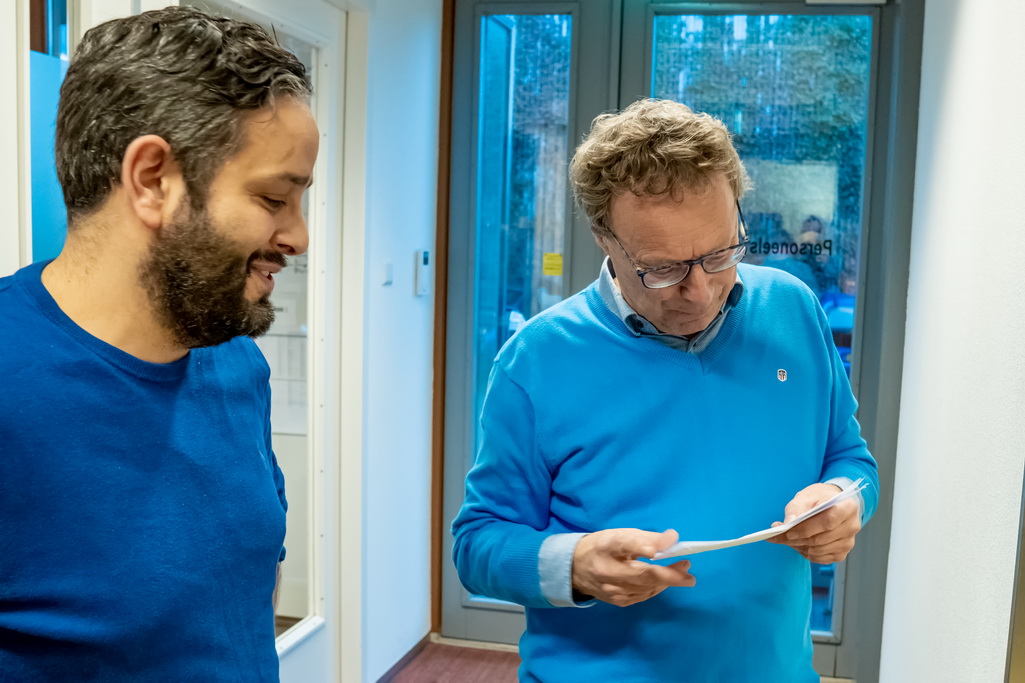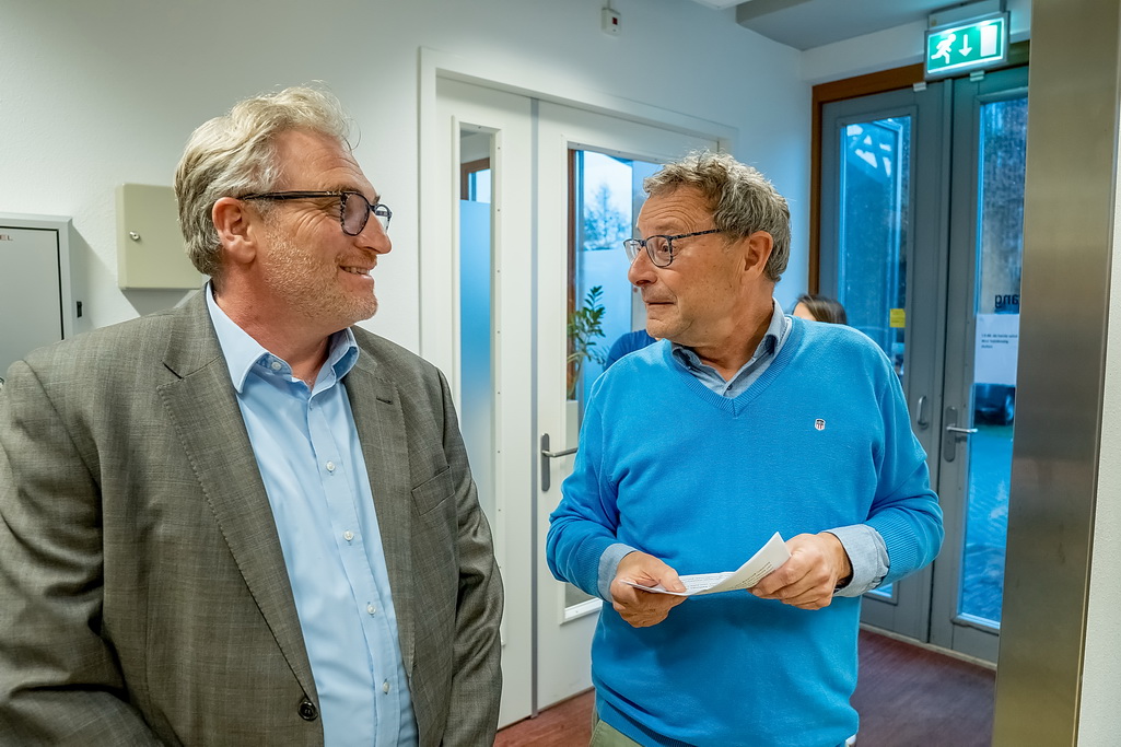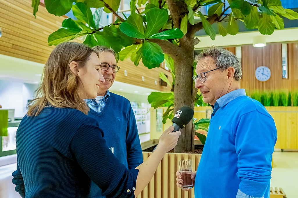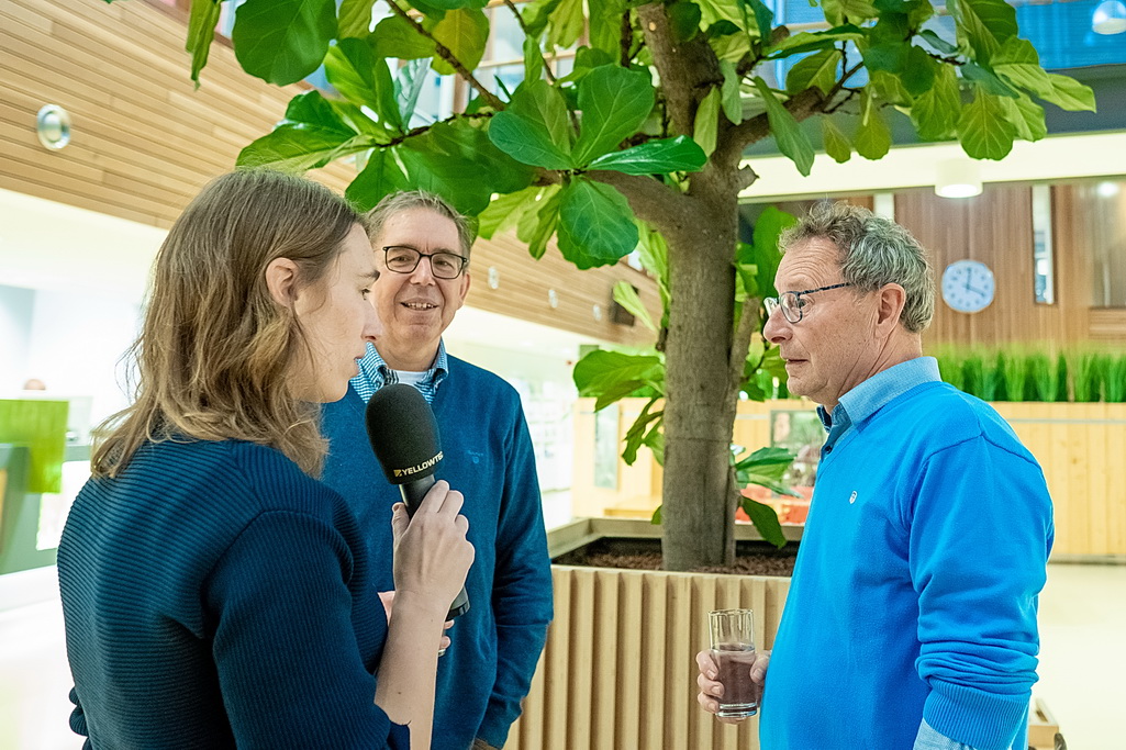Reanne van Kleef in gesprek met bestuursleden Johan Kools en Henk van Rooijen over Zon op Leiderdorp.