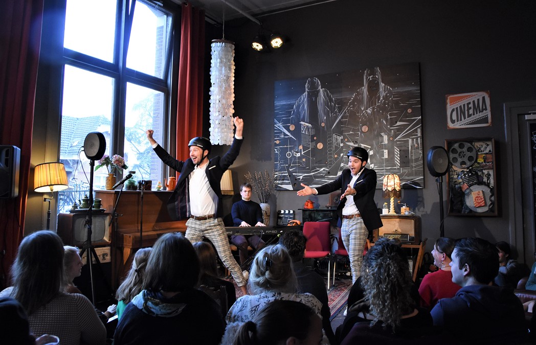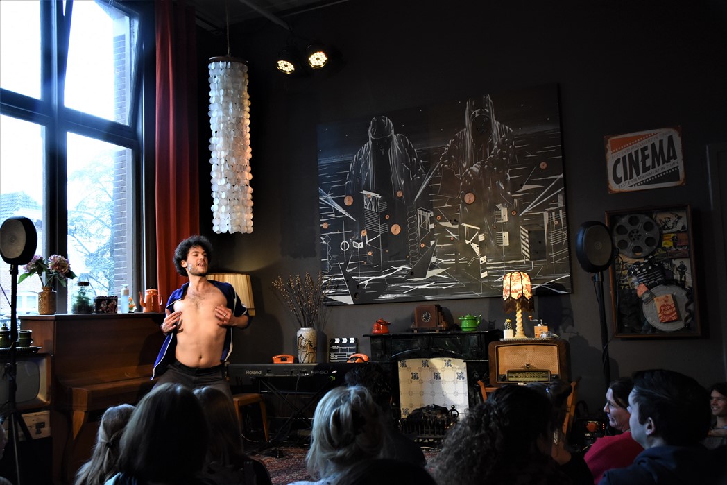 Disclaimer vooraf: een recensie, van wie dan ook, is altijd een persoonlijke indruk. Waar iedere recensent, hopelijk, naar eer en geweten zijn of haar indruk over een boek, een tentoonstelling, een film, een theatervoorstelling probeert weer te geven, blijft het razend lastig of die indruk overeenkomt met die van al die andere lezers, kijkers en luisteraars. Dat gold ook afgelopen zondag bij de eerste ronde audities voor het Leids Cabaretfestival in februari. Een goede graadmeter is vaak de reactie van het publiek. En eerlijk is eerlijk; die was lauw bij de meeste audities. Naar onze mening – we waren met z’n drieën – stak Thjum Arts met kop en schouders boven de rest uit. Het daverend applaus na zijn optreden leek dat te bevestigen. Máár: we zagen de laatste twee kandidaten niet vanwege verplichtingen in de keuken, we weten nog niet hoe de kandidaten volgende week zijn, en we hebben geen idee hoe de jury oordeelt – mogelijk heel anders dan het publiek. Kortom, een indruk.